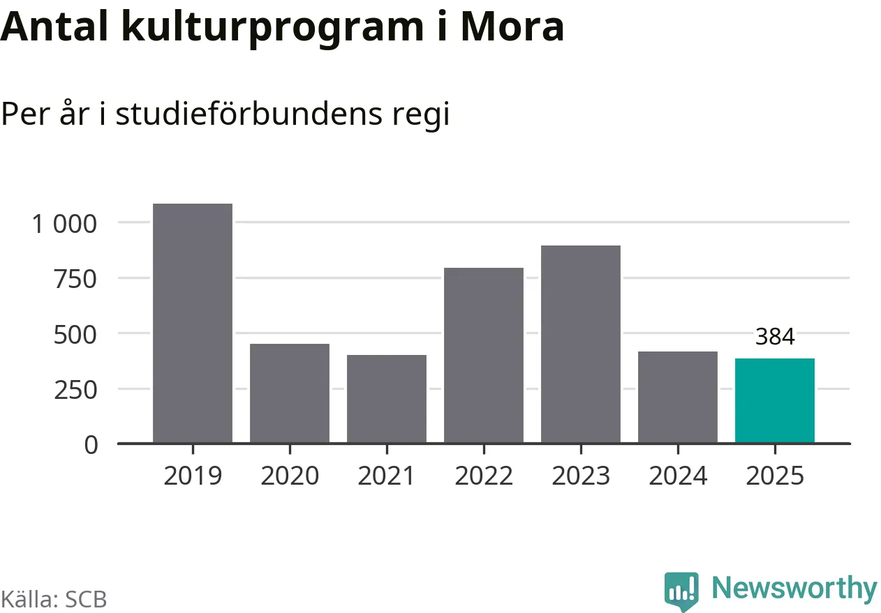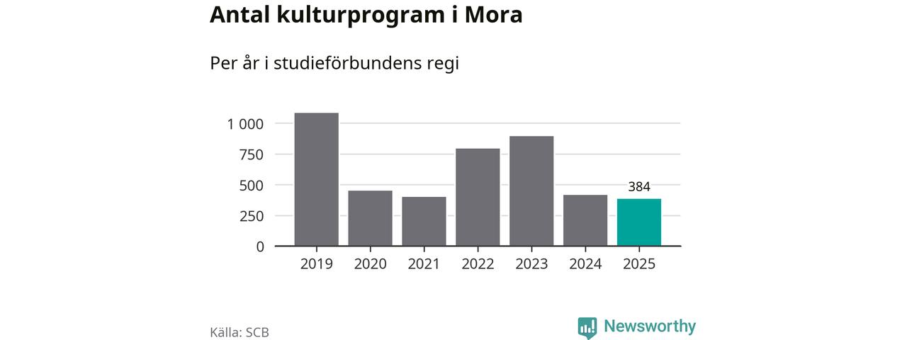 I Mora är minskningen ännu större: förra året hade studieförbunden omkring 8 400 studietimmar i kommunen, vilket är en minskning med nio procent jämfört med året innan. Även antalet kulturprogram i studieförbundens regi minskade, från 415 till 384 stycken.