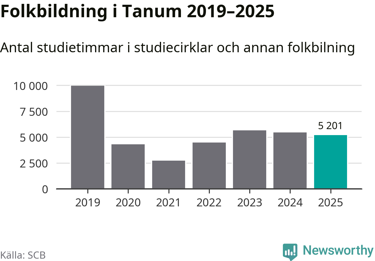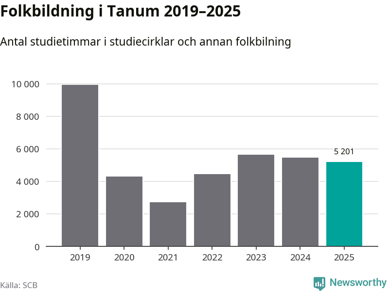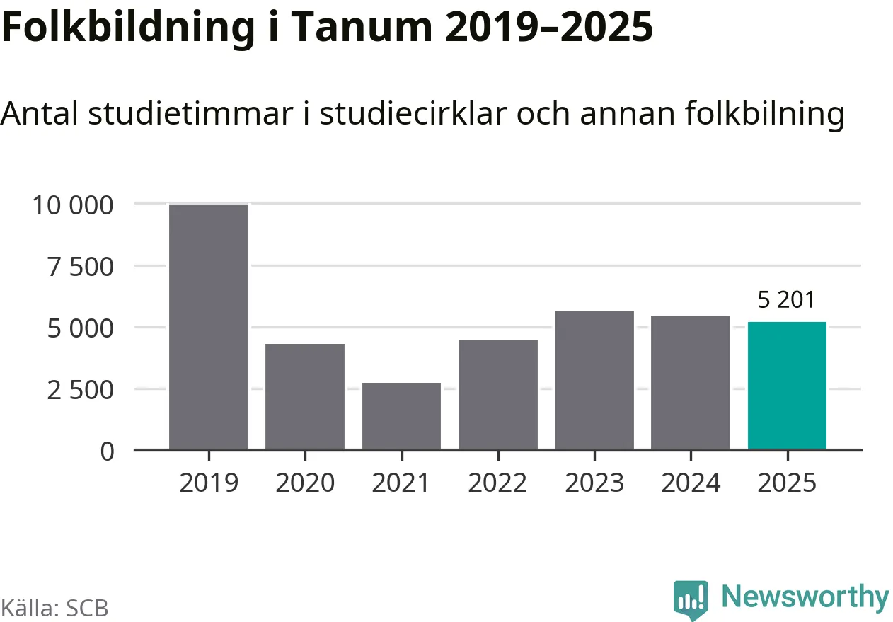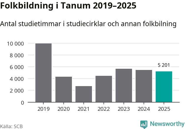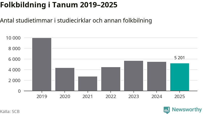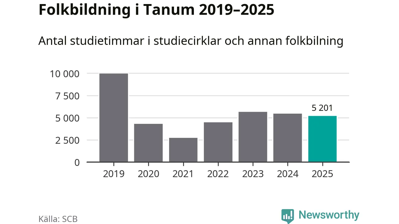 Studieförbunden drabbades hårt av pandemin. Även i Tanum noterades det lägsta antalet studietimmar under 2021, som då var 73 procent färre än 2019. År 2024 var antalet studietimmar åter högre men de var fortfarande långt från förpandeminivåerna.