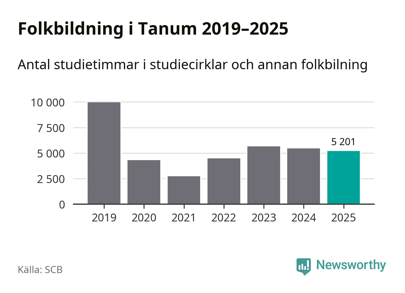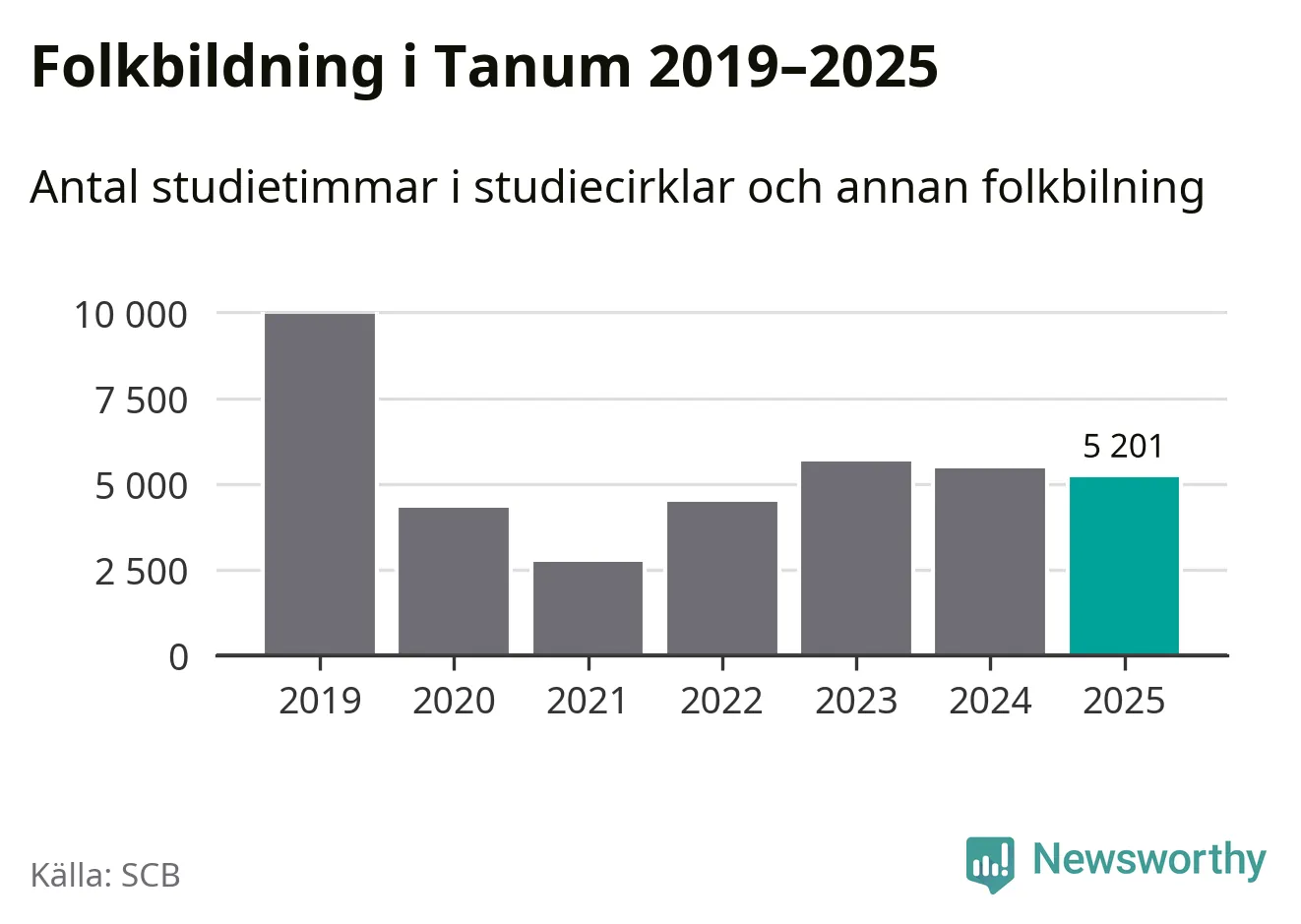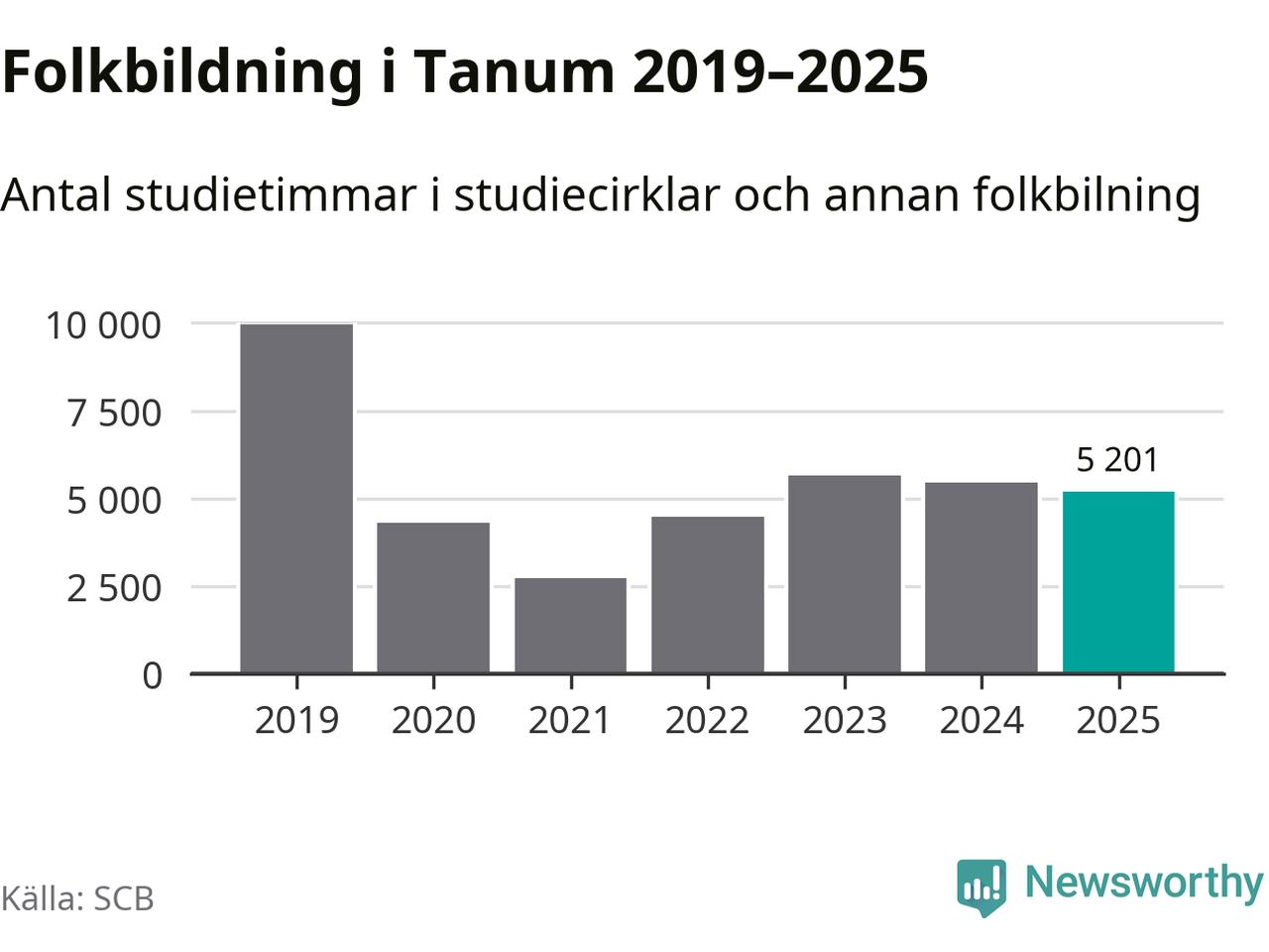 Studieförbunden drabbades hårt av pandemin. Även i Tanum noterades det lägsta antalet studietimmar under 2021, som då var 73 procent färre än 2019. År 2024 var antalet studietimmar åter högre men de var fortfarande långt från förpandeminivåerna.