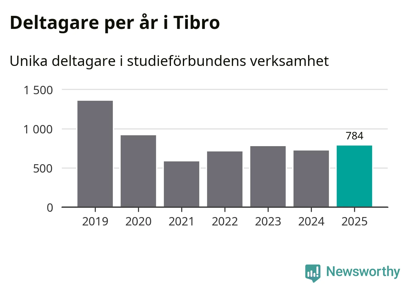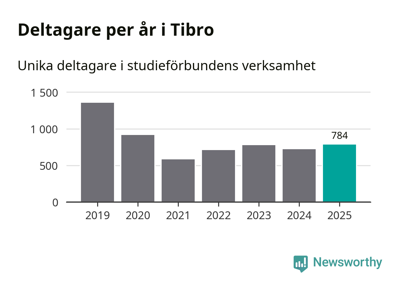 Antalet unika deltagare ökade i Tibro i fjol: från 721 till 784 personer. Det innebär att sju procent av befolkningen i kommunen deltog i studieförbundens verksamhet under 2025, vilket är ungefär som rikssnittet.