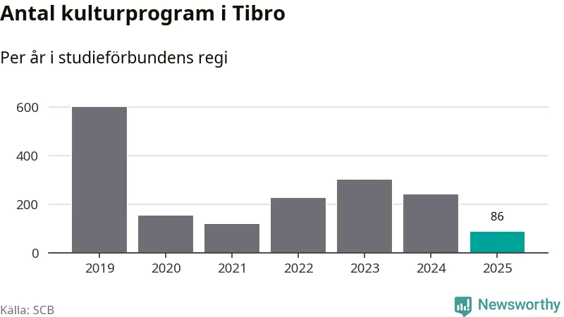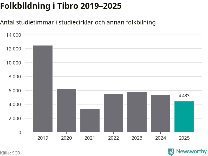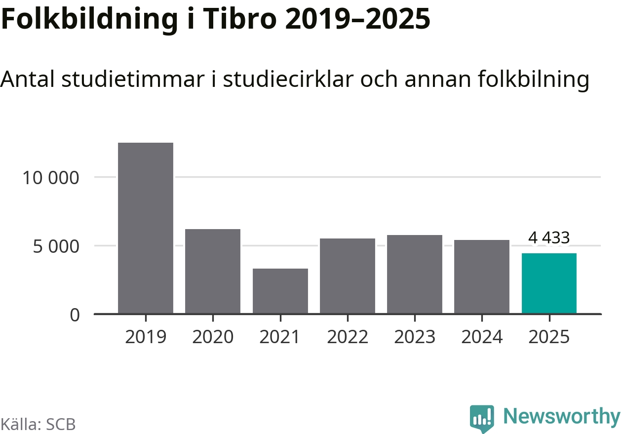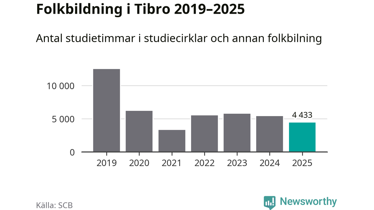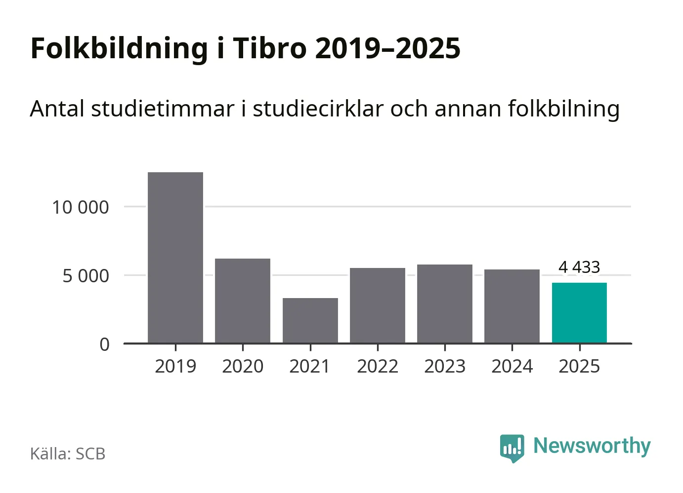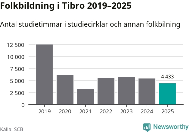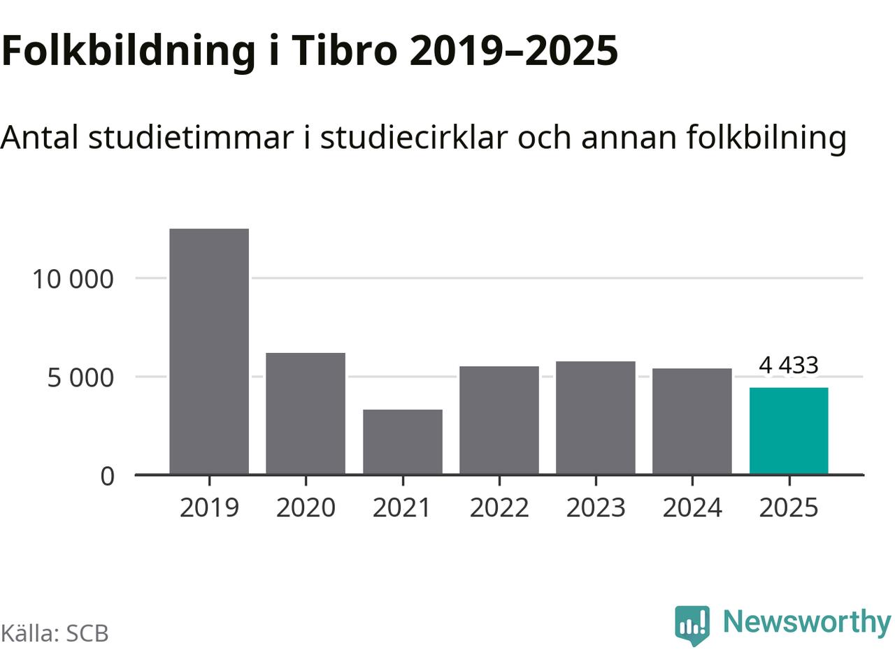 Studieförbunden drabbades hårt av pandemin. Även i Tibro noterades det lägsta antalet studietimmar under 2021, som då var 73 procent färre än 2019. År 2024 var antalet studietimmar åter högre men de var fortfarande långt från förpandeminivåerna.