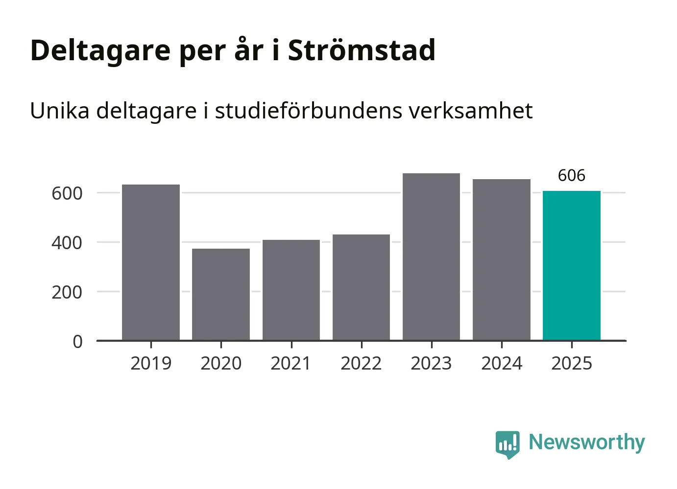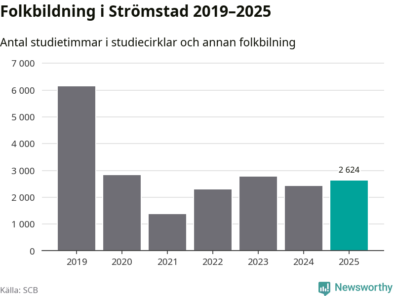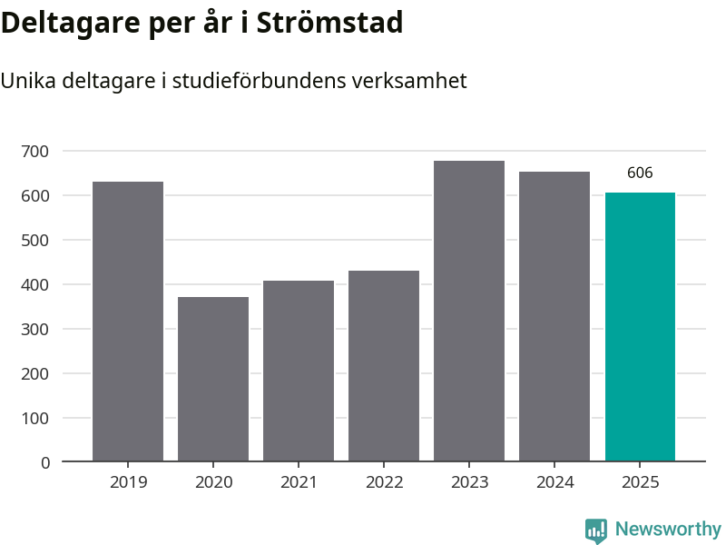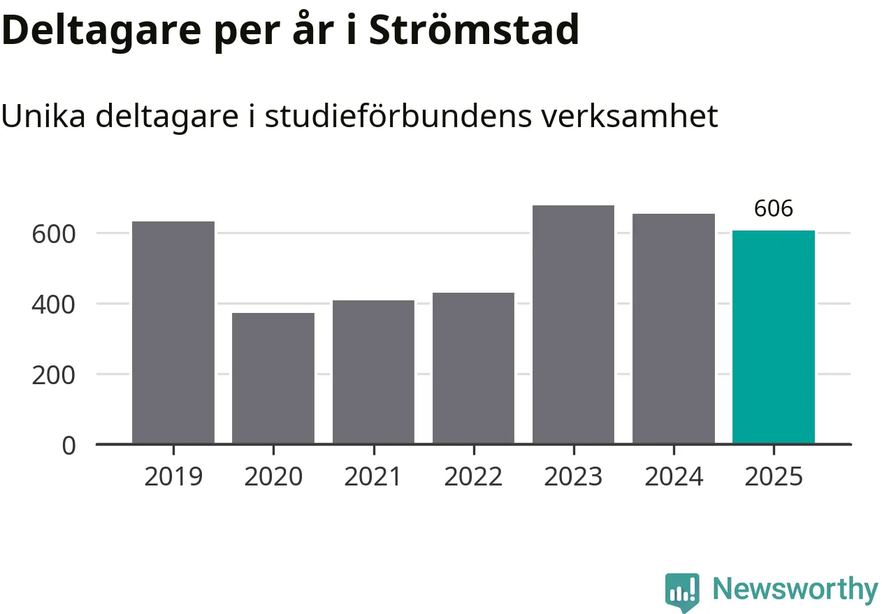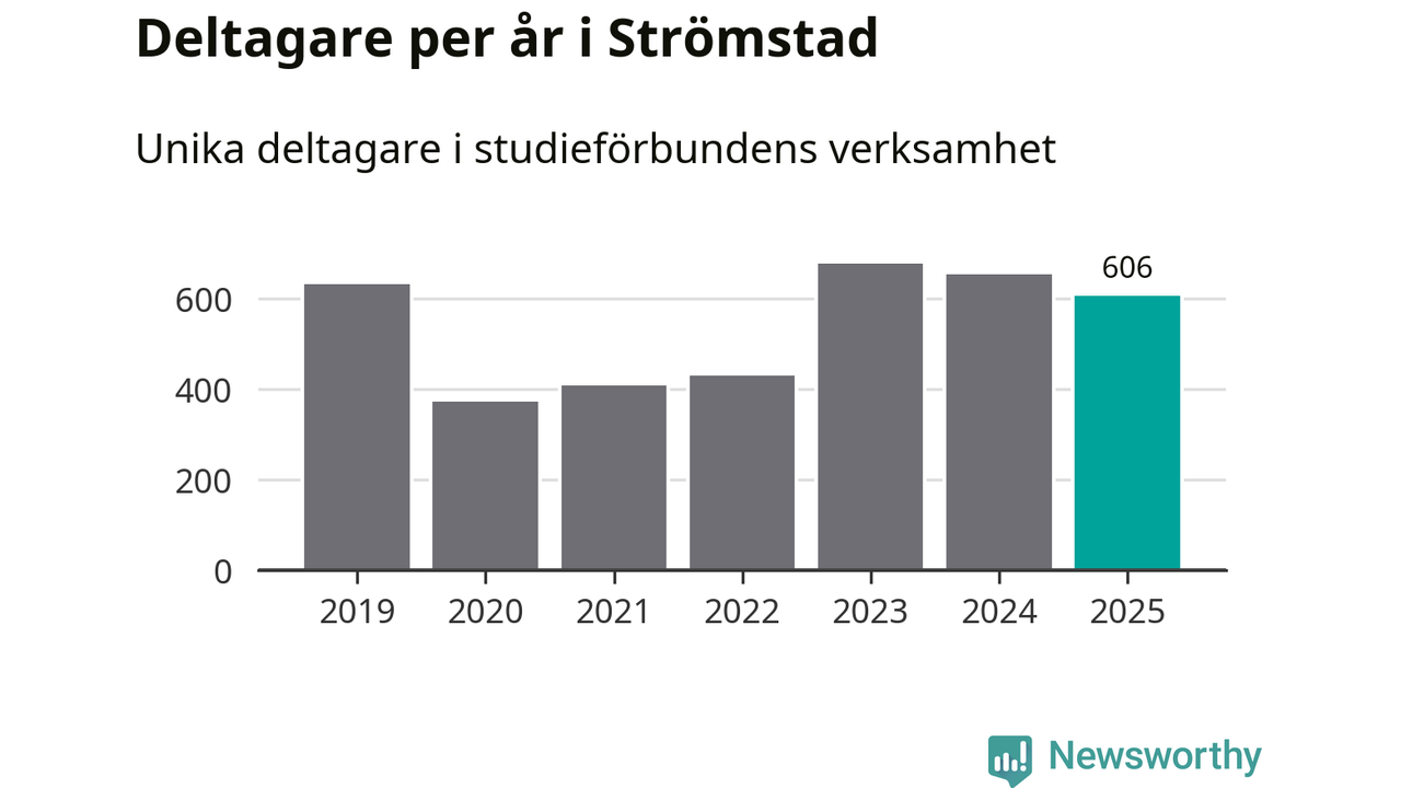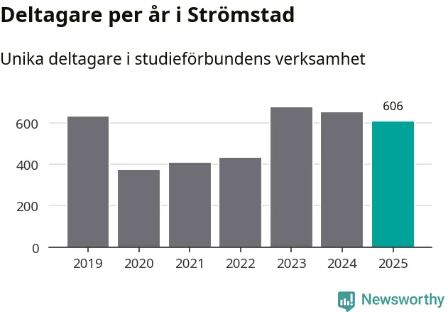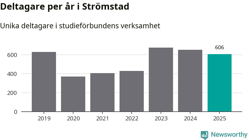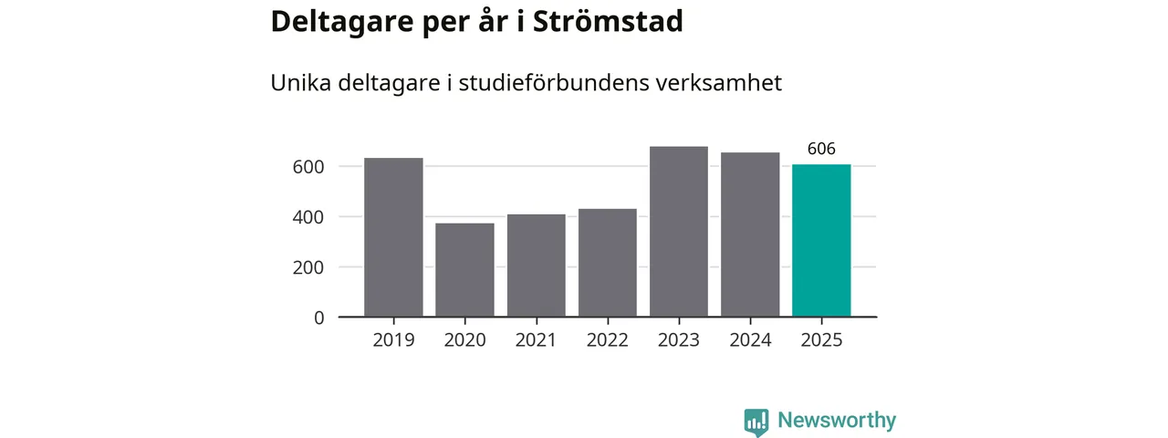 Sett till unika deltagare är folkbildningen på tillbakagång i Strömstad. 2025 deltog 606 personer i studieförbundens verksamhet, vilket är en minskning med sju procent jämfört med året innan. Det innebär att fyra procent av befolkningen i kommunen deltog i studieförbundens verksamhet under 2025, vilket är ungefär som rikssnittet.