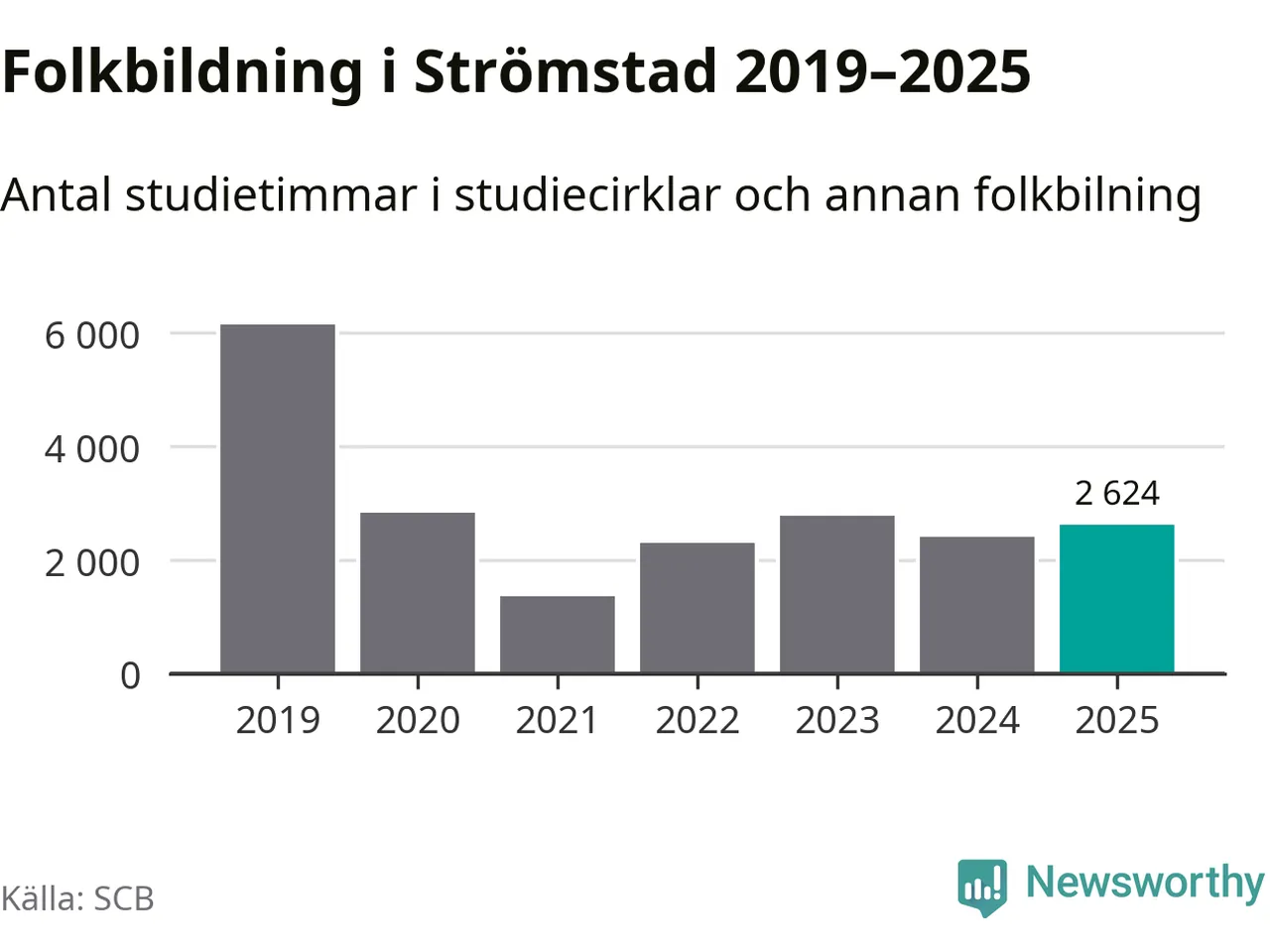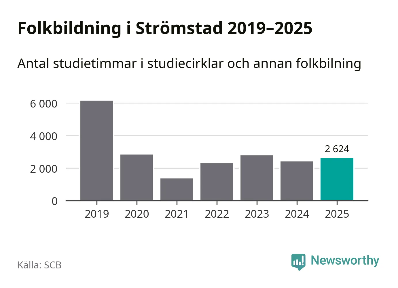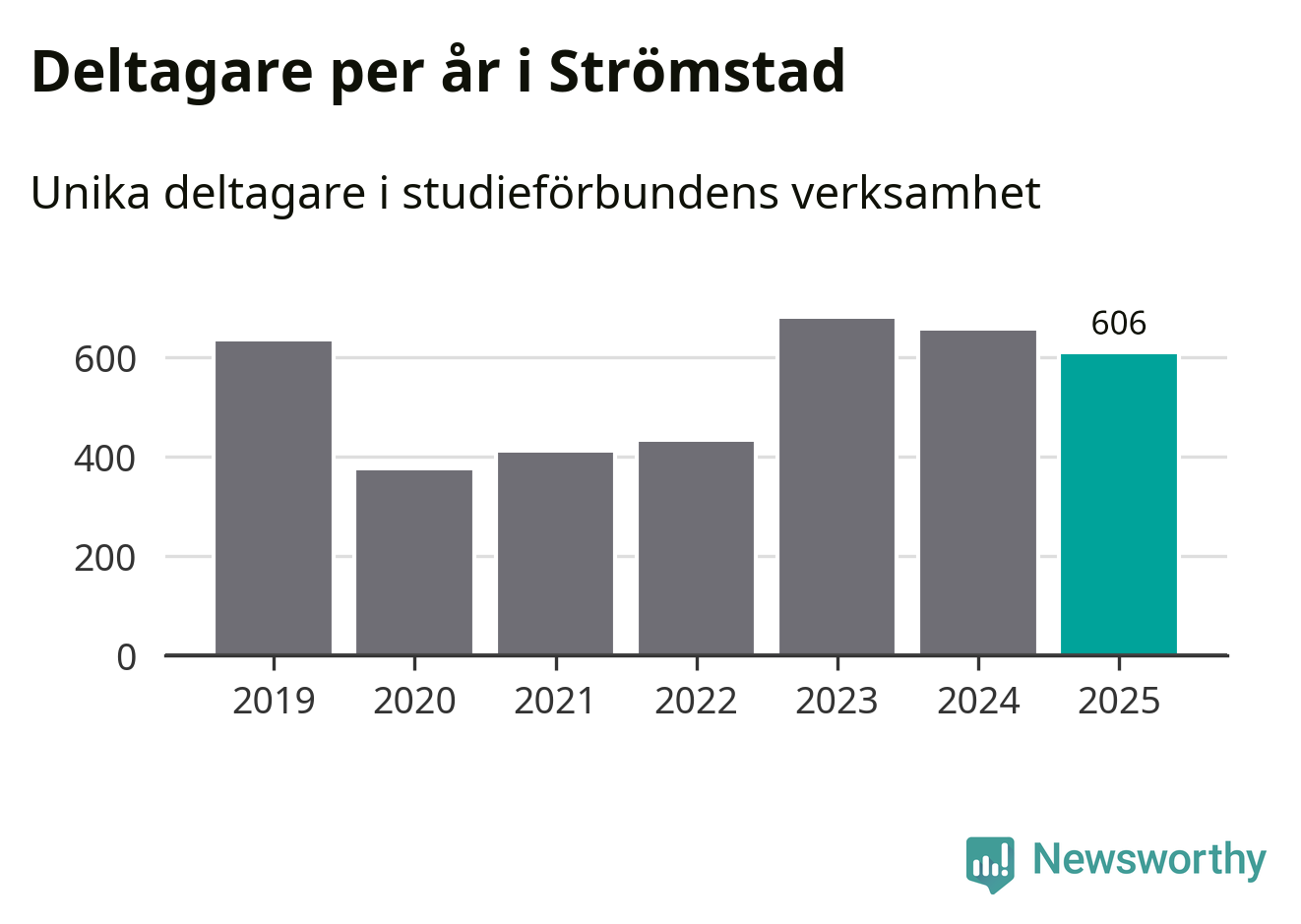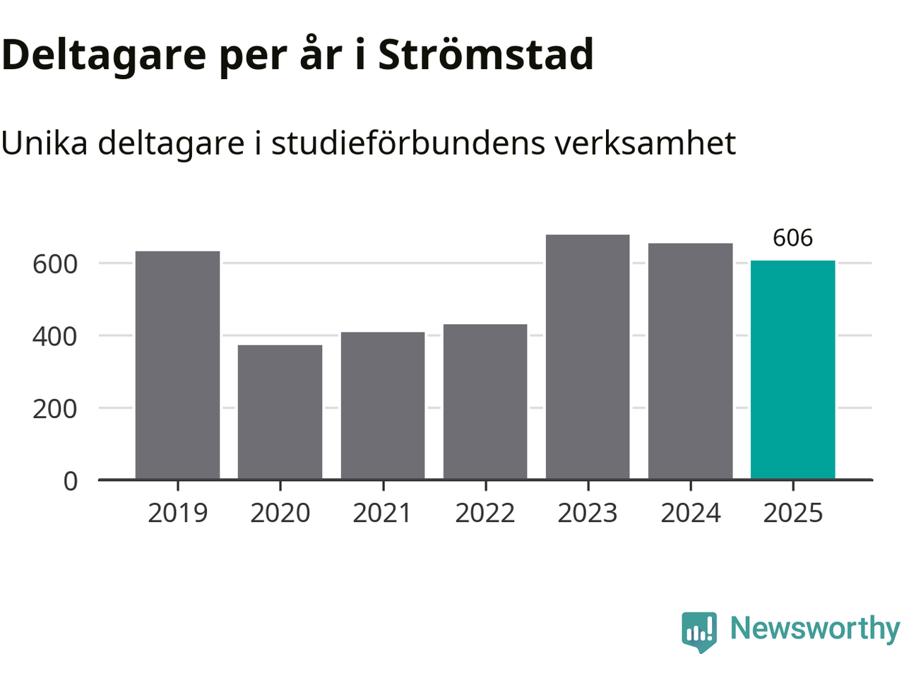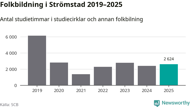 Sett till unika deltagare är folkbildningen på tillbakagång i Strömstad. 2025 deltog 606 personer i studieförbundens verksamhet, vilket är en minskning med sju procent jämfört med året innan. Det innebär att fyra procent av befolkningen i kommunen deltog i studieförbundens verksamhet under 2025, vilket är ungefär som rikssnittet.