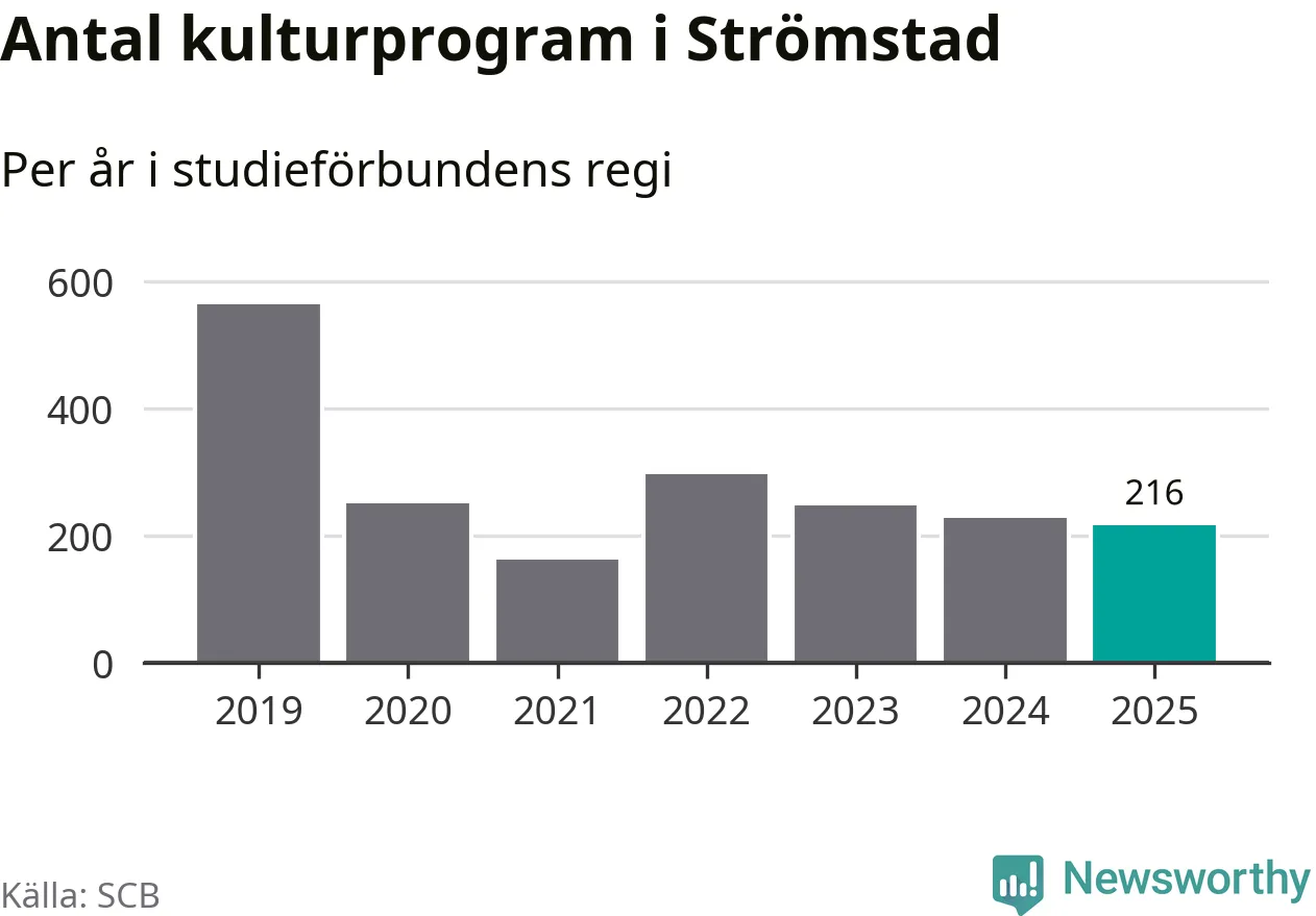 KommunStudietimmar 2025Förändring (%)Kulturprogram 2025Förändring (%)Andel av befolkningen som deltagit