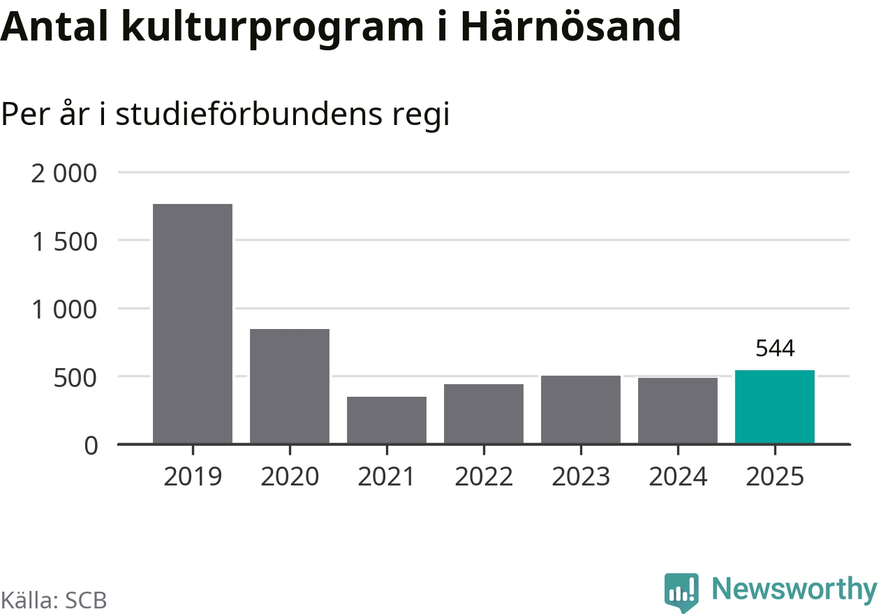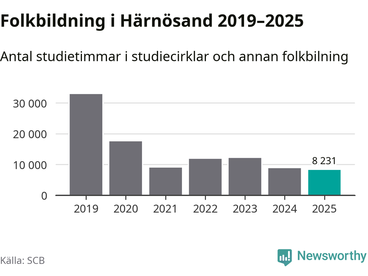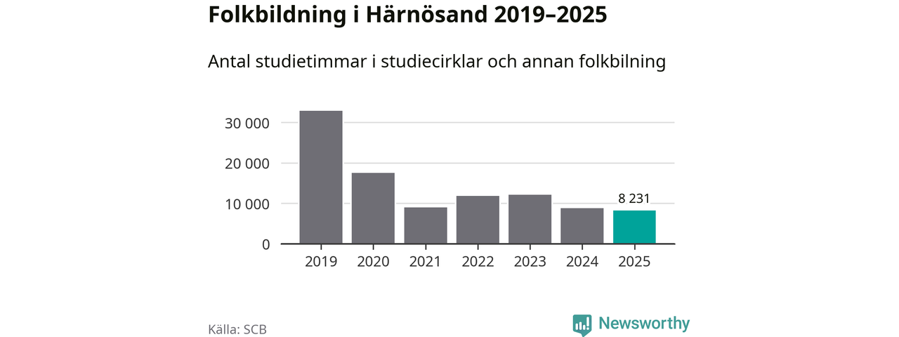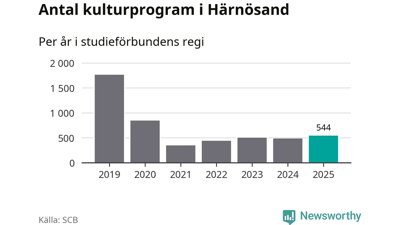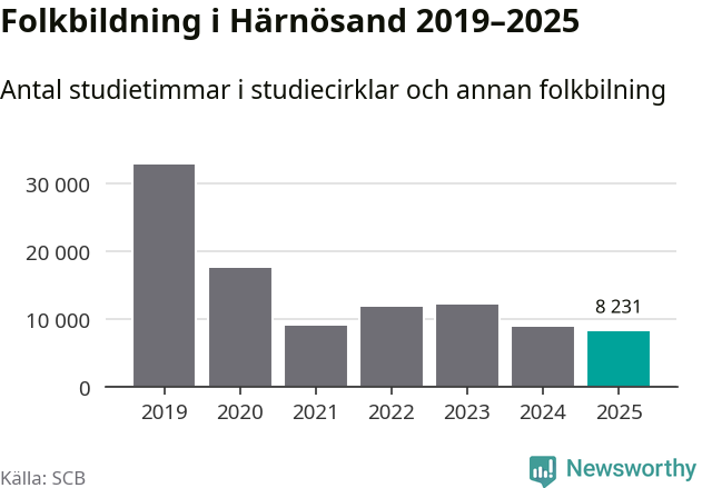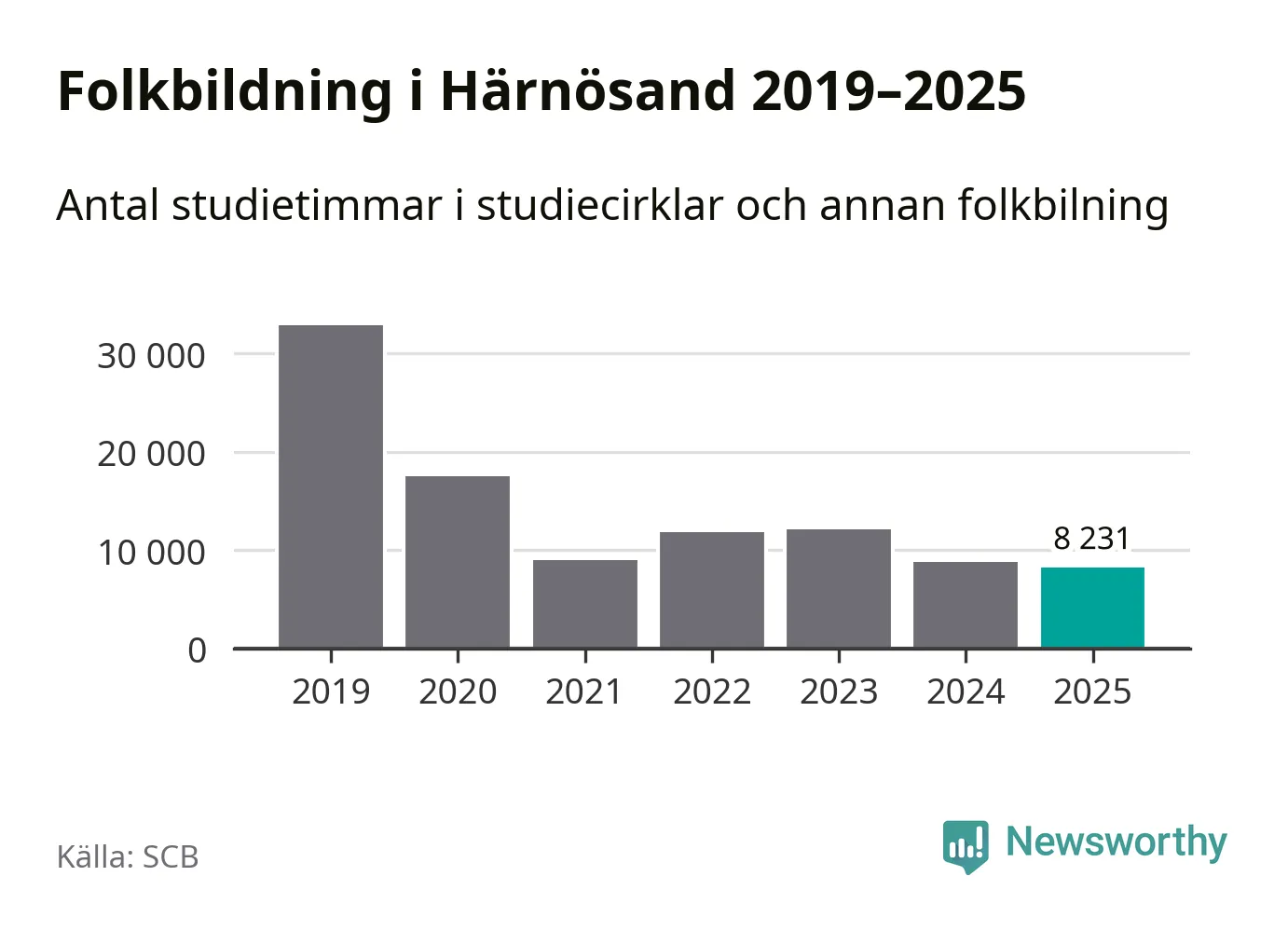 Studieförbunden drabbades hårt av pandemin. Även i Härnösand noterades det lägsta antalet studietimmar under 2021, som då var 73 procent färre än 2019 – vilket fortfarande är fler än 2025.