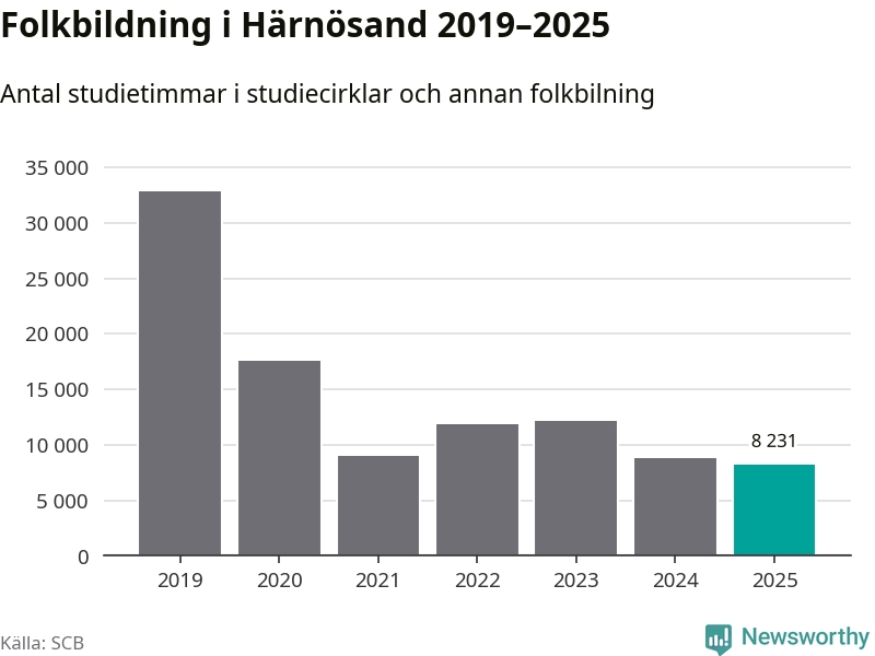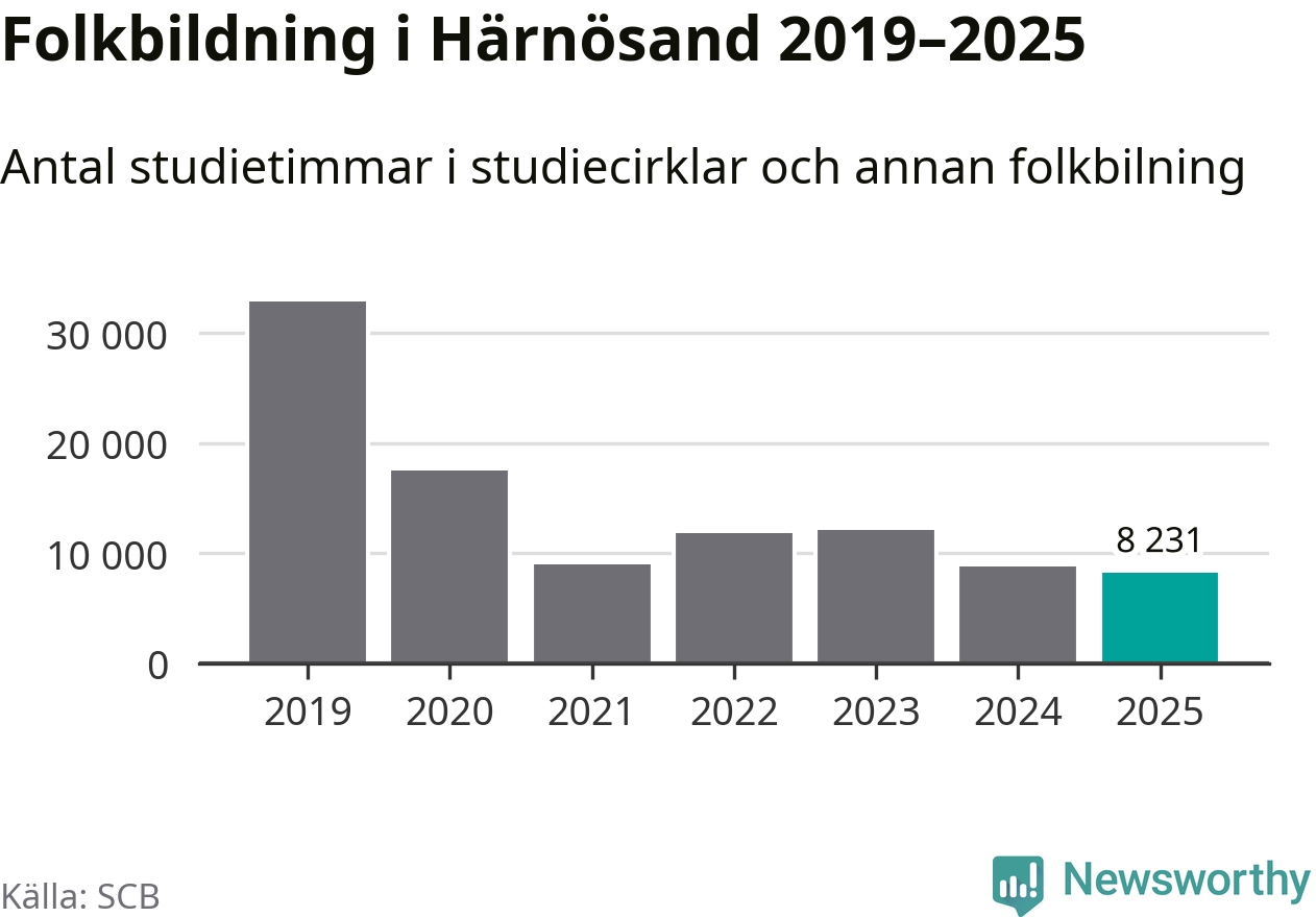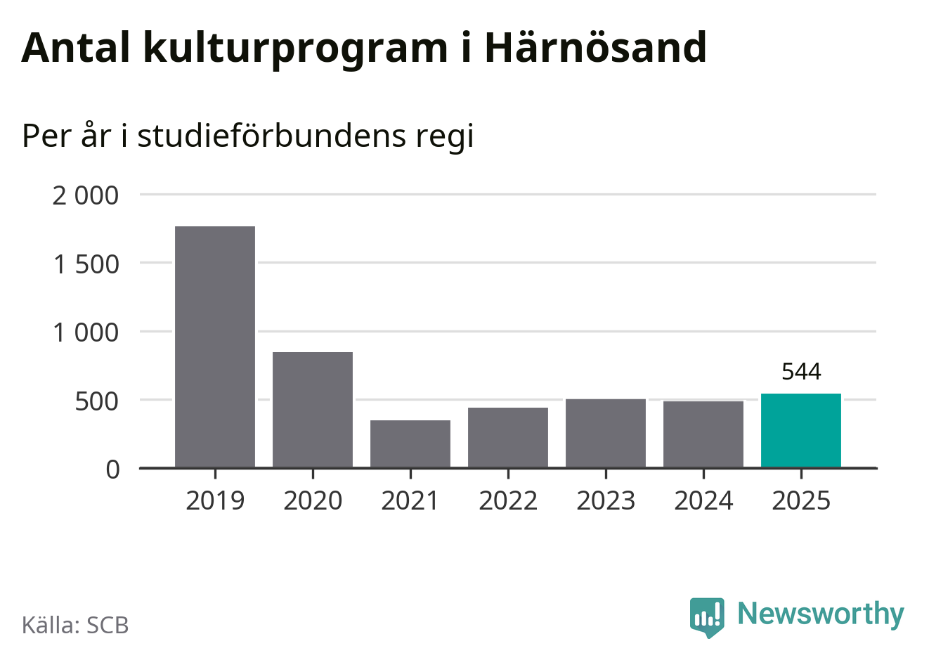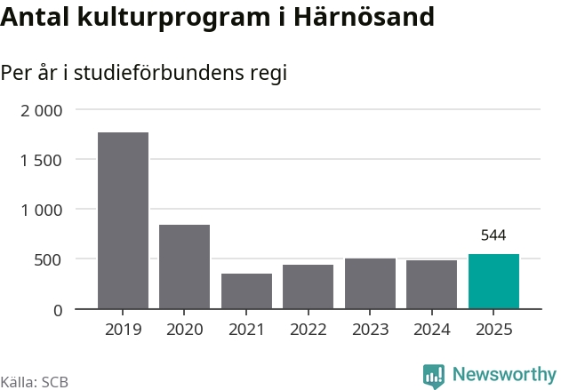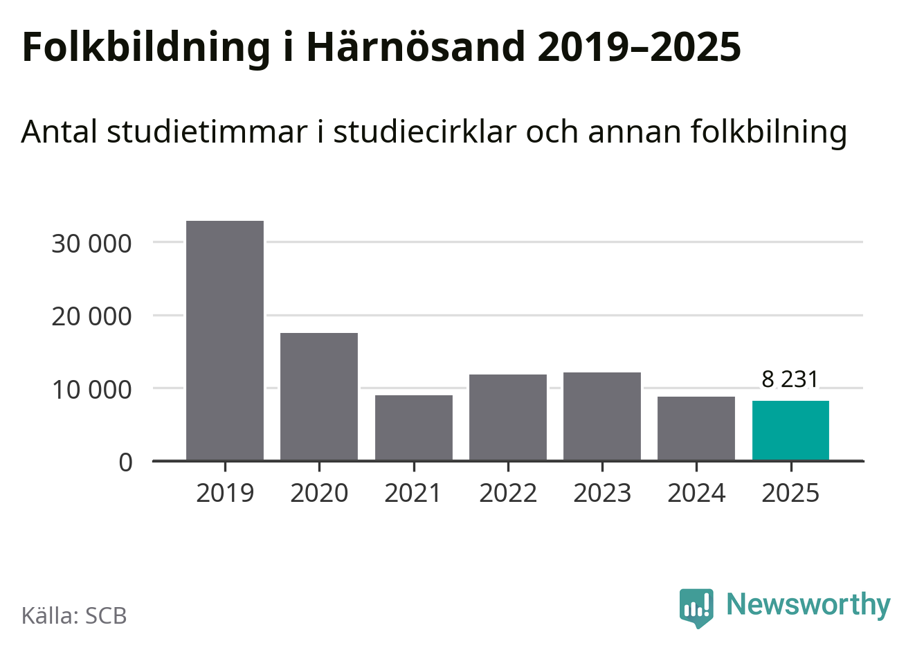 Studieförbunden drabbades hårt av pandemin. Även i Härnösand noterades det lägsta antalet studietimmar under 2021, som då var 73 procent färre än 2019 – vilket fortfarande är fler än 2025.