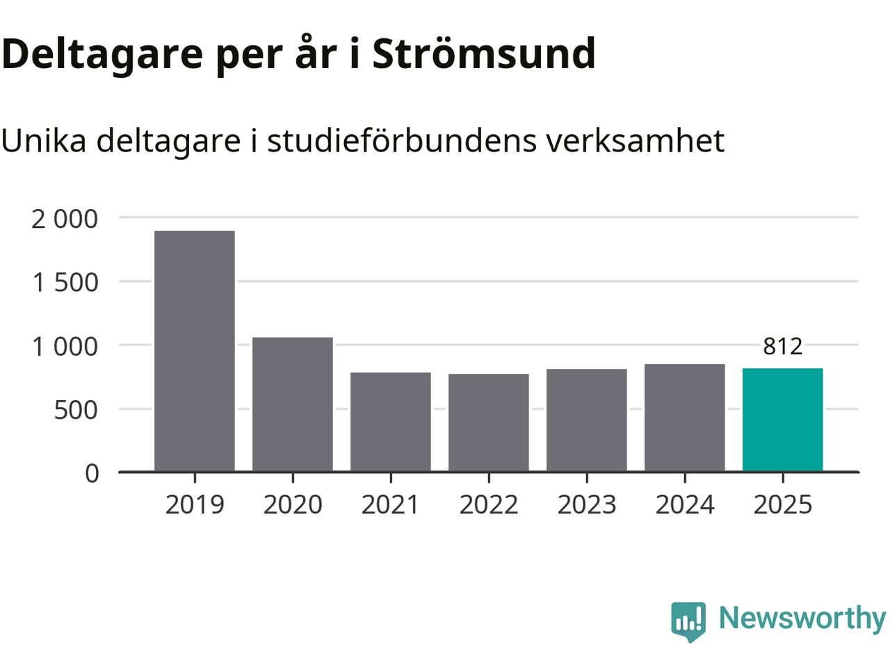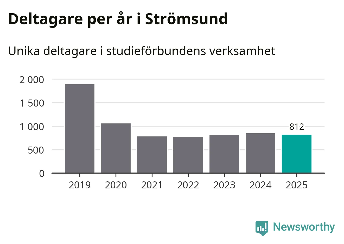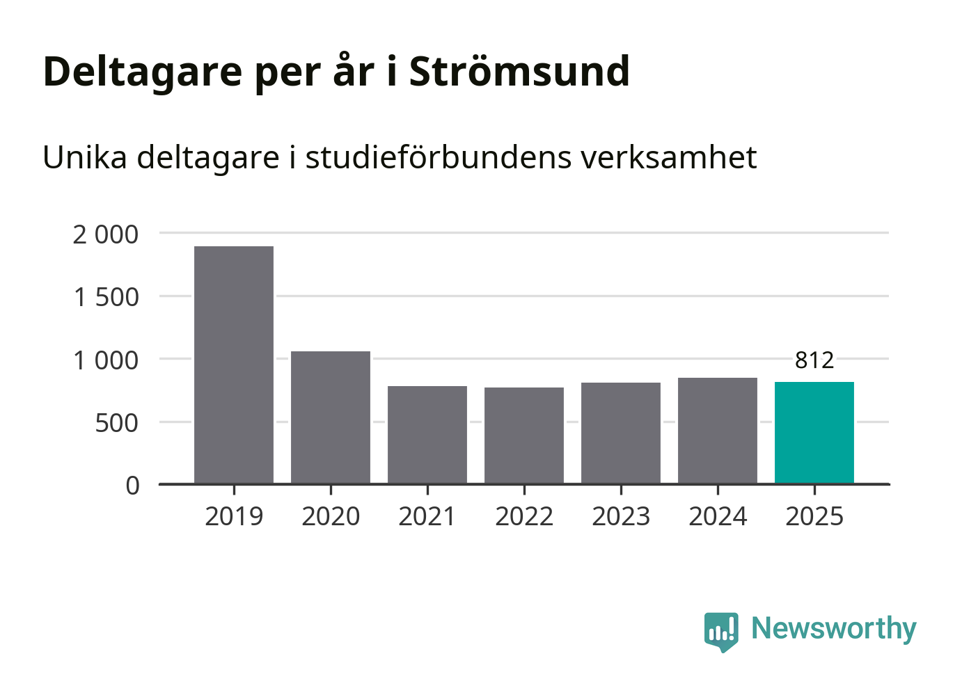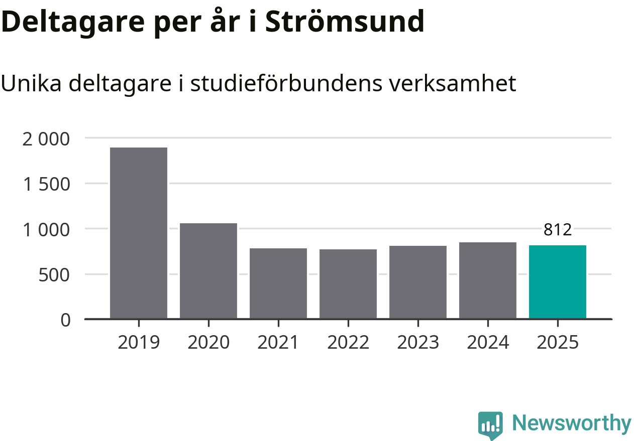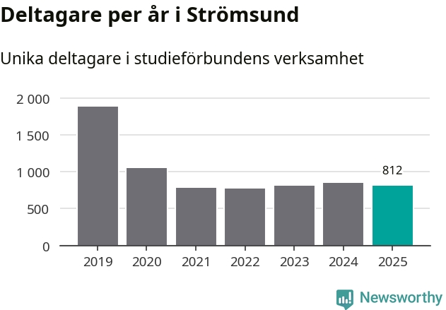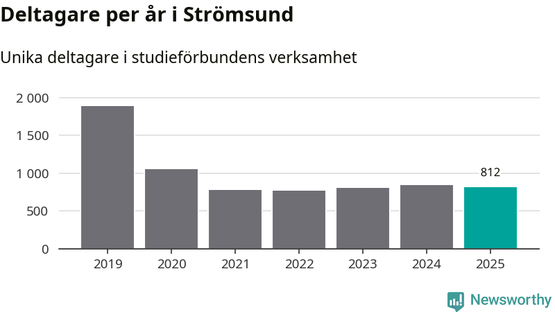 Sett till unika deltagare är folkbildningen på tillbakagång i Strömsund. 2025 deltog 812 personer i studieförbundens verksamhet, vilket är en minskning med fyra procent jämfört med året innan. Det innebär att sju procent av befolkningen i kommunen deltog i studieförbundens verksamhet under 2025, vilket är ungefär som rikssnittet.