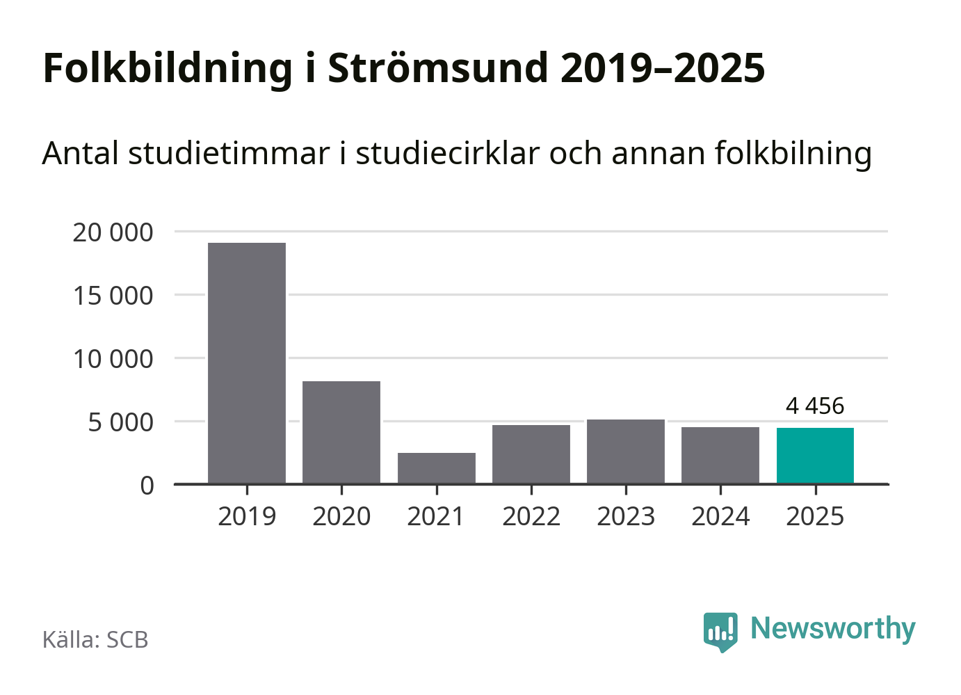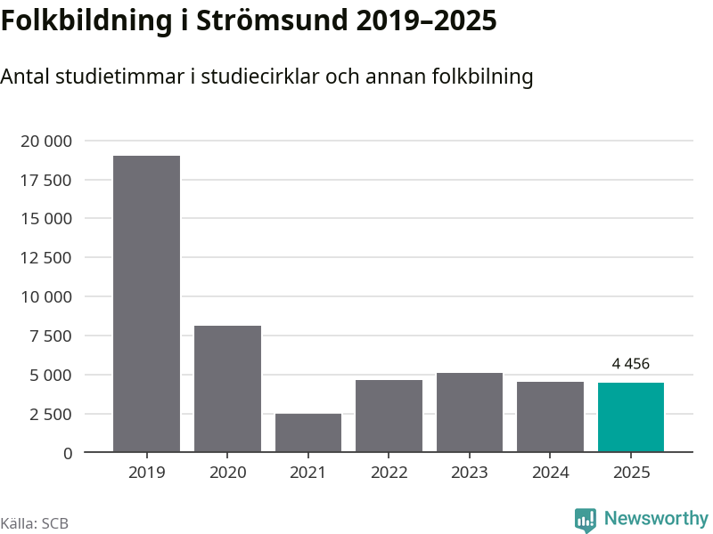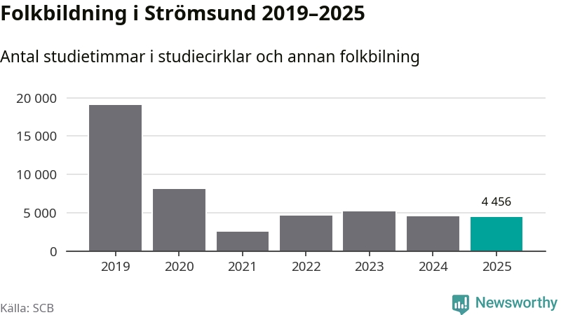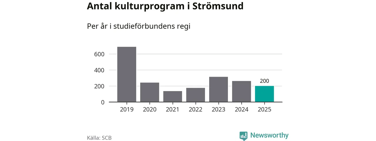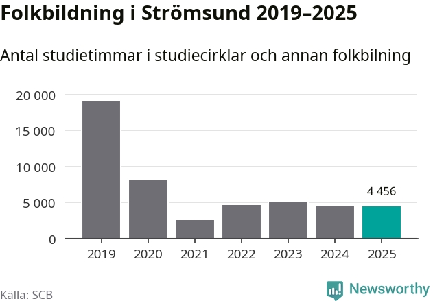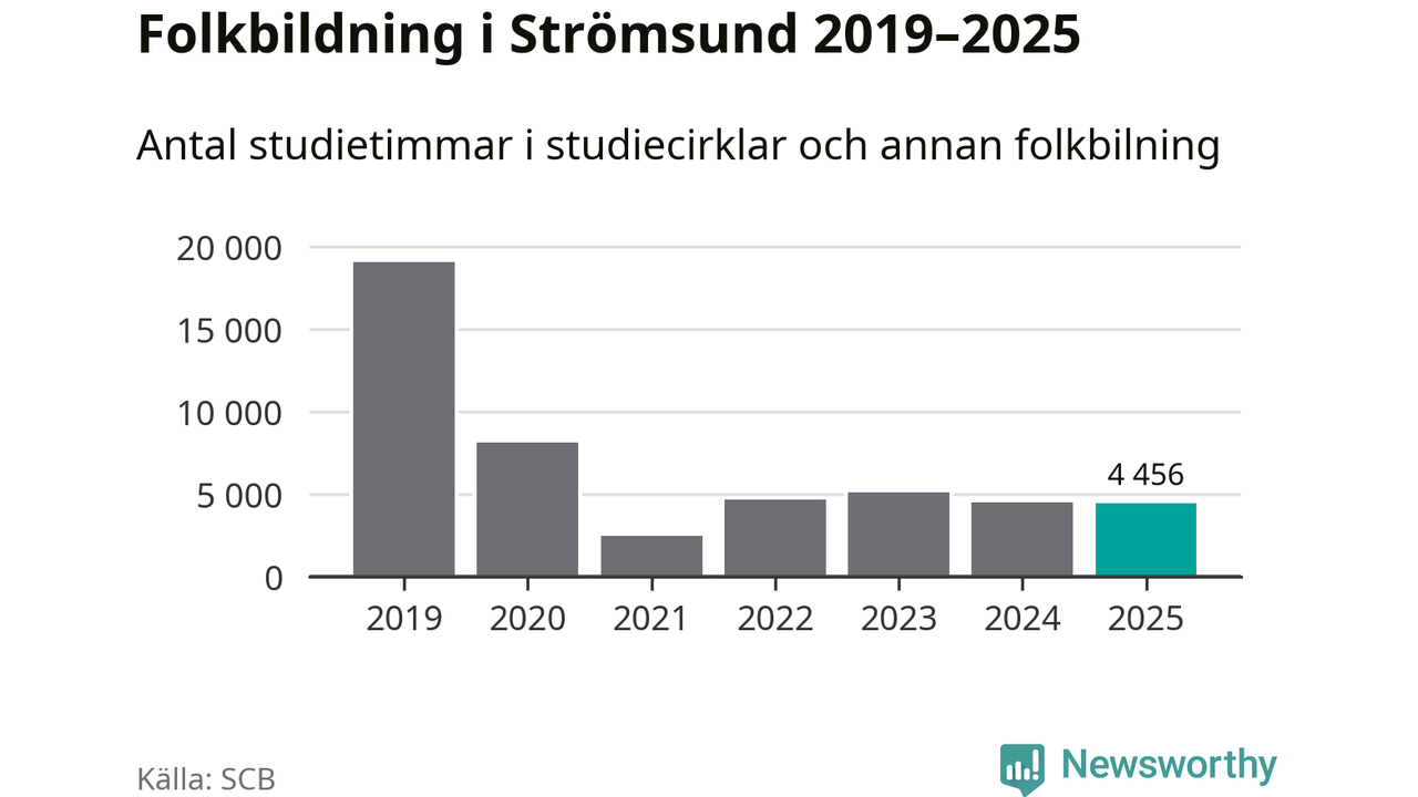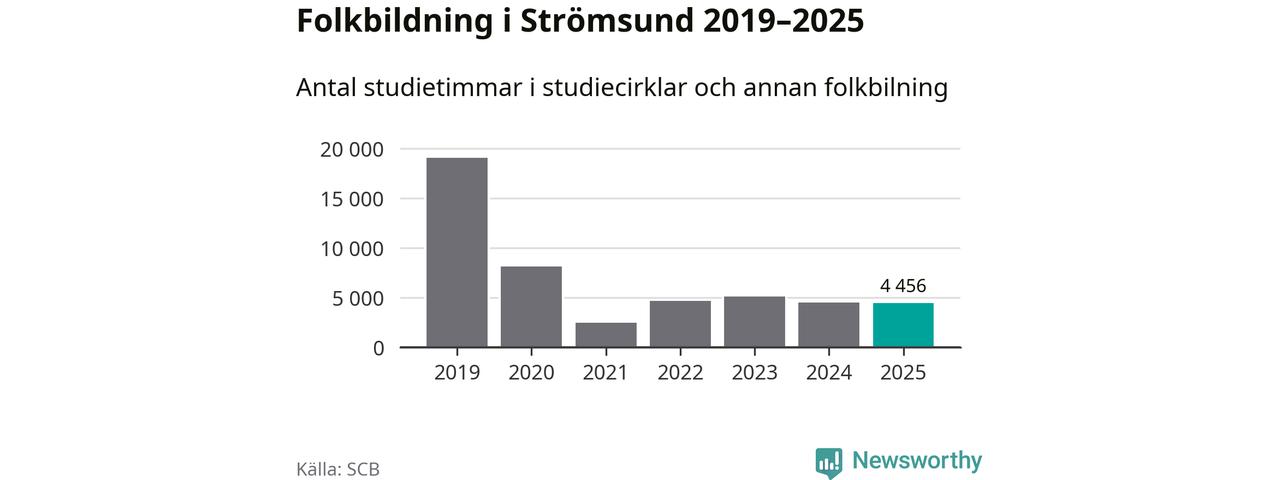 Studieförbunden drabbades hårt av pandemin. Även i Strömsund noterades det lägsta antalet studietimmar under 2021, som då var 87 procent färre än 2019. År 2024 var antalet studietimmar åter högre men de var fortfarande långt från förpandeminivåerna.