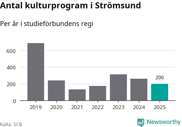 I Strömsund är antalet studietimmar nästan lika många som året innan medan antalet kulturarrangemang i studieförbundens regi minskade.