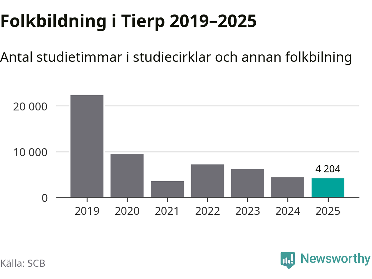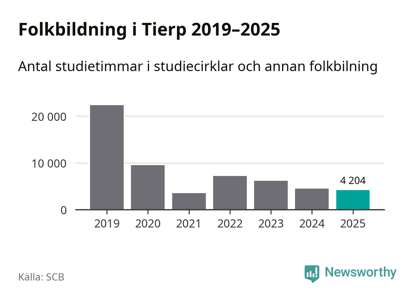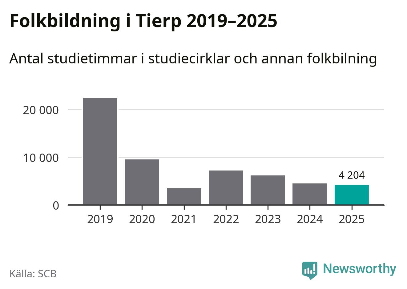 Studieförbunden drabbades hårt av pandemin. Även i Tierp noterades det lägsta antalet studietimmar under 2021, som då var 84 procent färre än 2019. År 2024 var antalet studietimmar åter högre men de var fortfarande långt från förpandeminivåerna.