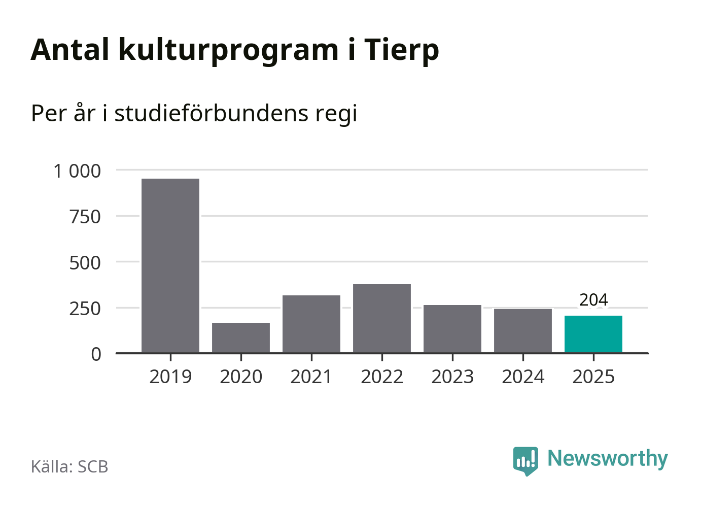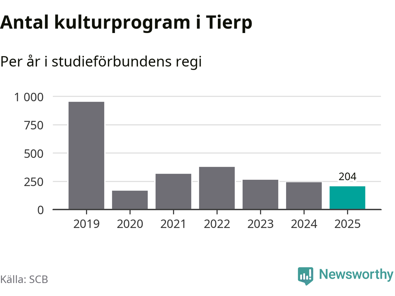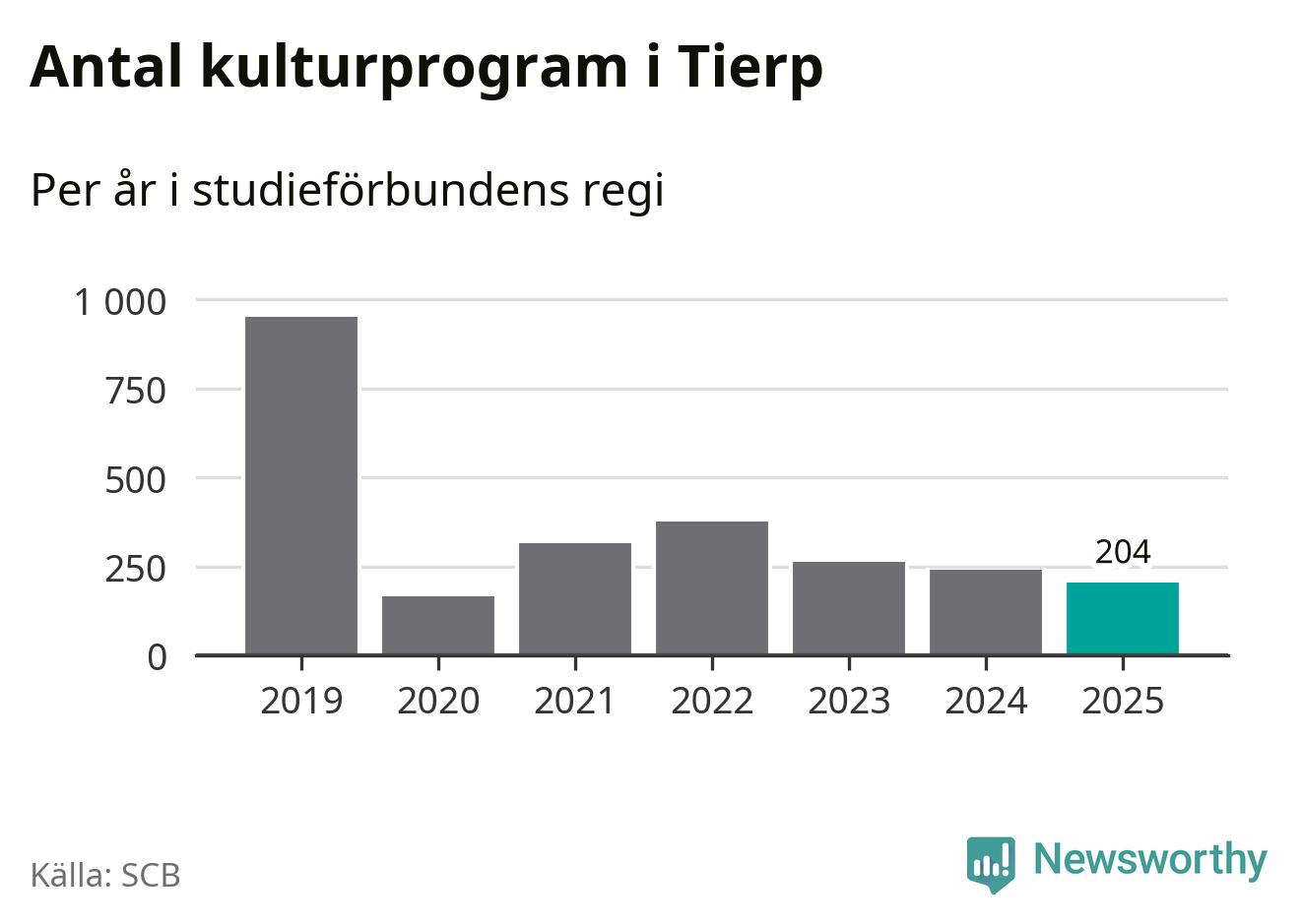 Minskningen är lika stor i Tierp. Förra året hade studieförbunden omkring 4 200 studietimmar i kommunen jämfört med omkring 4 500 året innan. Även antalet kulturprogram i studieförbundens regi minskade, från 241 till 204 stycken.
