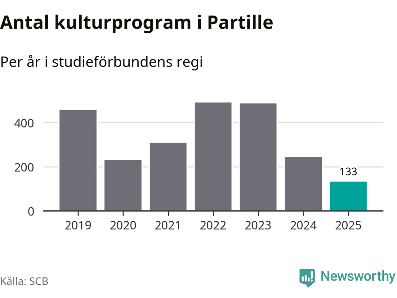 De svåra tiderna fortsätter för studieförbunden. Under 2024 och 2025 skars statsbidragen ner med totalt 350 miljoner kronor och under 2026 kapas de med ytterligare 150 miljoner kronor. Det har lett till uppsägning av personal, uppsagda lokaler och arbetsställen i allt färre kommuner. Och det märks i de färska siffrorna från SCB och Folkbildningsrådet: Under 2025 föll antalet studietimmar i studiecirklar och liknande verksamhet med sex procent jämfört med året innan. Det är tredje året i rad med färre studietimmar. Samtidigt minskade antalet kulturprogram som studieförbunden arrangerade med nio procent.