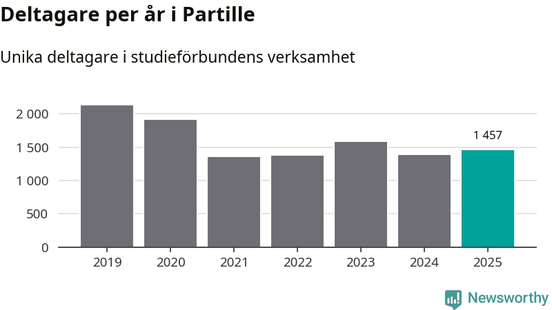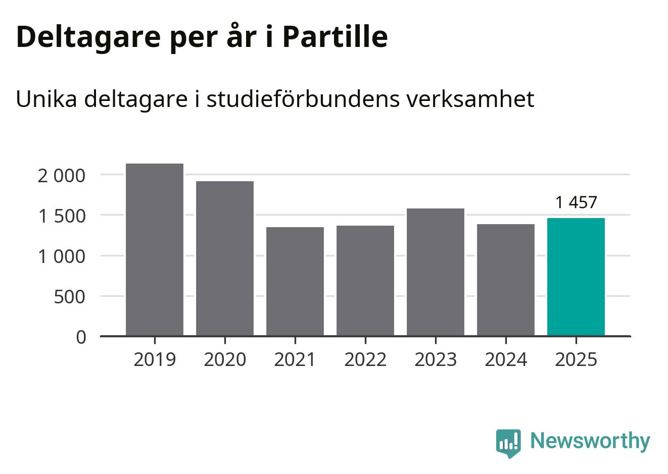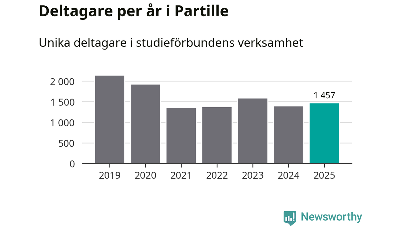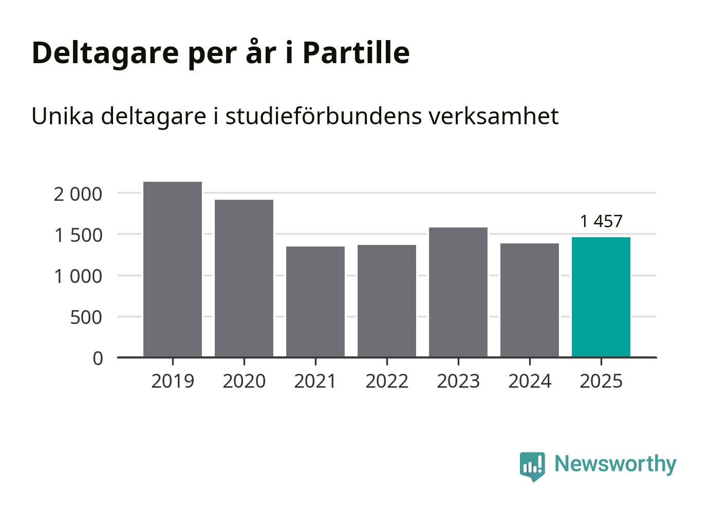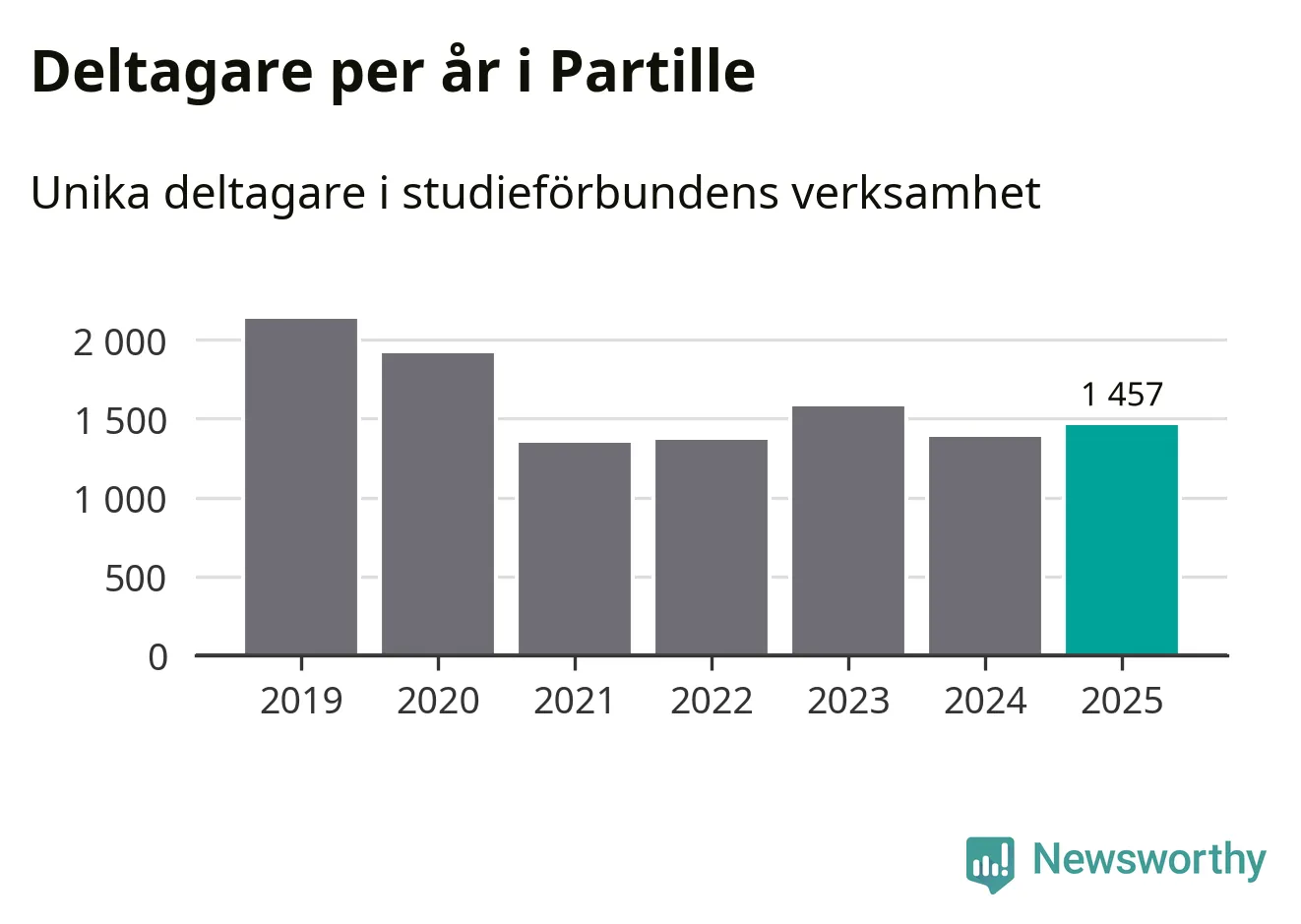 Även antalet unika deltagare ökade i Partille i fjol: från 1 383 till 1 457 personer. Det innebär att fyra procent av befolkningen i kommunen deltog i studieförbundens verksamhet under 2025, vilket är lägre än rikssnittet.