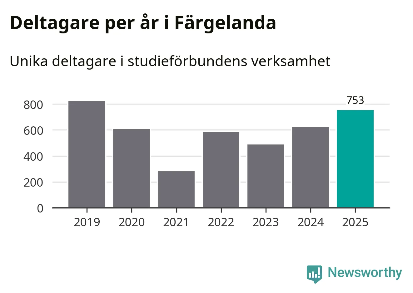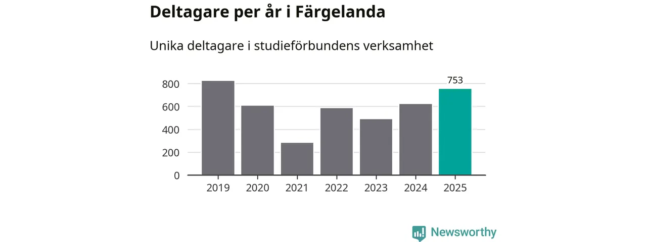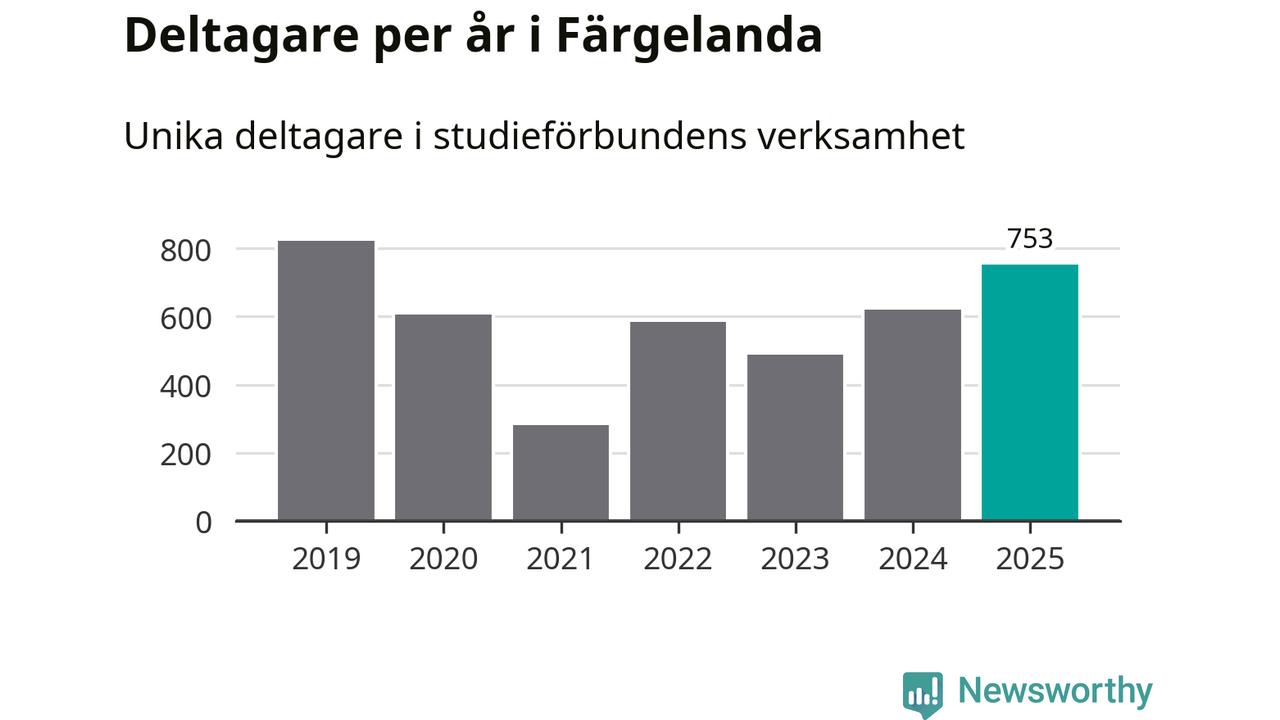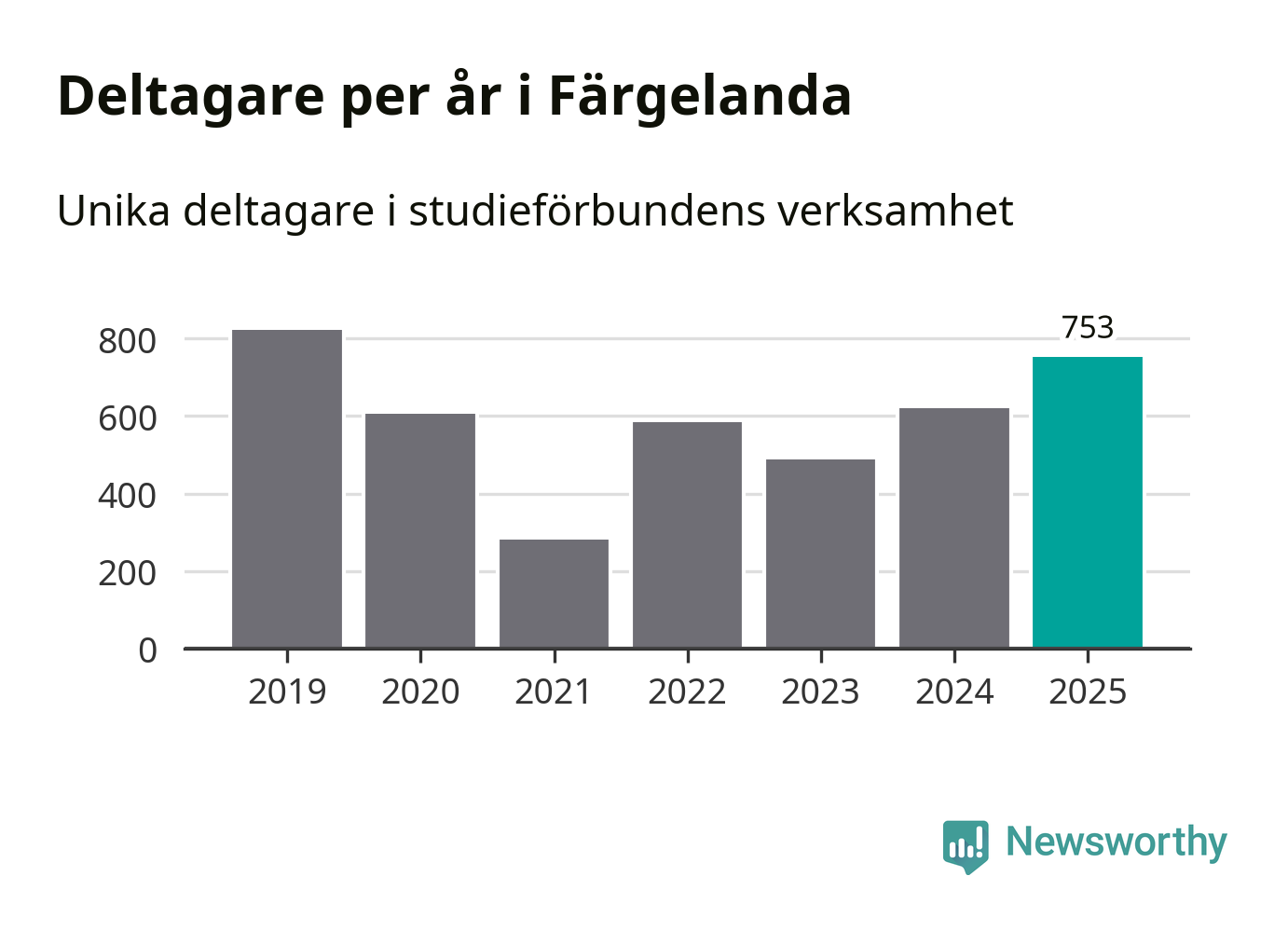 Även antalet unika deltagare ökade i Färgelanda i fjol: från 619 till 753 personer. Det innebär att tolv procent av befolkningen i kommunen deltog i studieförbundens verksamhet under 2025, vilket är högre än rikssnittet.