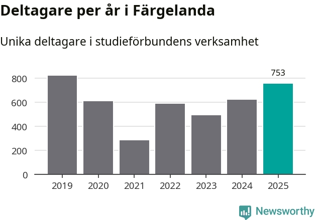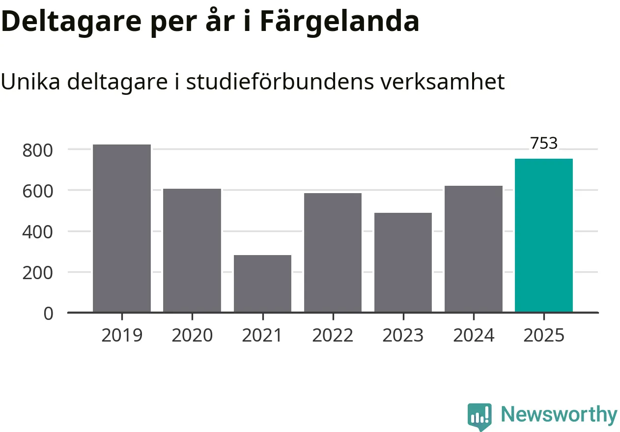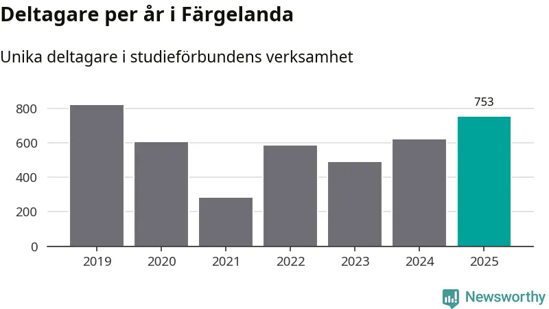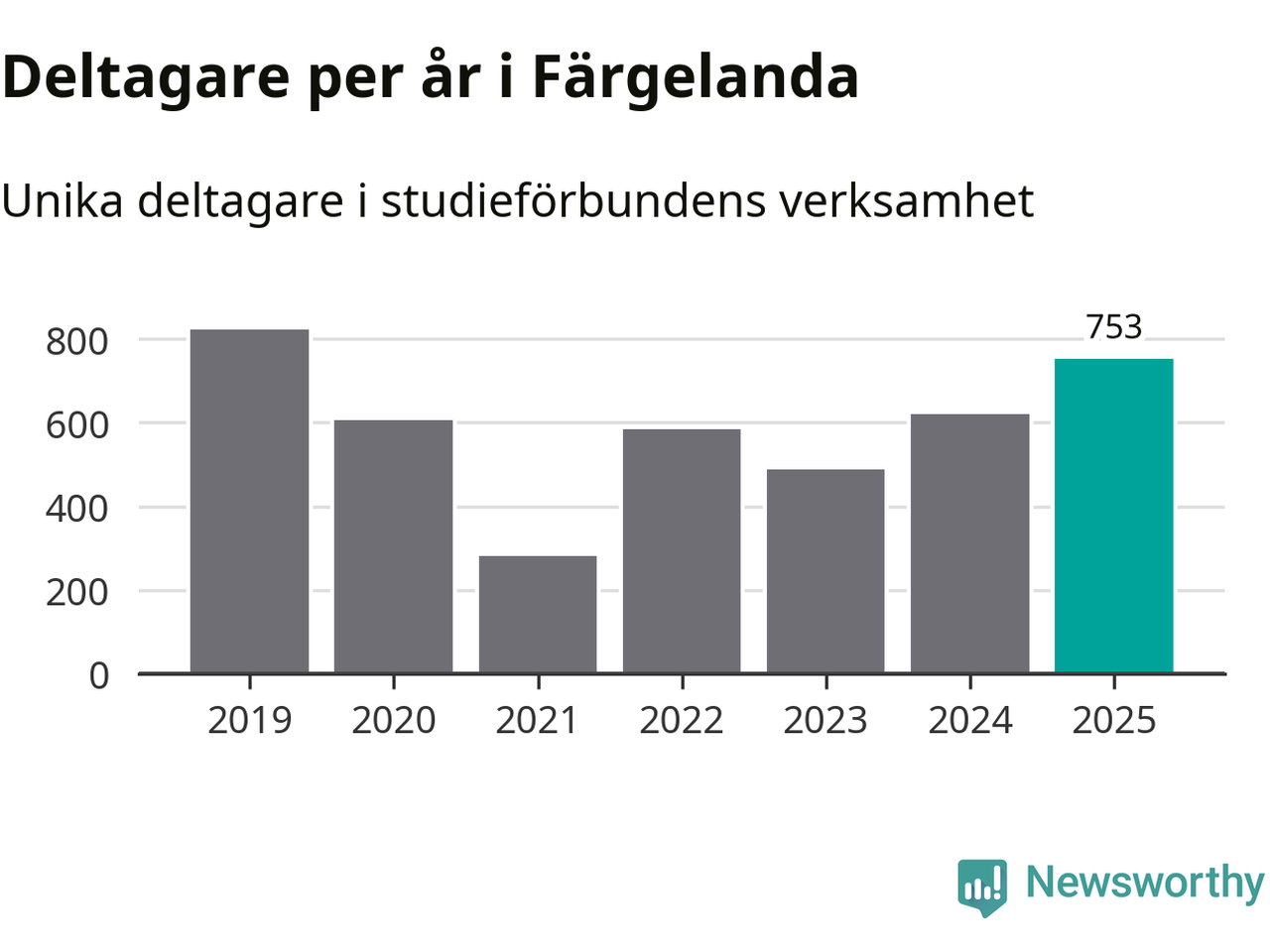 Även antalet unika deltagare ökade i Färgelanda i fjol: från 619 till 753 personer. Det innebär att tolv procent av befolkningen i kommunen deltog i studieförbundens verksamhet under 2025, vilket är högre än rikssnittet.