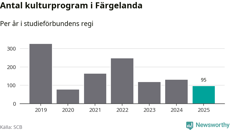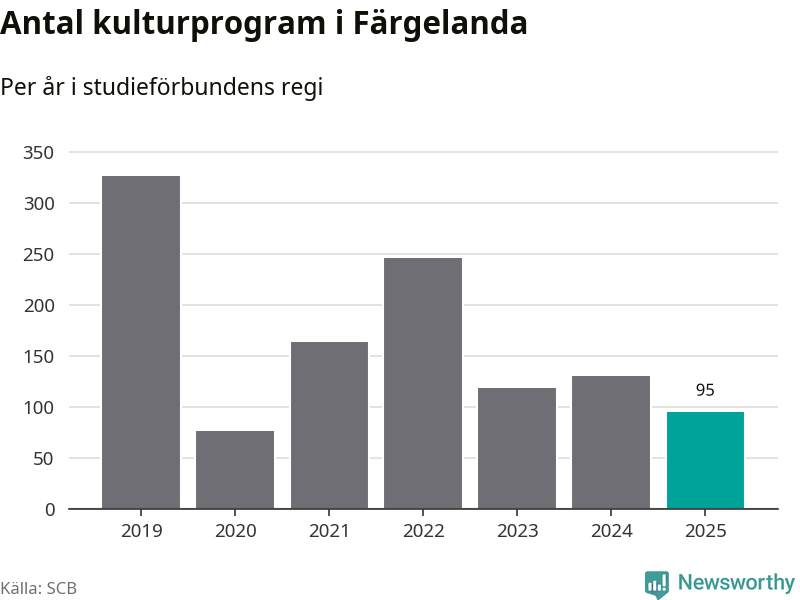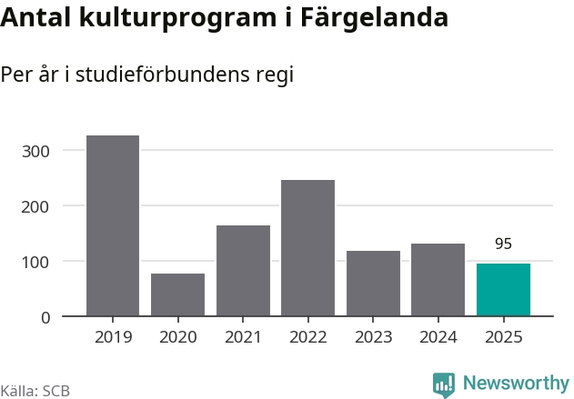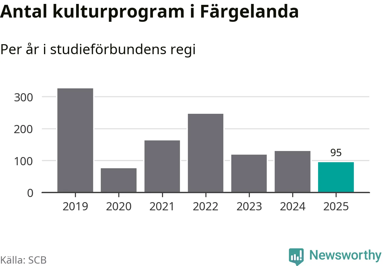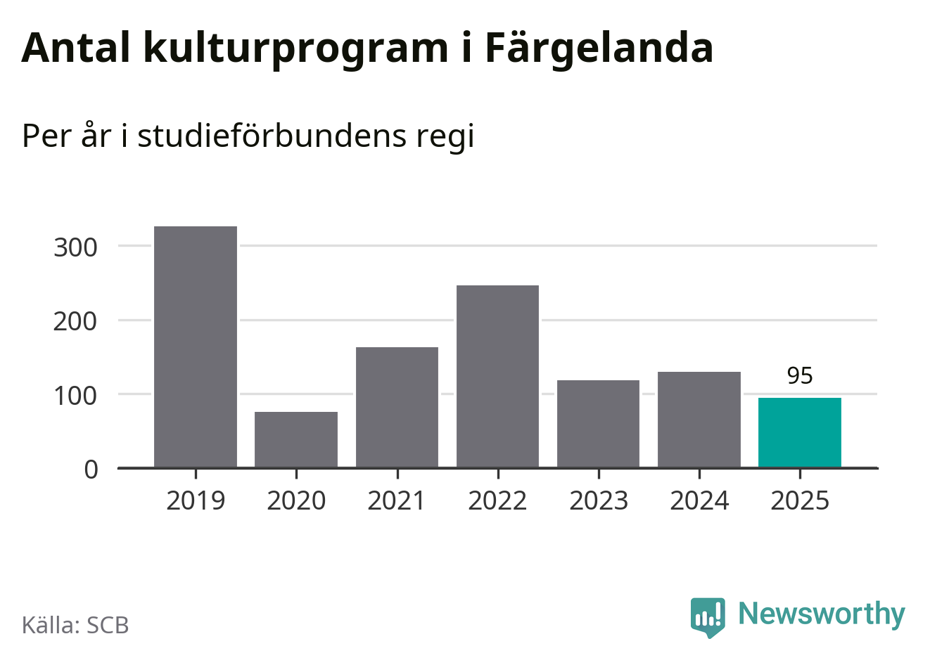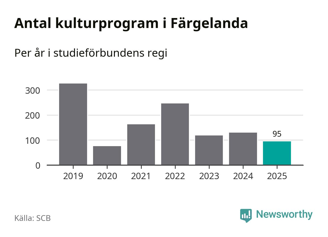 KommunStudietimmar 2025Förändring (%)Kulturprogram 2025Förändring (%)Andel av befolkningen som deltagit