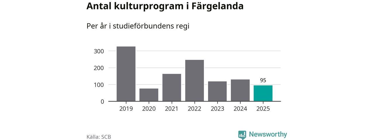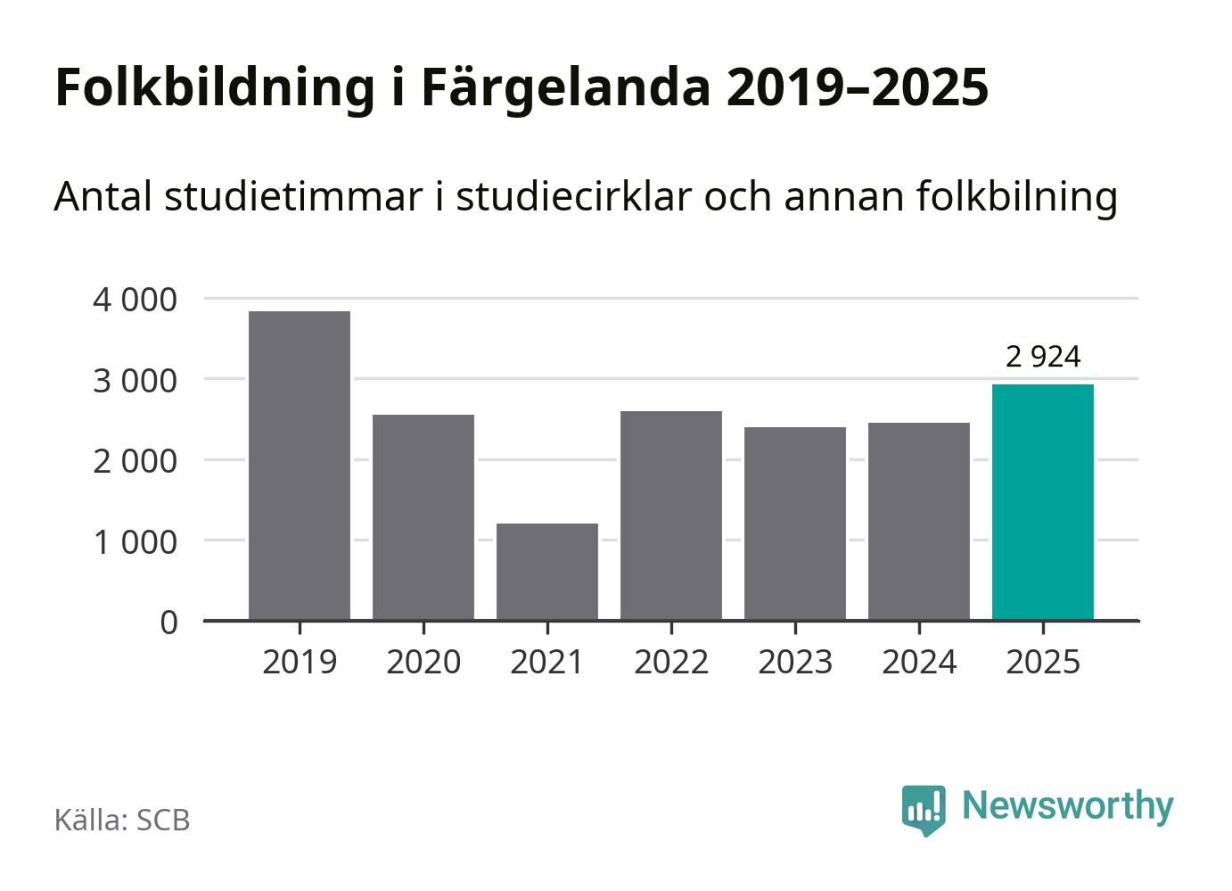 Men Färgelanda är en av 80 kommuner i landet där antalet studietimmar faktiskt ökade under under fjolåret. Omkring 2 900 studietimmar innebär en ökning med 20 procent jämfört med året innan. Däremot minskade antalet kulturarrangemang i studieförbundens regi i kommunen jämfört med året innan.