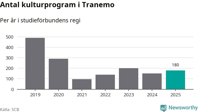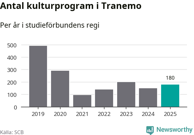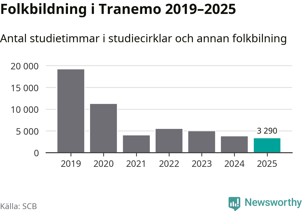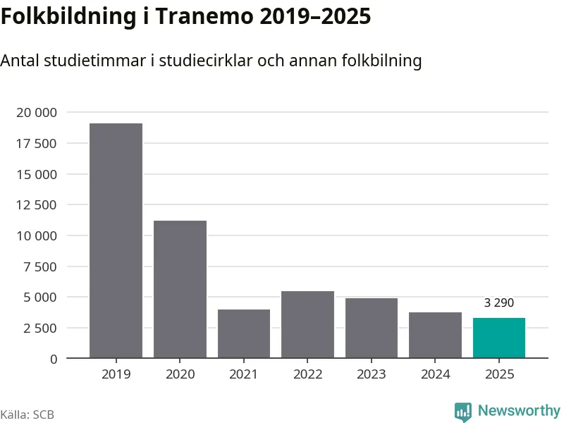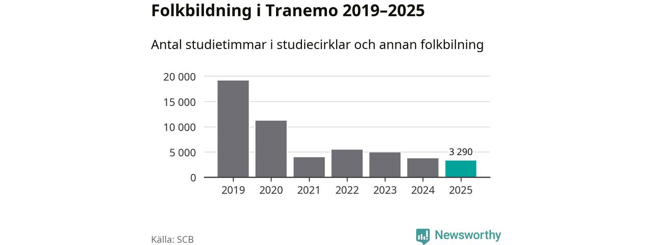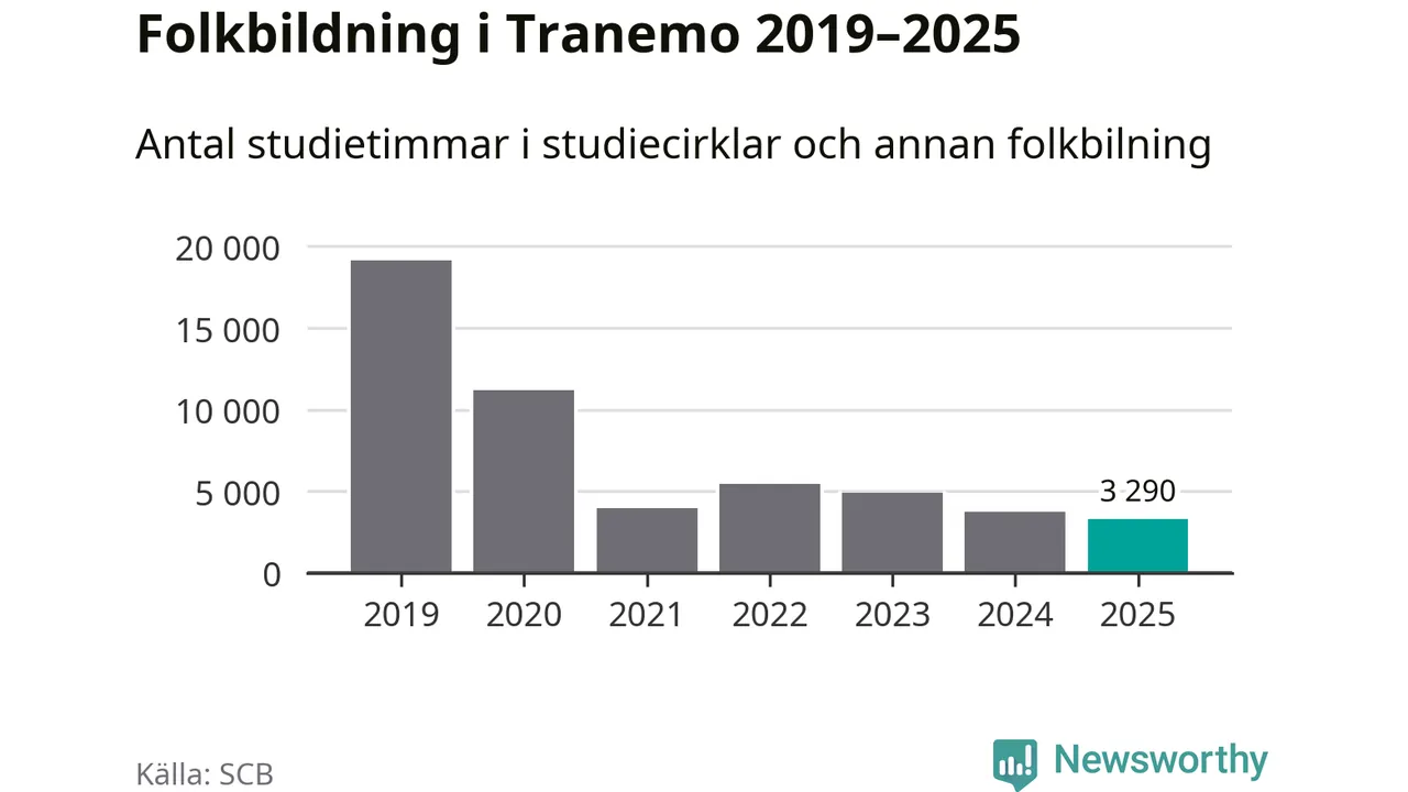 Studieförbunden drabbades hårt av pandemin. Även i Tranemo noterades det lägsta antalet studietimmar under 2021, som då var 79 procent färre än 2019 – vilket fortfarande är fler än 2025.