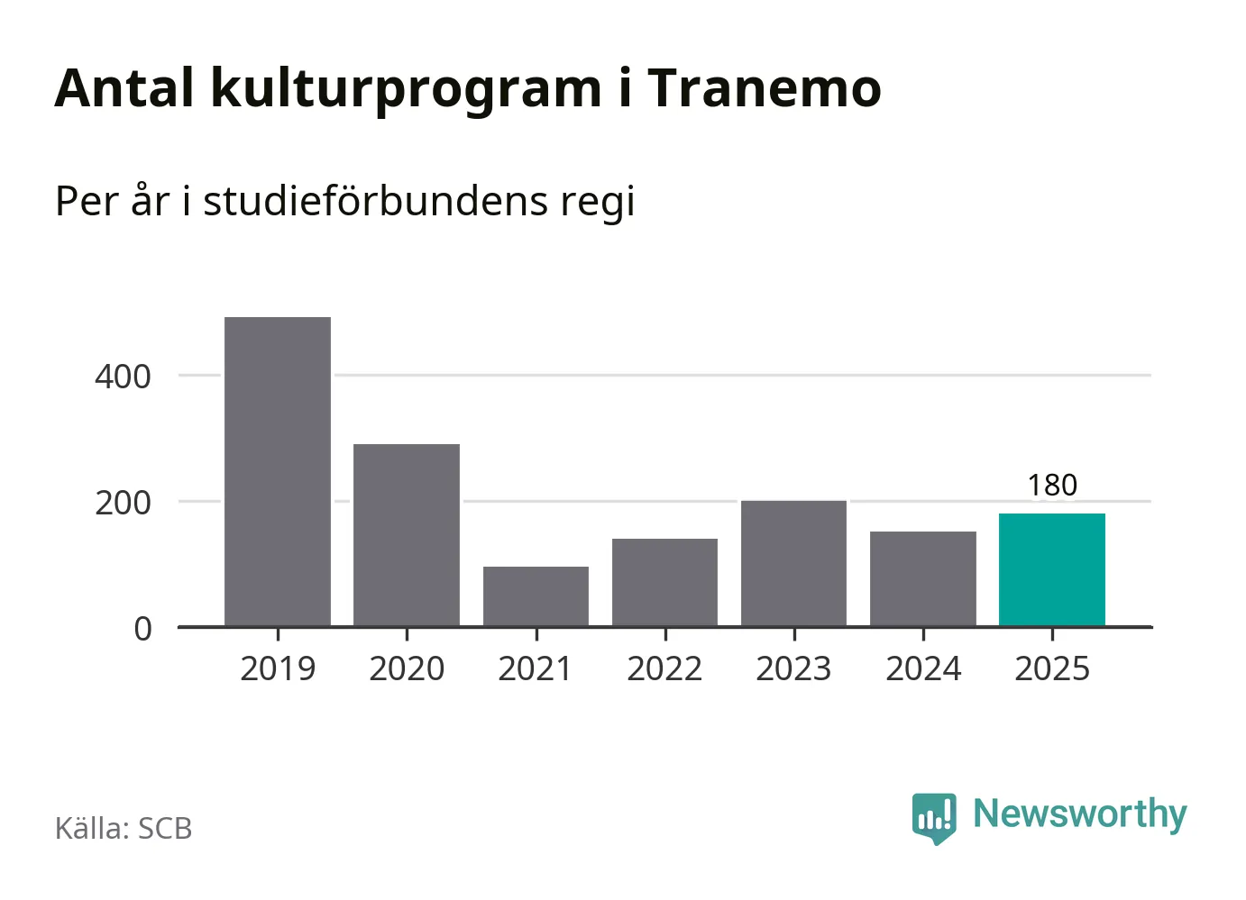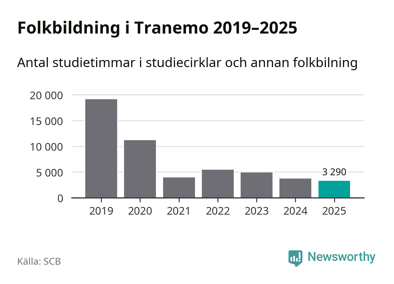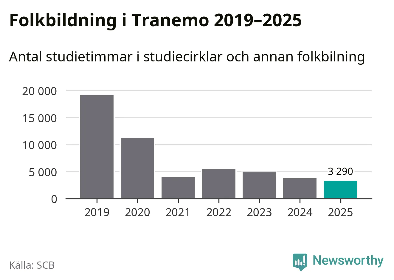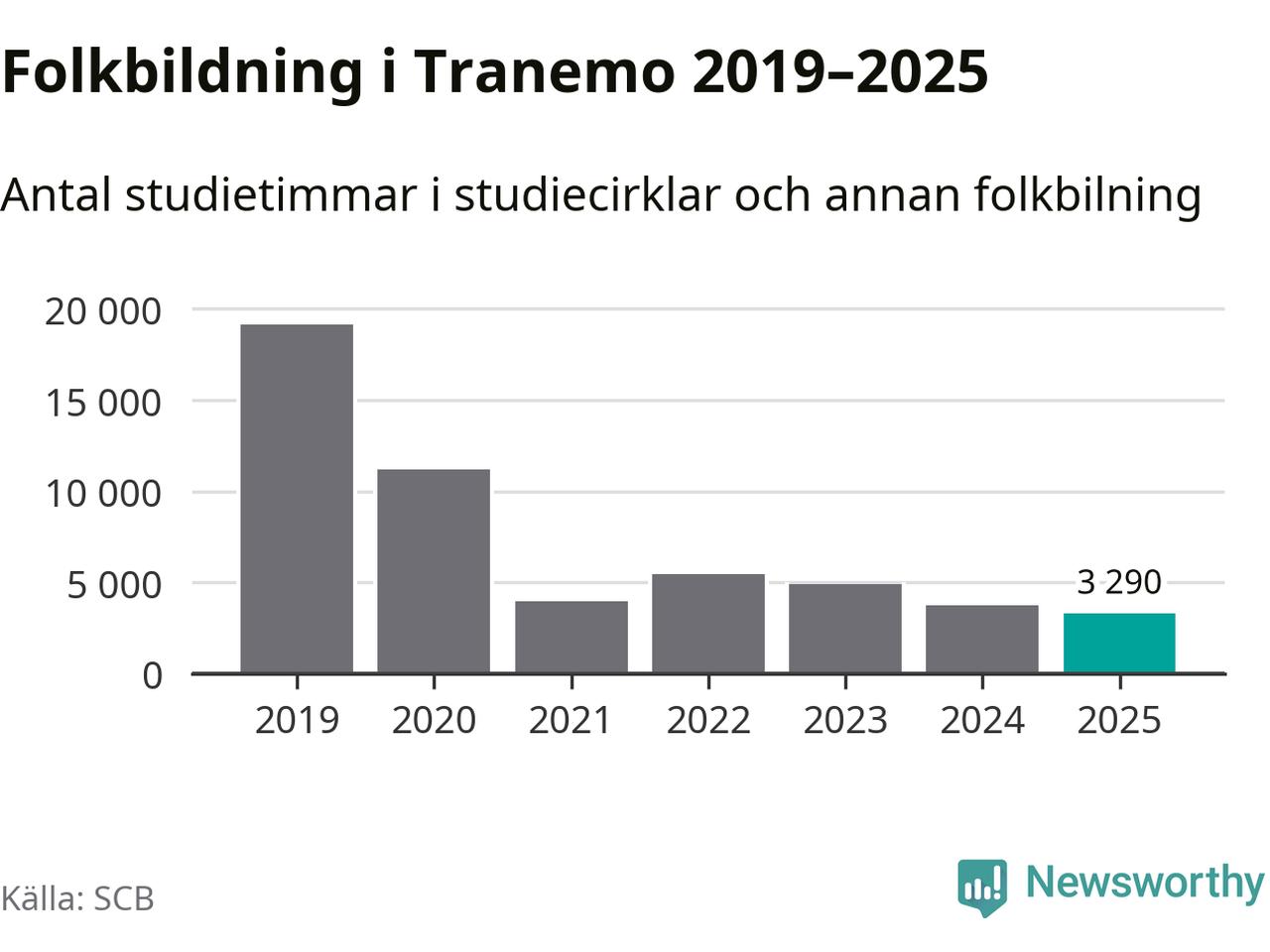 Studieförbunden drabbades hårt av pandemin. Även i Tranemo noterades det lägsta antalet studietimmar under 2021, som då var 79 procent färre än 2019 – vilket fortfarande är fler än 2025.