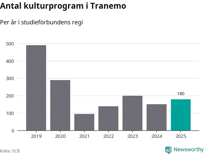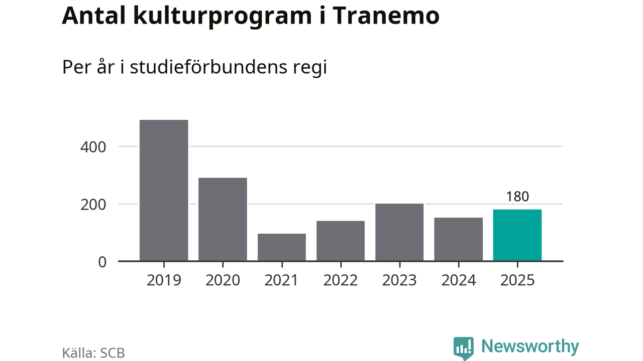 Åtta av de studieförbund som 2025 fick bidrag från Folkbildningsrådet har haft någon form av verksamhet – antingen studiecirkel, annan folkbildning eller kulturprogram – i Tranemo under de två senaste åren. Under 2025 ökade fyra förbund antalet studietimmar i kommunen jämfört med året innan, medan de fyra andra förbunden i kommunen noterade färre timmar.
