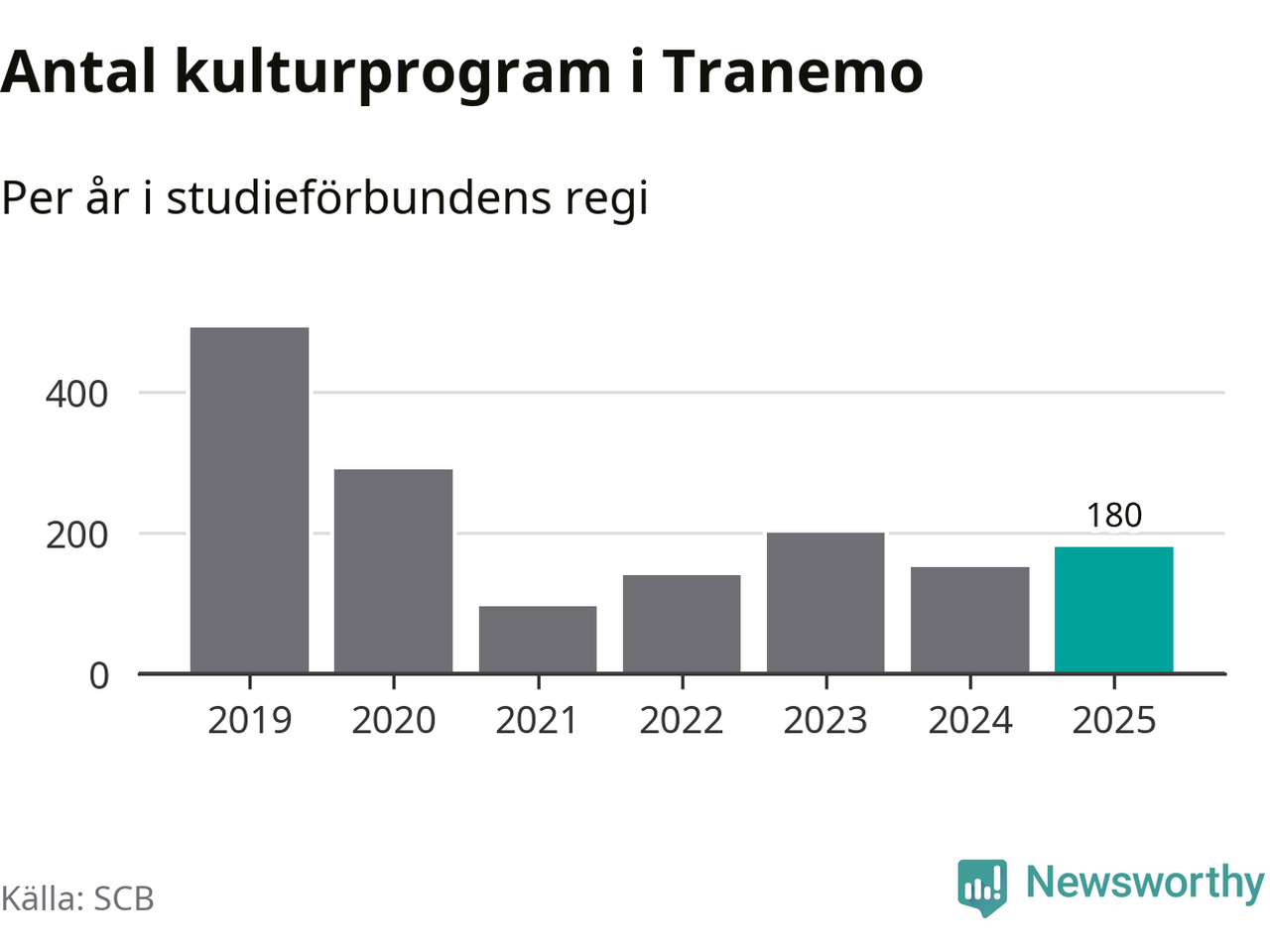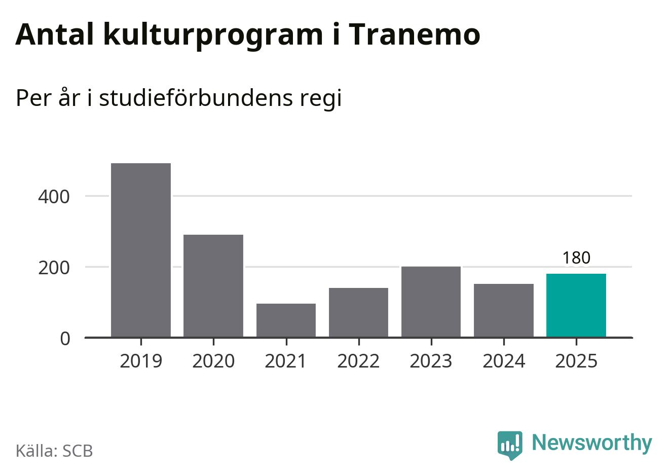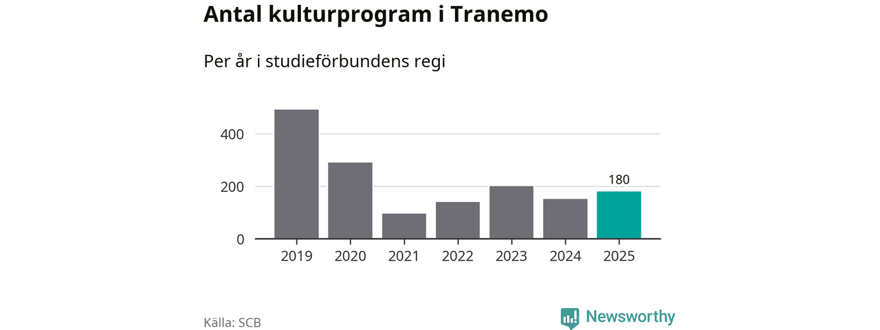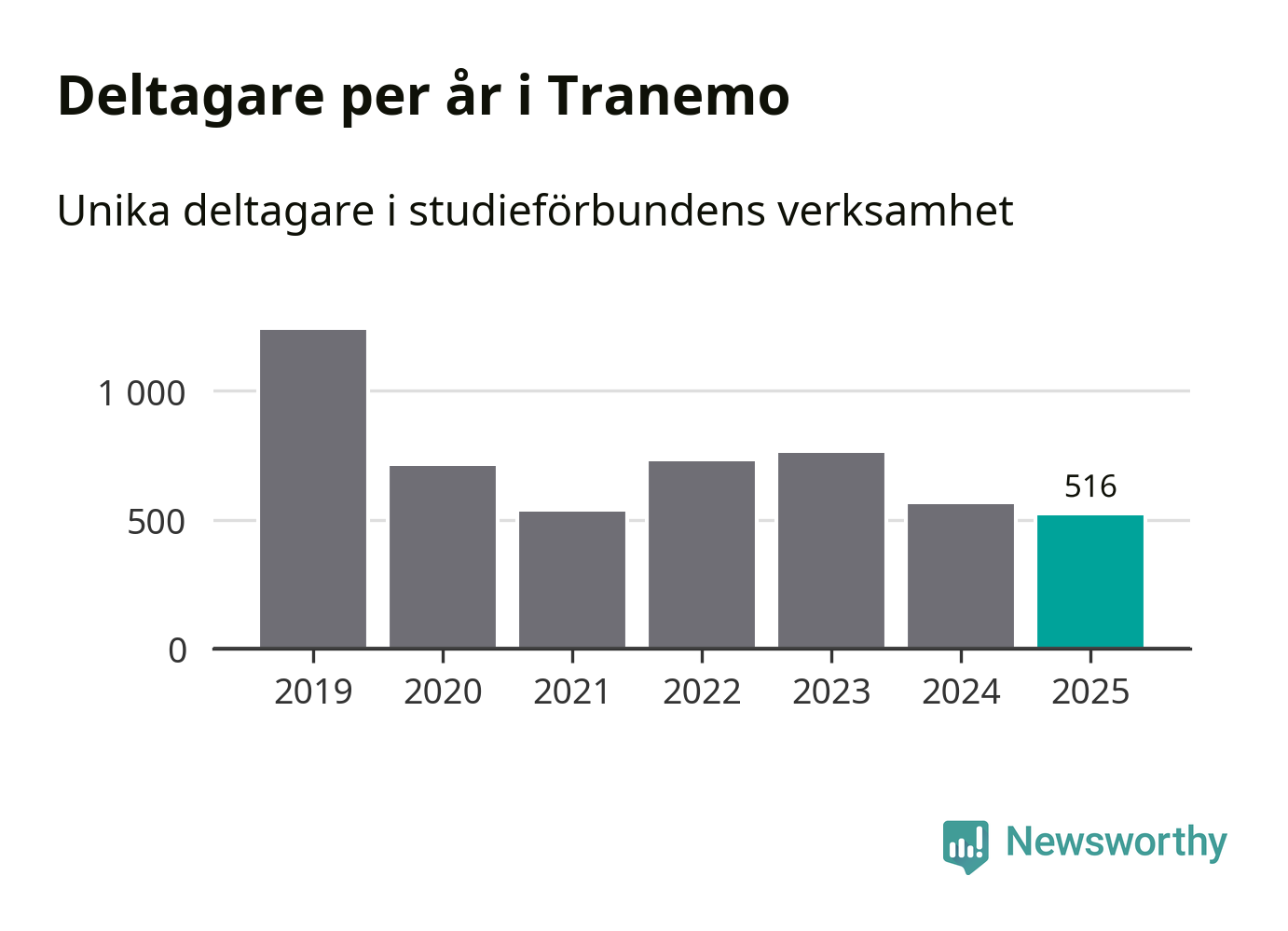 Även sett till unika deltagare är folkbildningen på tillbakagång i Tranemo. 2025 deltog 516 personer i studieförbundens verksamhet, vilket är en minskning med åtta procent jämfört med året innan. Det innebär att fyra procent av befolkningen i kommunen deltog i studieförbundens verksamhet under 2025, vilket är ungefär som rikssnittet.