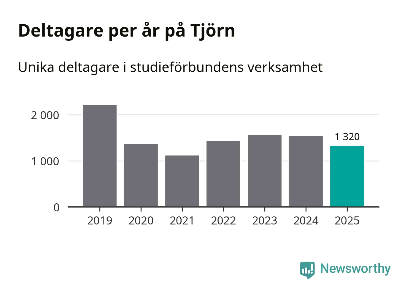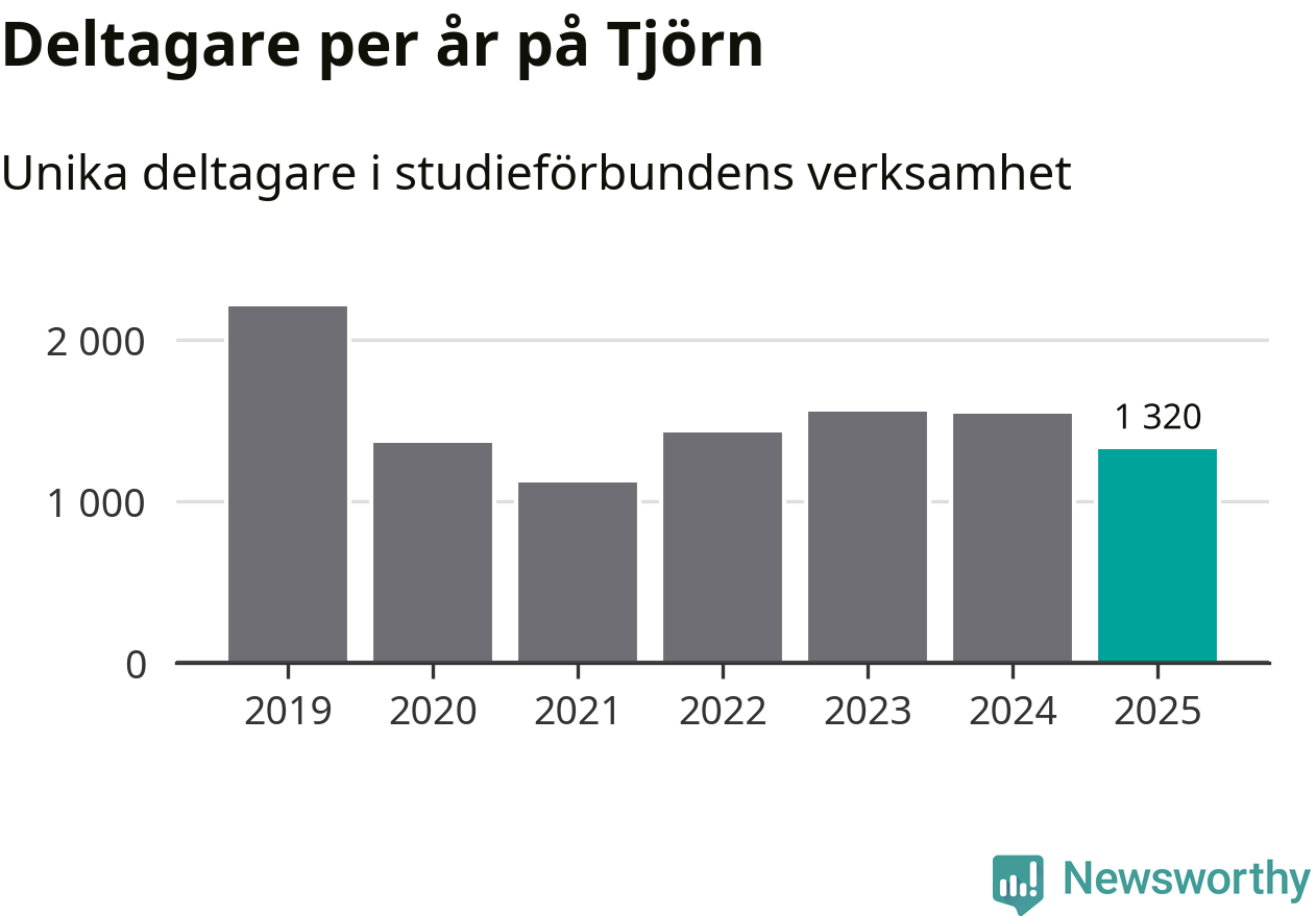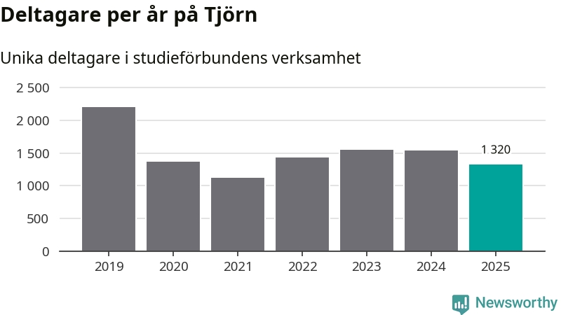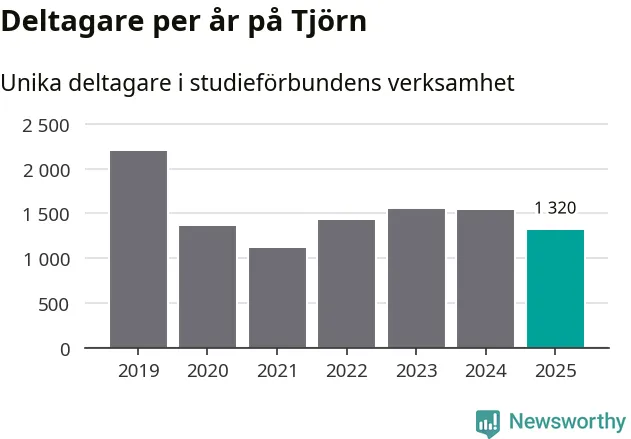 Även sett till unika deltagare är folkbildningen på tillbakagång på Tjörn. 2025 deltog 1 320 personer i studieförbundens verksamhet, vilket är en minskning med 14 procent jämfört med året innan. Det innebär att åtta procent av befolkningen i kommunen deltog i studieförbundens verksamhet under 2025, vilket är högre än rikssnittet.