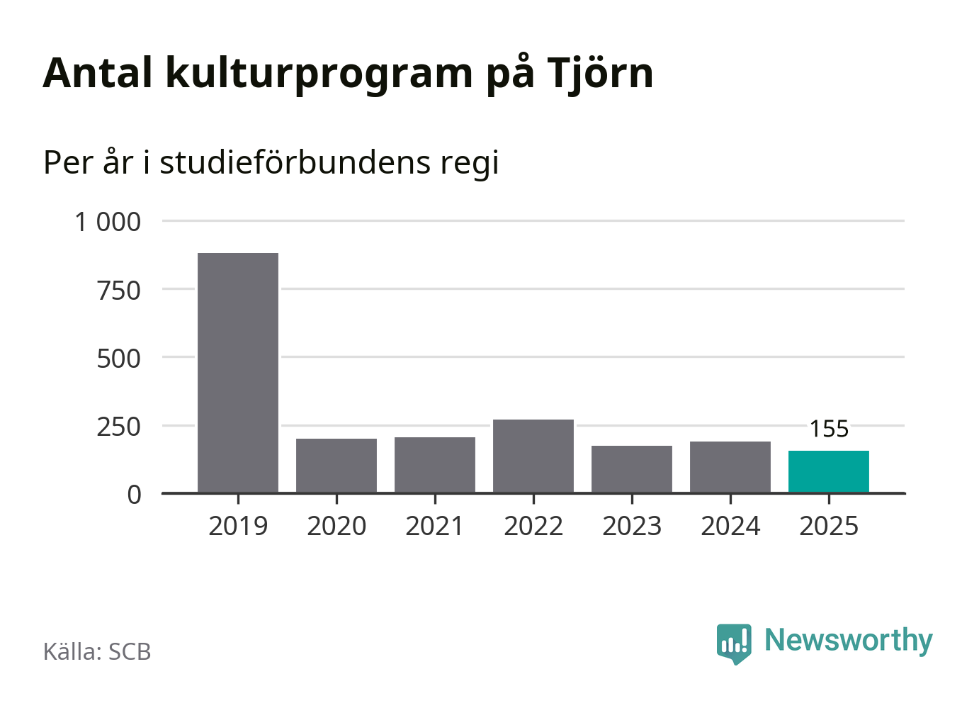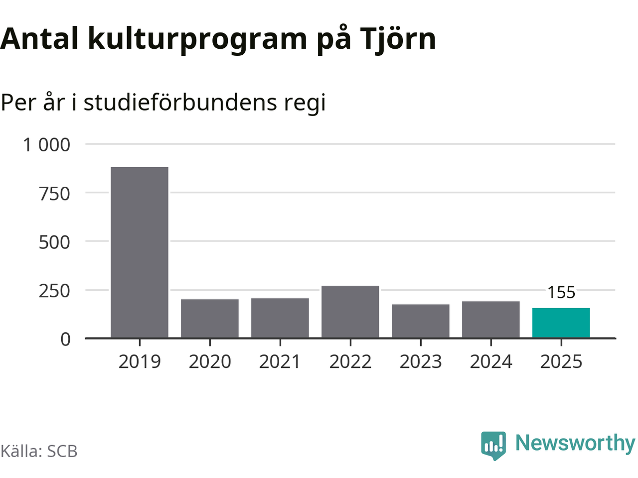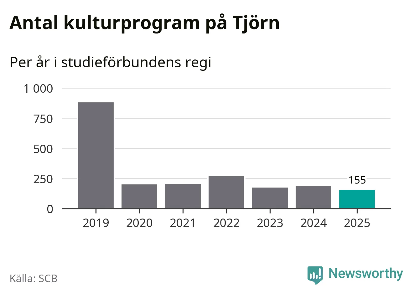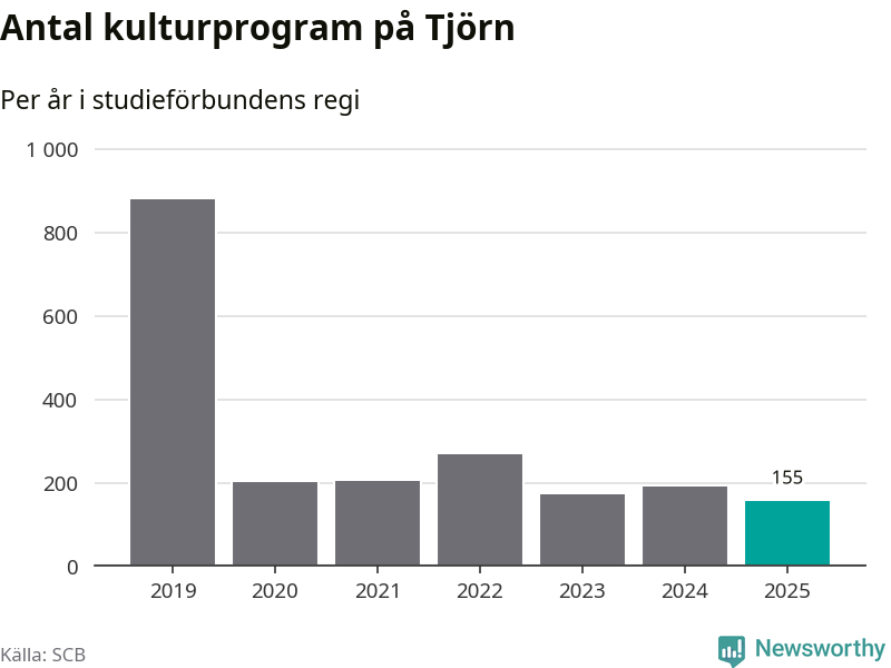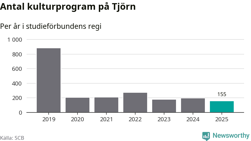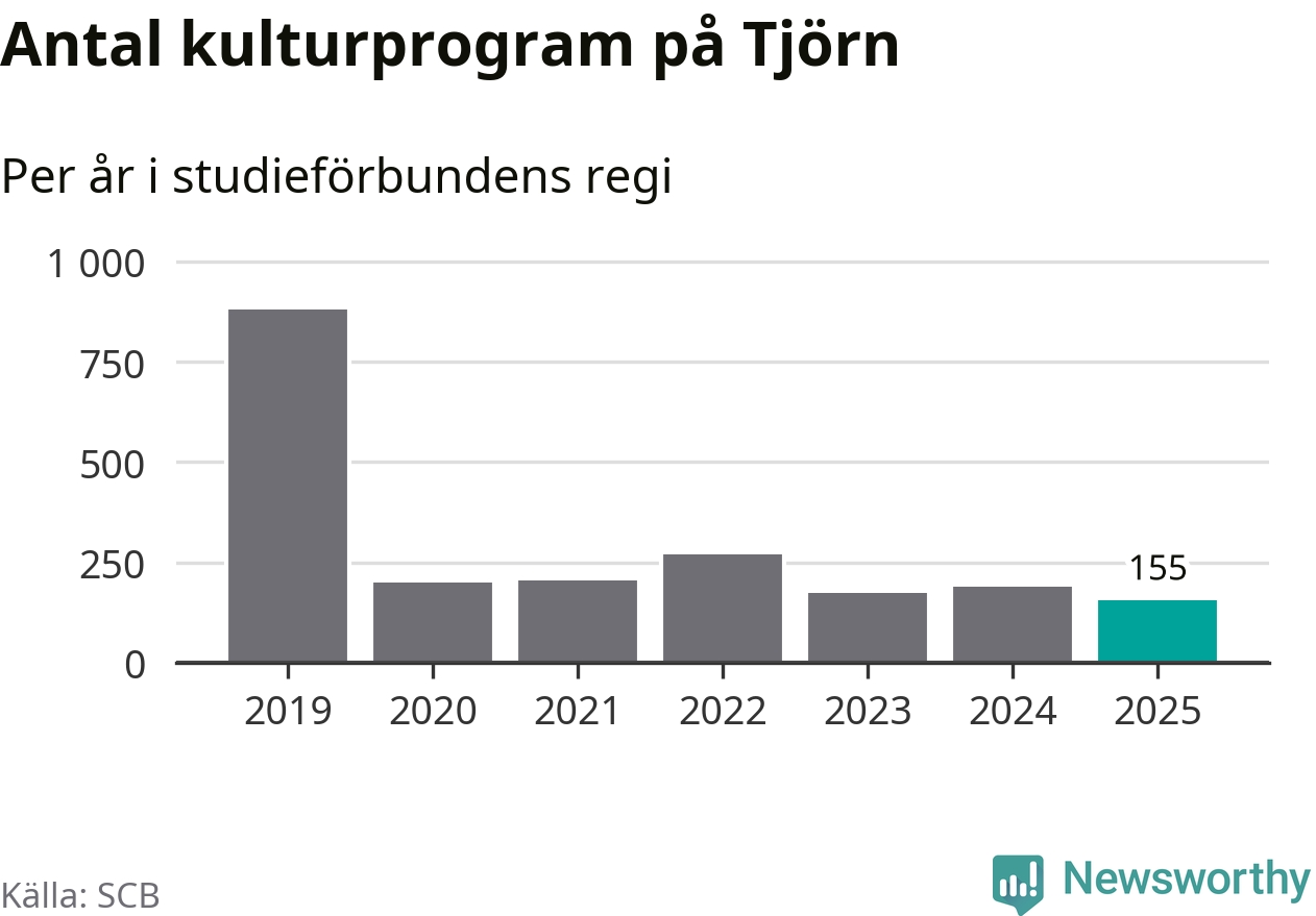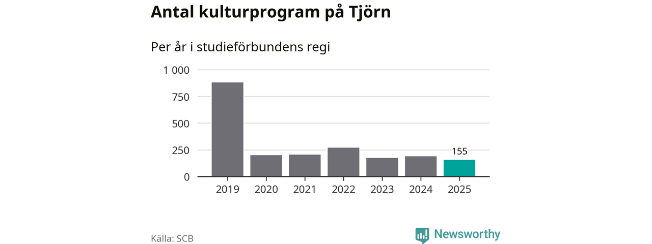 Utvecklingen ser ungefär likadan ut på Tjörn, förra året hade studieförbunden omkring 4 900 studietimmar i kommunen jämfört med omkring 5 100 året innan, en minskning med fyra procent. Även antalet kulturprogram i studieförbundens regi minskade, från 190 till 155 stycken.