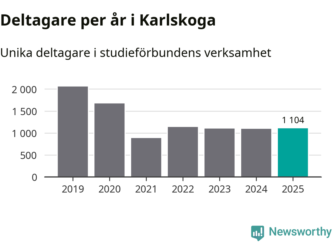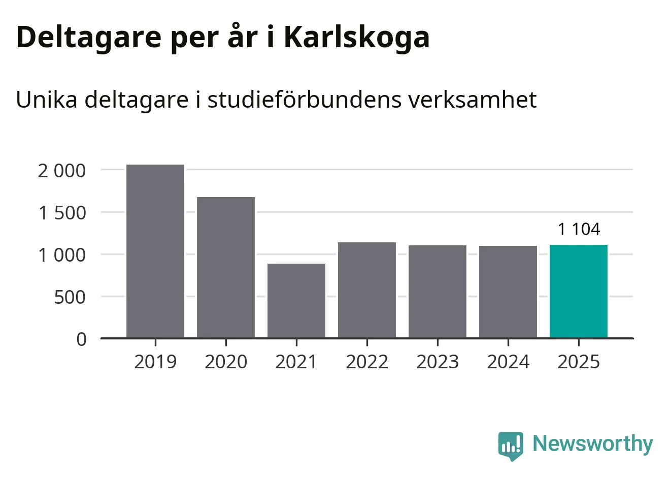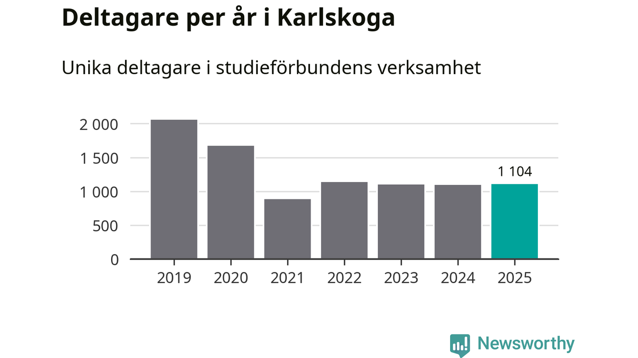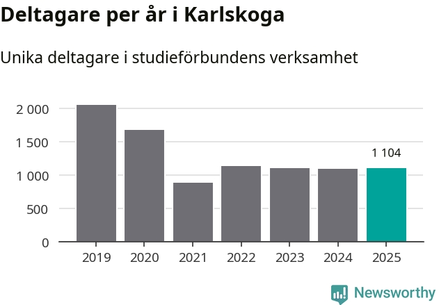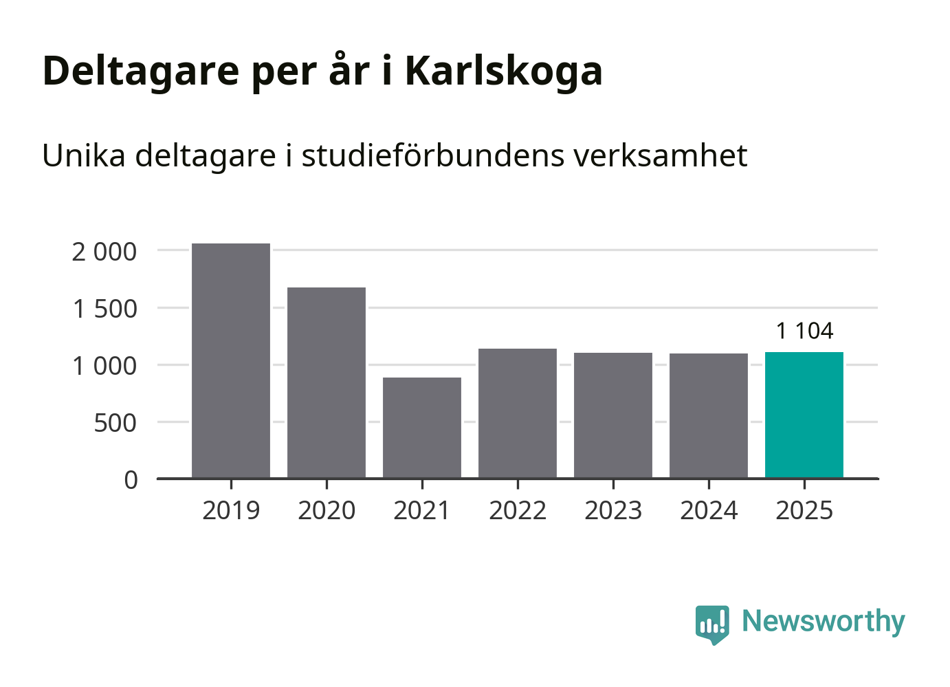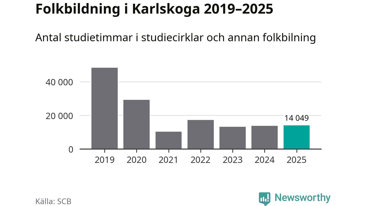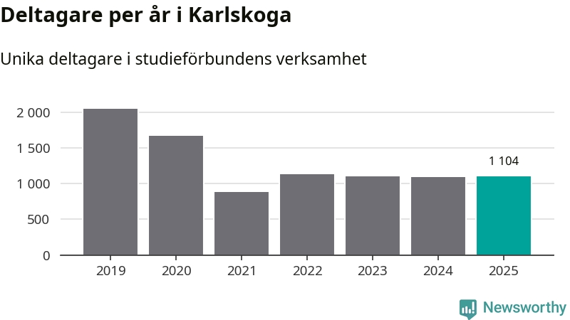 Omkring 1 100 Karlskoga­bor deltog i någon form av folkbildning under 2025, vilket är ungefär lika många som året innan. Det innebär att fyra procent av befolkningen i kommunen deltog i studieförbundens verksamhet under 2025, vilket är lägre än rikssnittet.