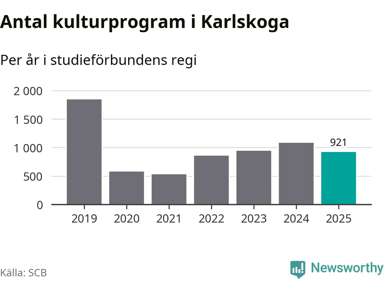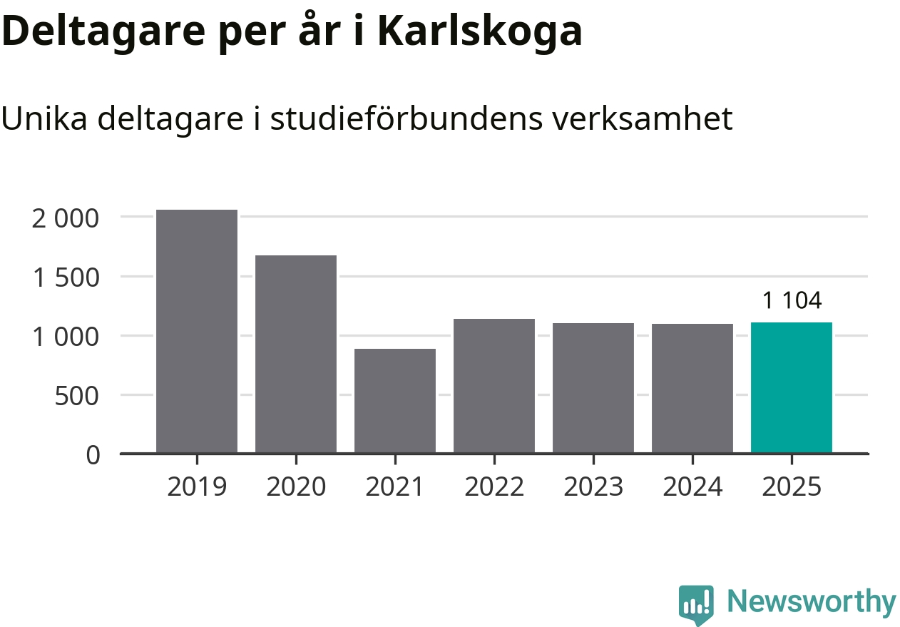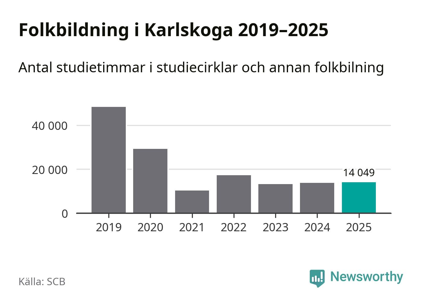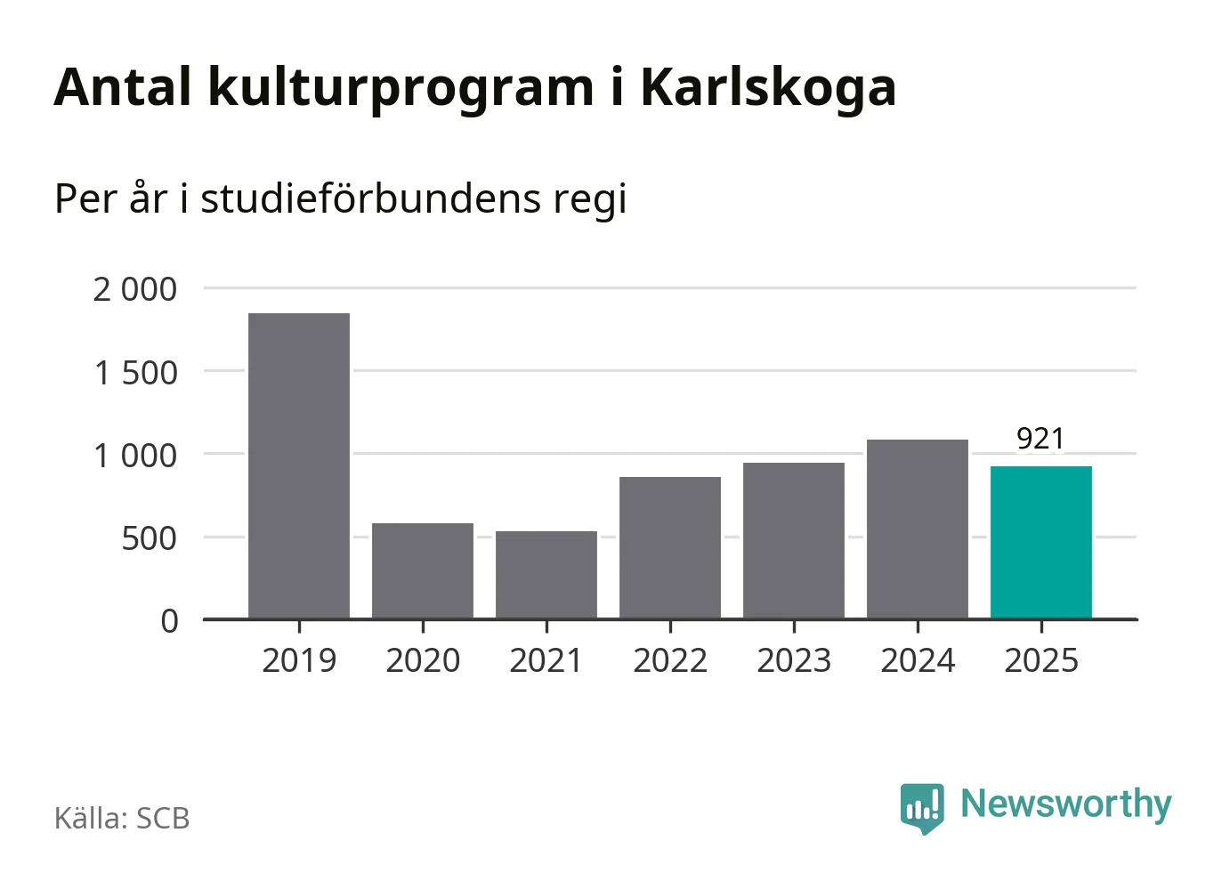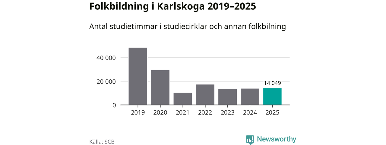 Omkring 1 100 Karlskoga­bor deltog i någon form av folkbildning under 2025, vilket är ungefär lika många som året innan. Det innebär att fyra procent av befolkningen i kommunen deltog i studieförbundens verksamhet under 2025, vilket är lägre än rikssnittet.