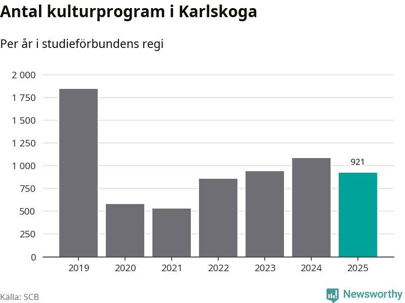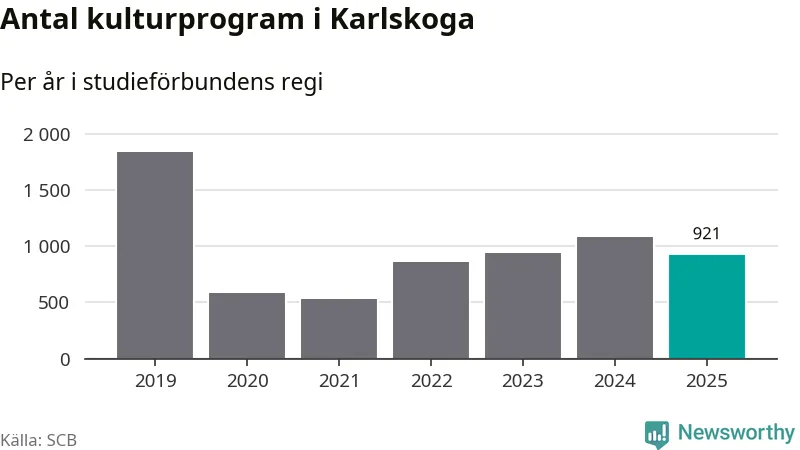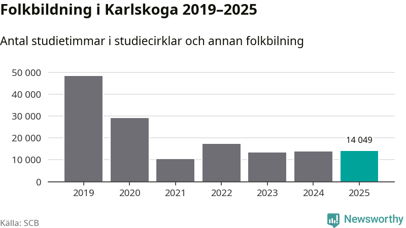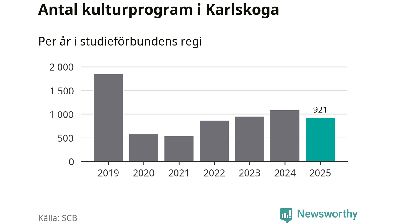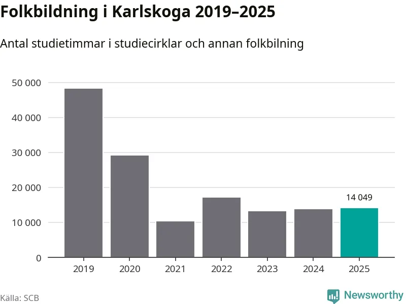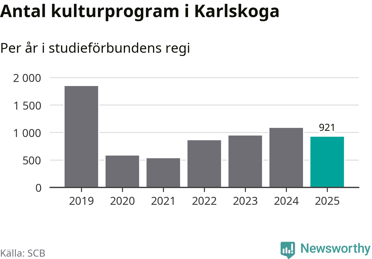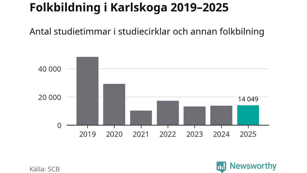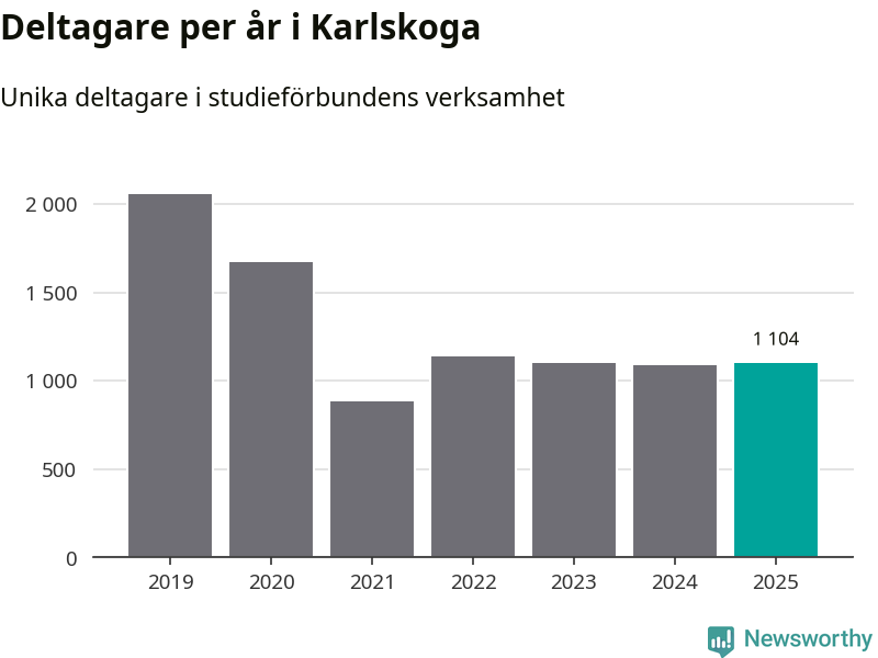 Omkring 1 100 Karlskoga­bor deltog i någon form av folkbildning under 2025, vilket är ungefär lika många som året innan. Det innebär att fyra procent av befolkningen i kommunen deltog i studieförbundens verksamhet under 2025, vilket är lägre än rikssnittet.