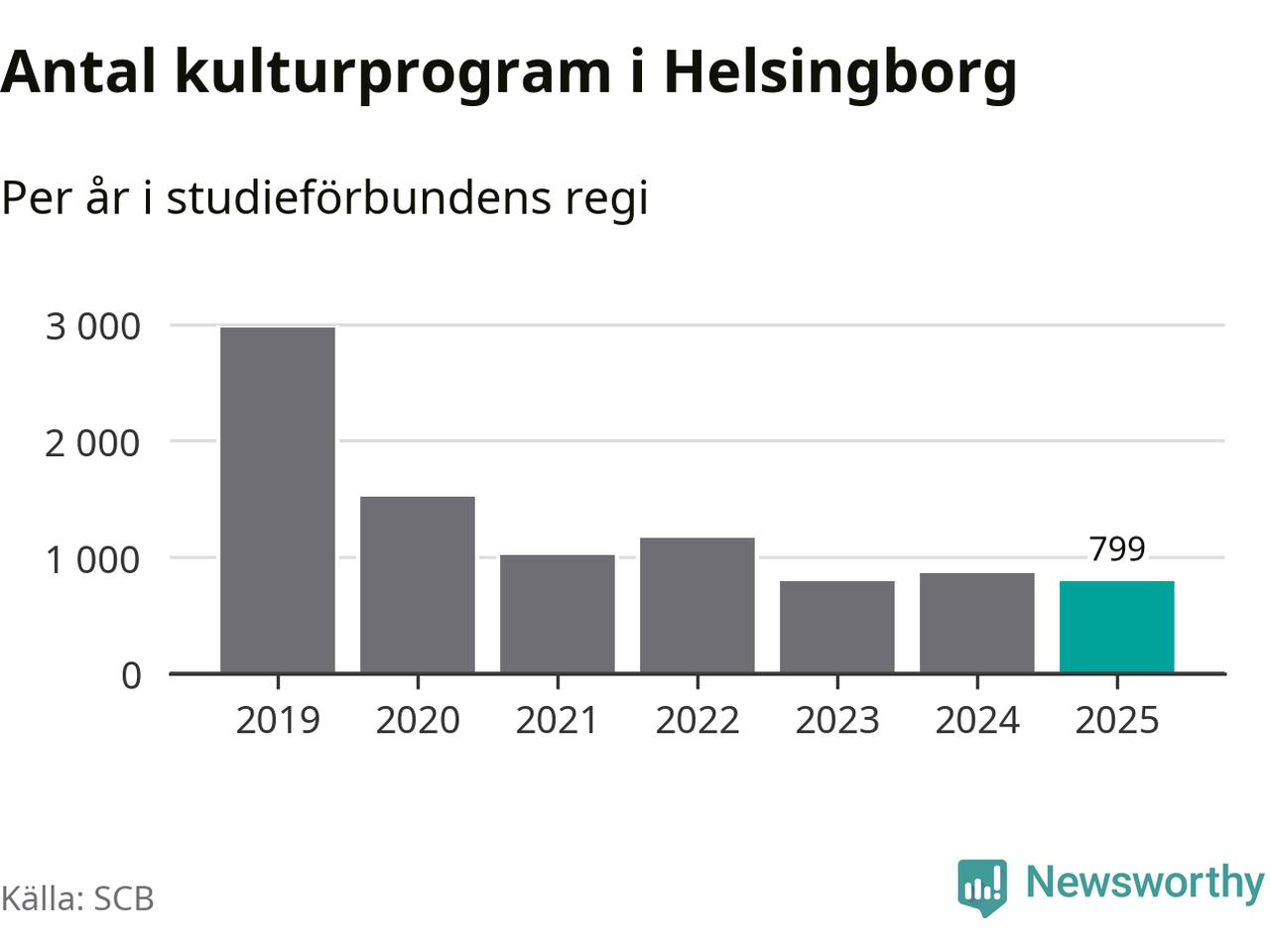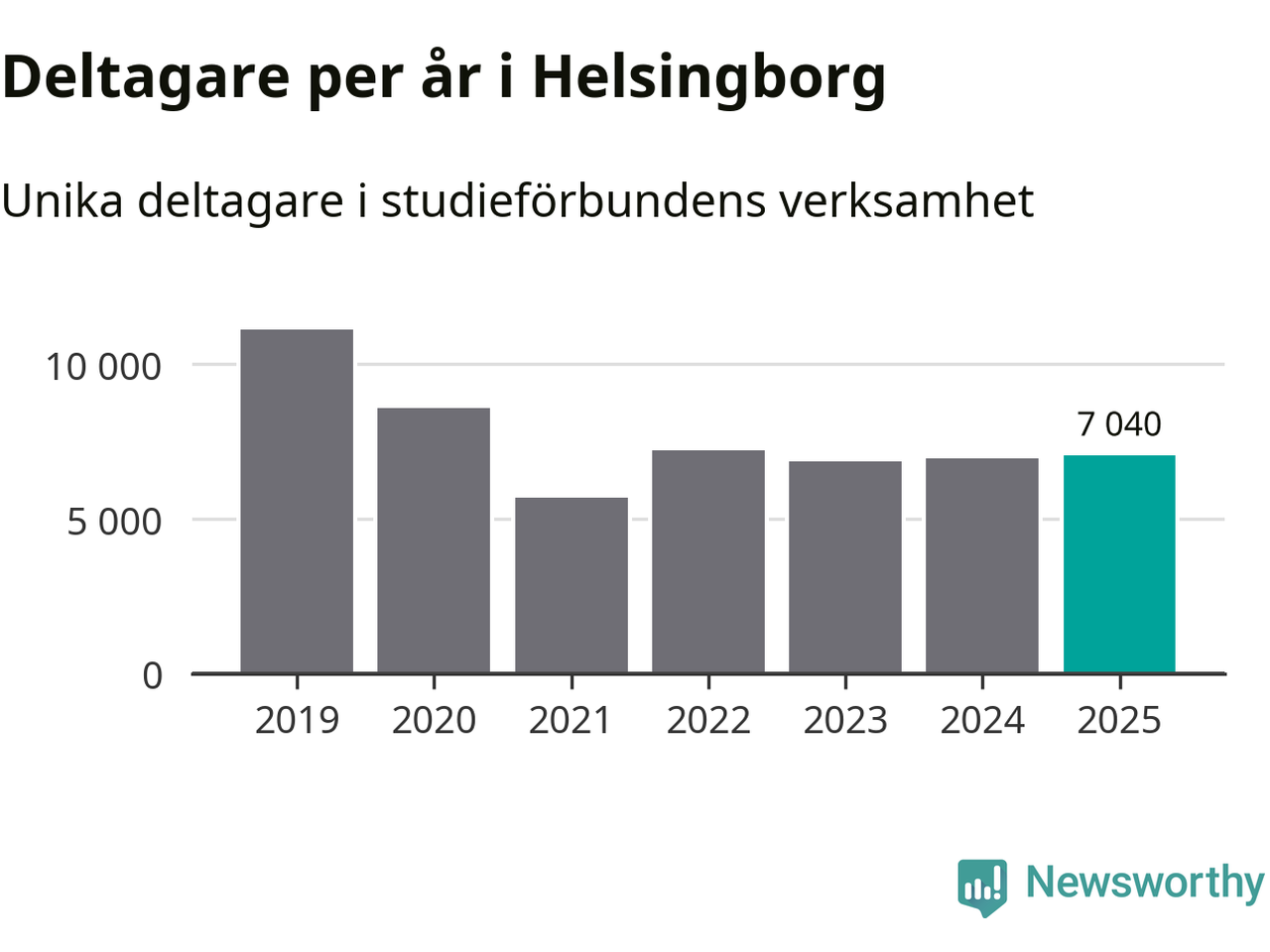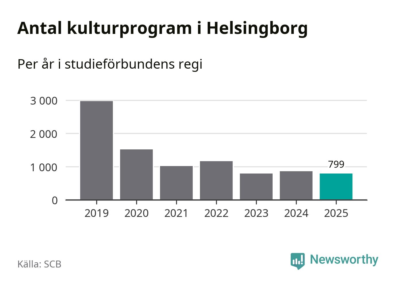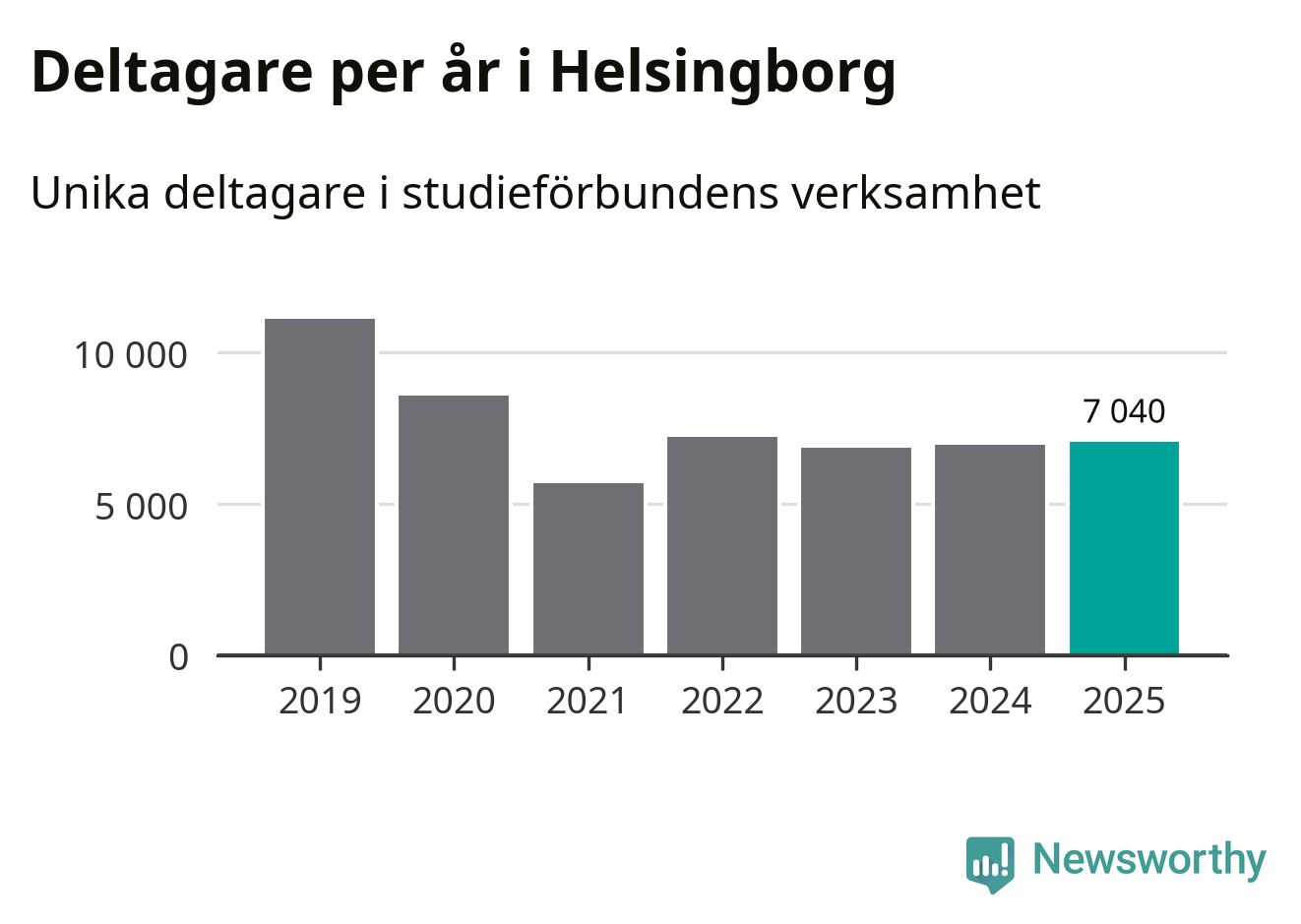Omkring 7 000 helsingborgare deltog i någon form av folkbildning under 2025, vilket är ungefär lika många som året innan. Det innebär att fem procent av befolkningen i kommunen deltog i studieförbundens verksamhet under 2025, vilket är ungefär som rikssnittet.
