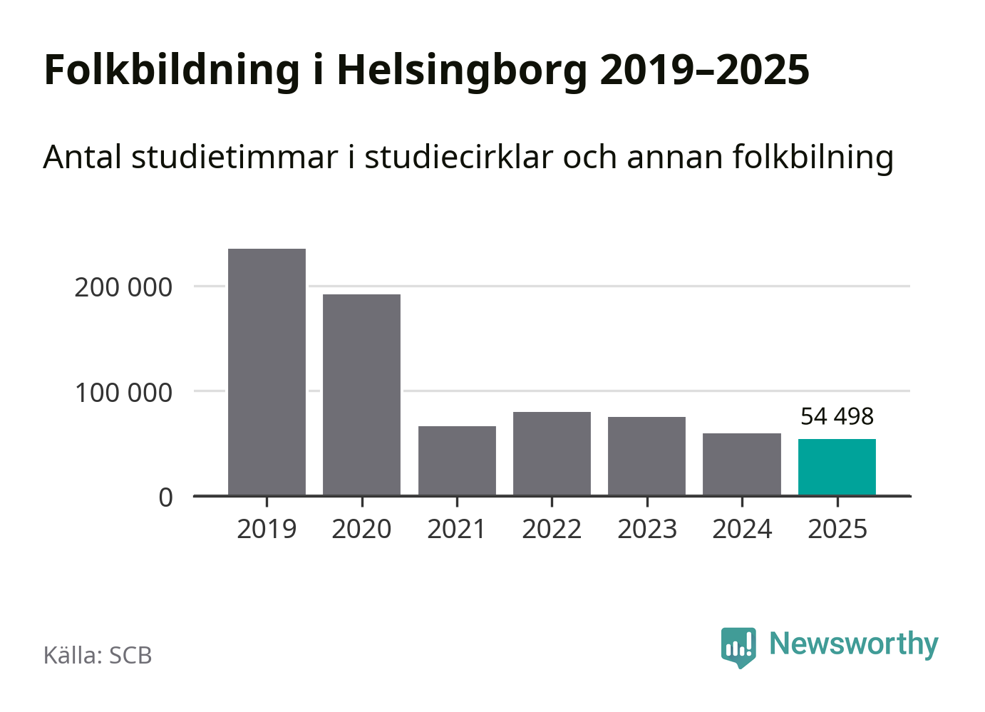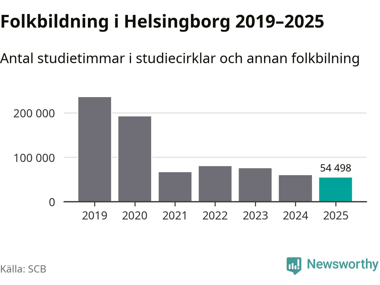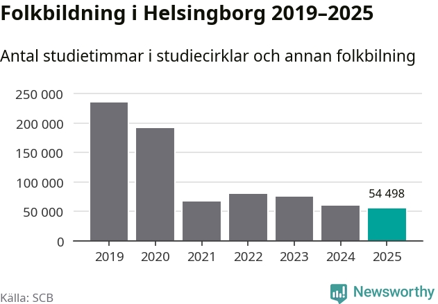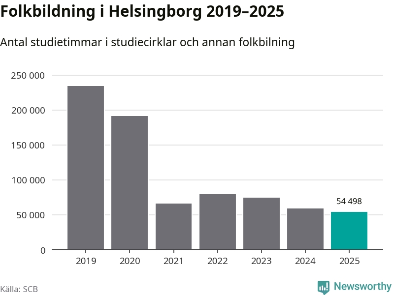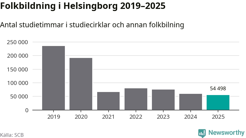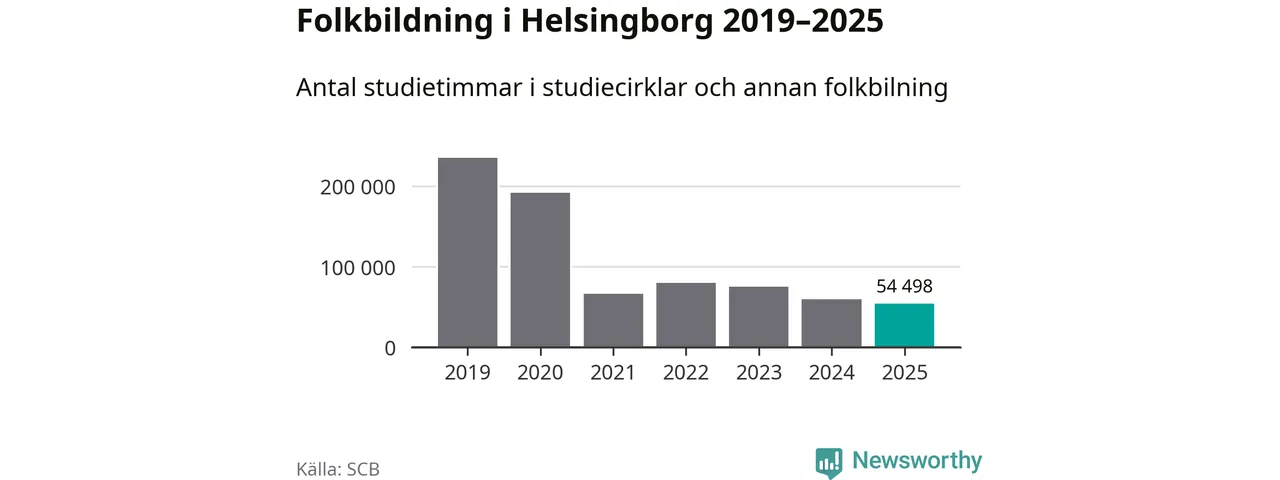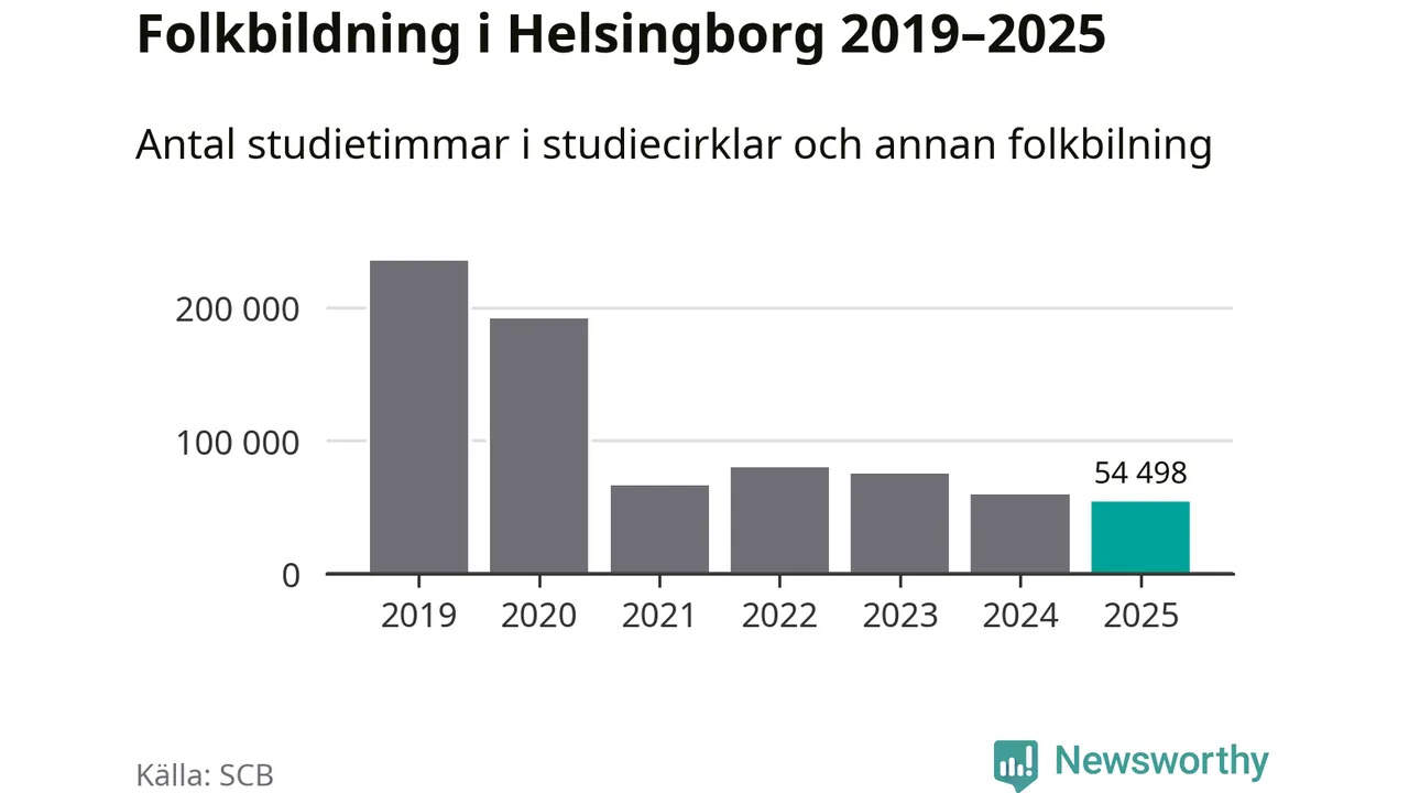 Studieförbunden drabbades hårt av pandemin. Även i Helsingborg noterades det lägsta antalet studietimmar under 2021, som då var 72 procent färre än 2019 – vilket fortfarande är fler än 2025.