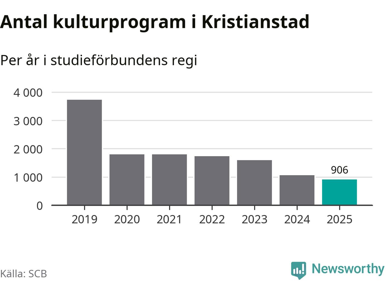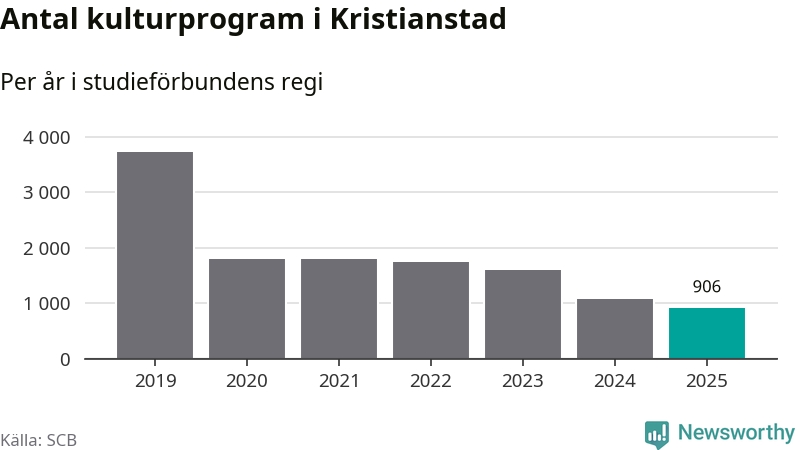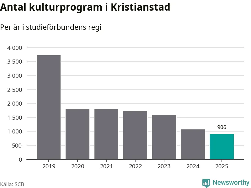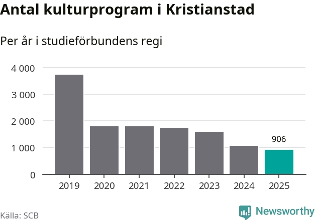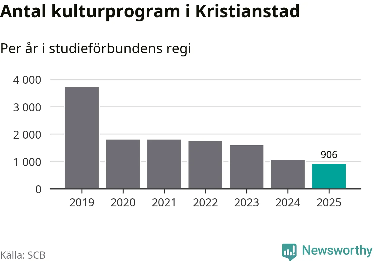 I Kristianstad är antalet studietimmar nästan lika många som året innan medan antalet kulturarrangemang i studieförbundens regi minskade.