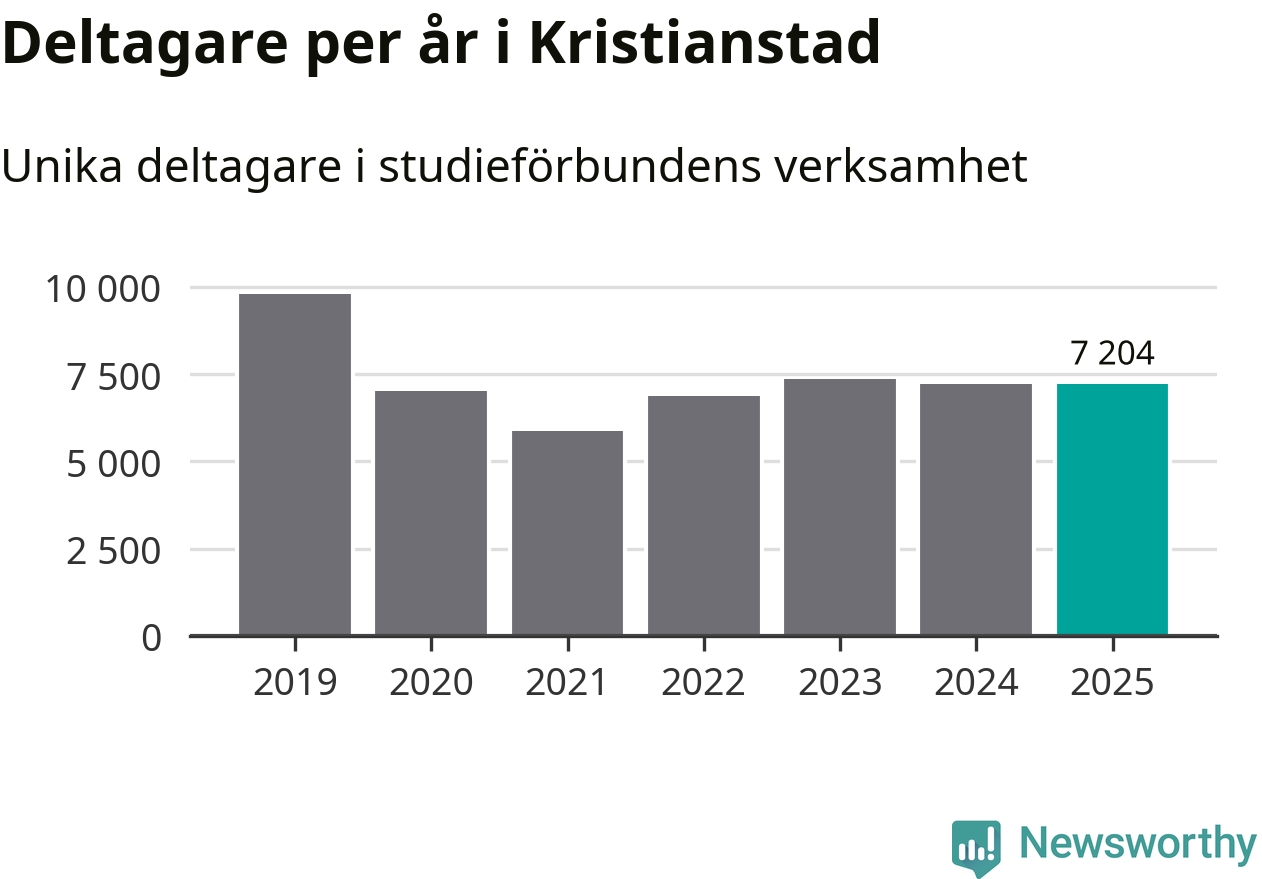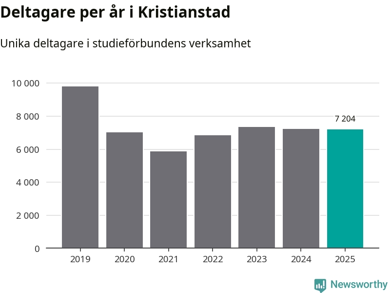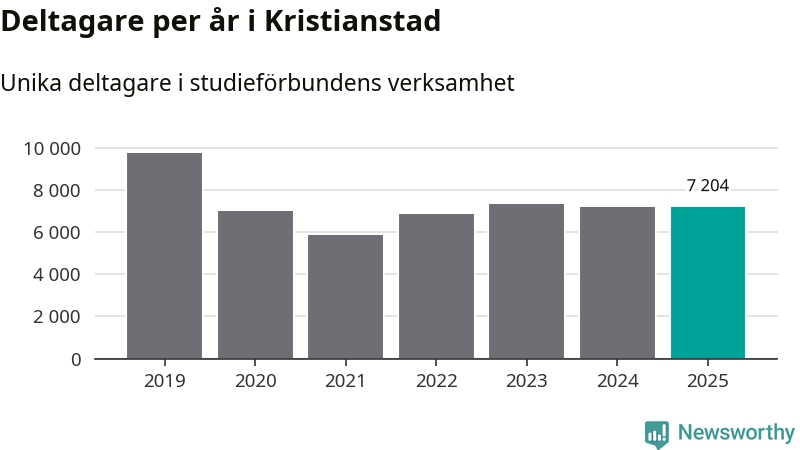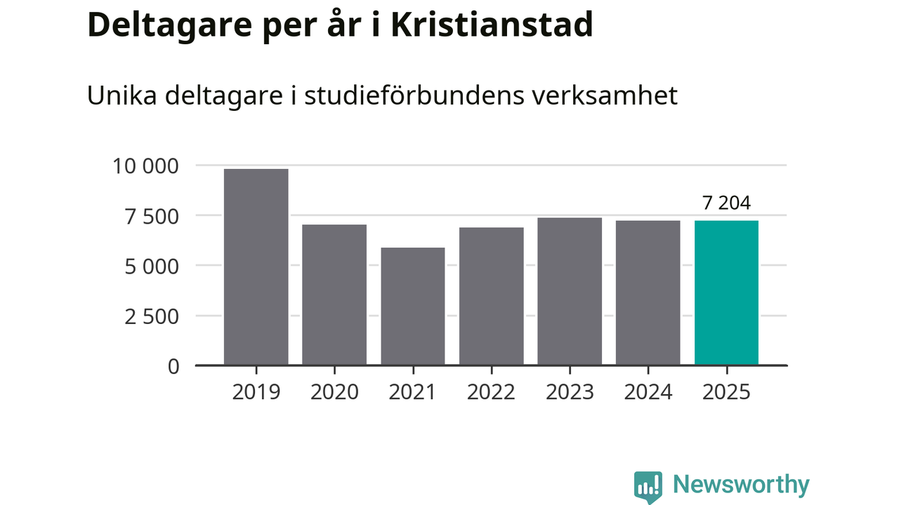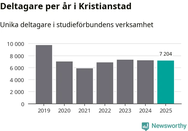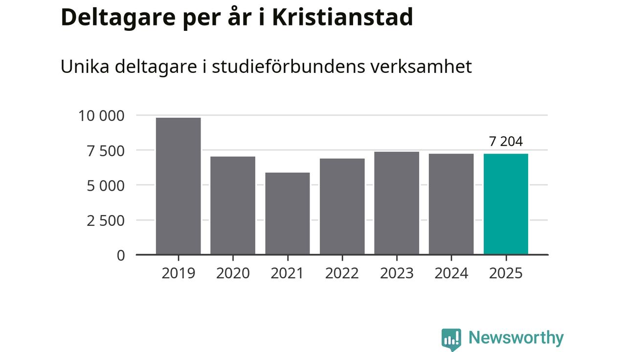 Omkring 7 200 Kristianstads­bor deltog i någon form av folkbildning under 2025, vilket är ungefär lika många som året innan. Det innebär att åtta procent av befolkningen i kommunen deltog i studieförbundens verksamhet under 2025, vilket är högre än rikssnittet.