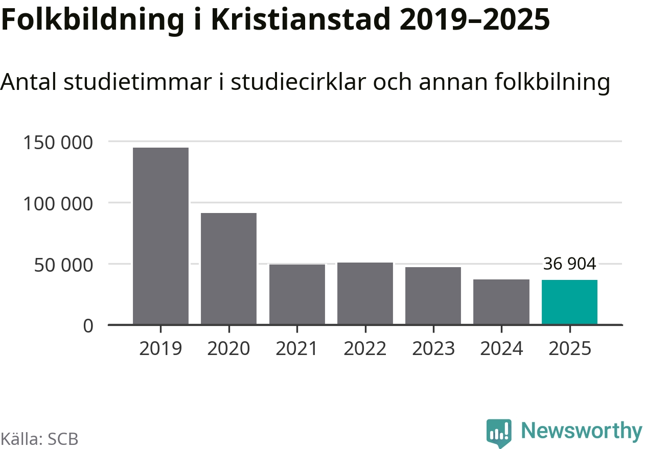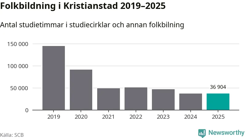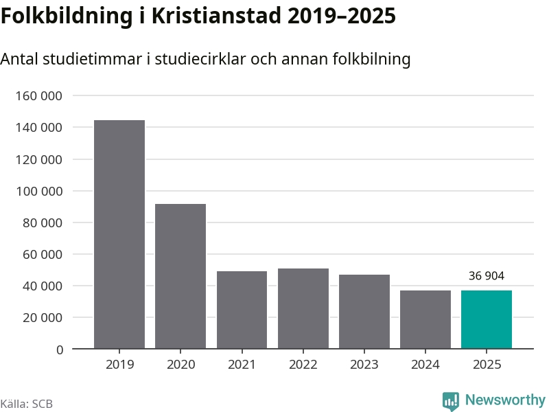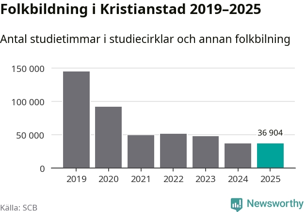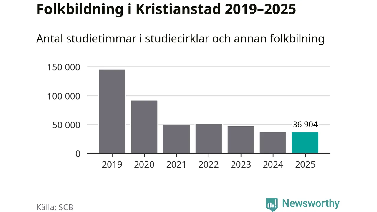 Studieförbunden drabbades hårt av pandemin. Även i Kristianstad noterades det lägsta antalet studietimmar under 2021, som då var 66 procent färre än 2019 – vilket fortfarande är fler än 2025.