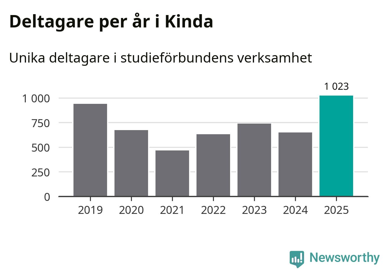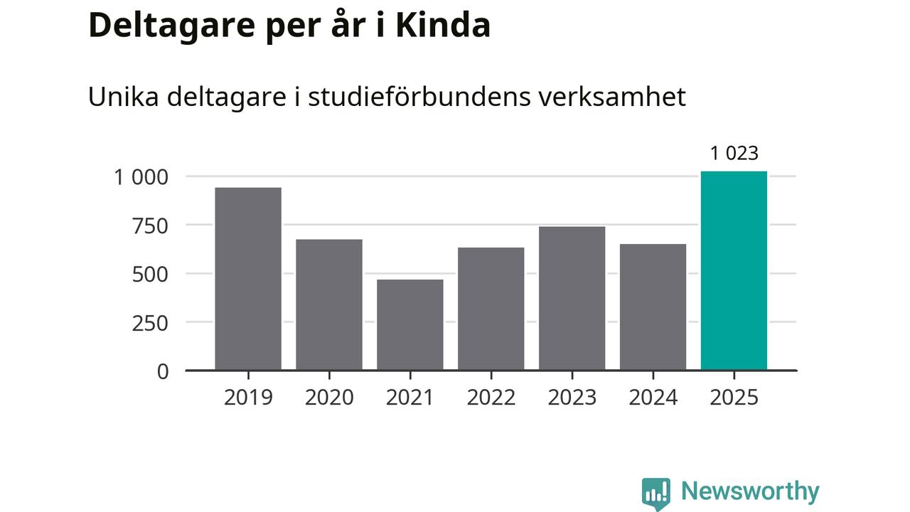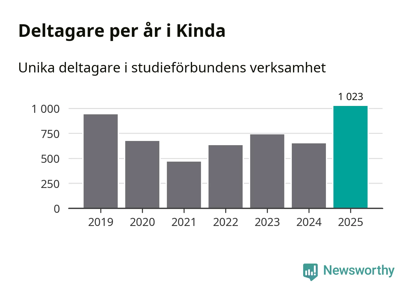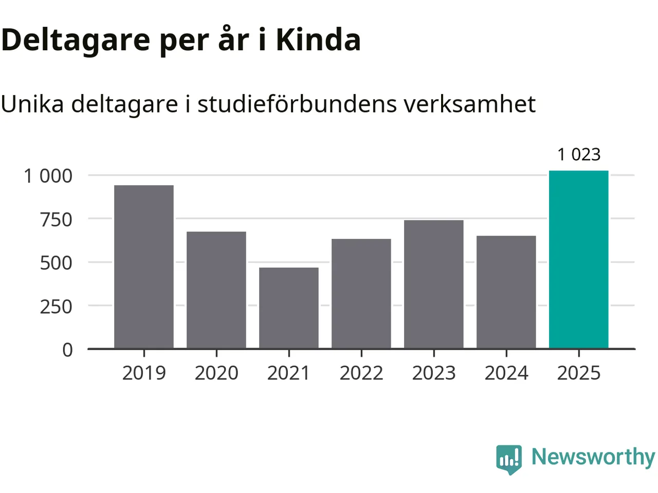 Antalet unika deltagare ökade i Kinda i fjol: från 650 till 1 023 personer. Det innebär att var tionde invånare i kommunen deltog i studieförbundens verksamhet under 2025. Det är den näst högsta andelen i Östergötland.