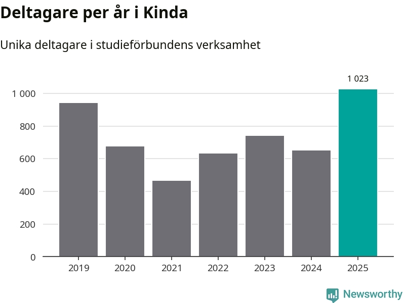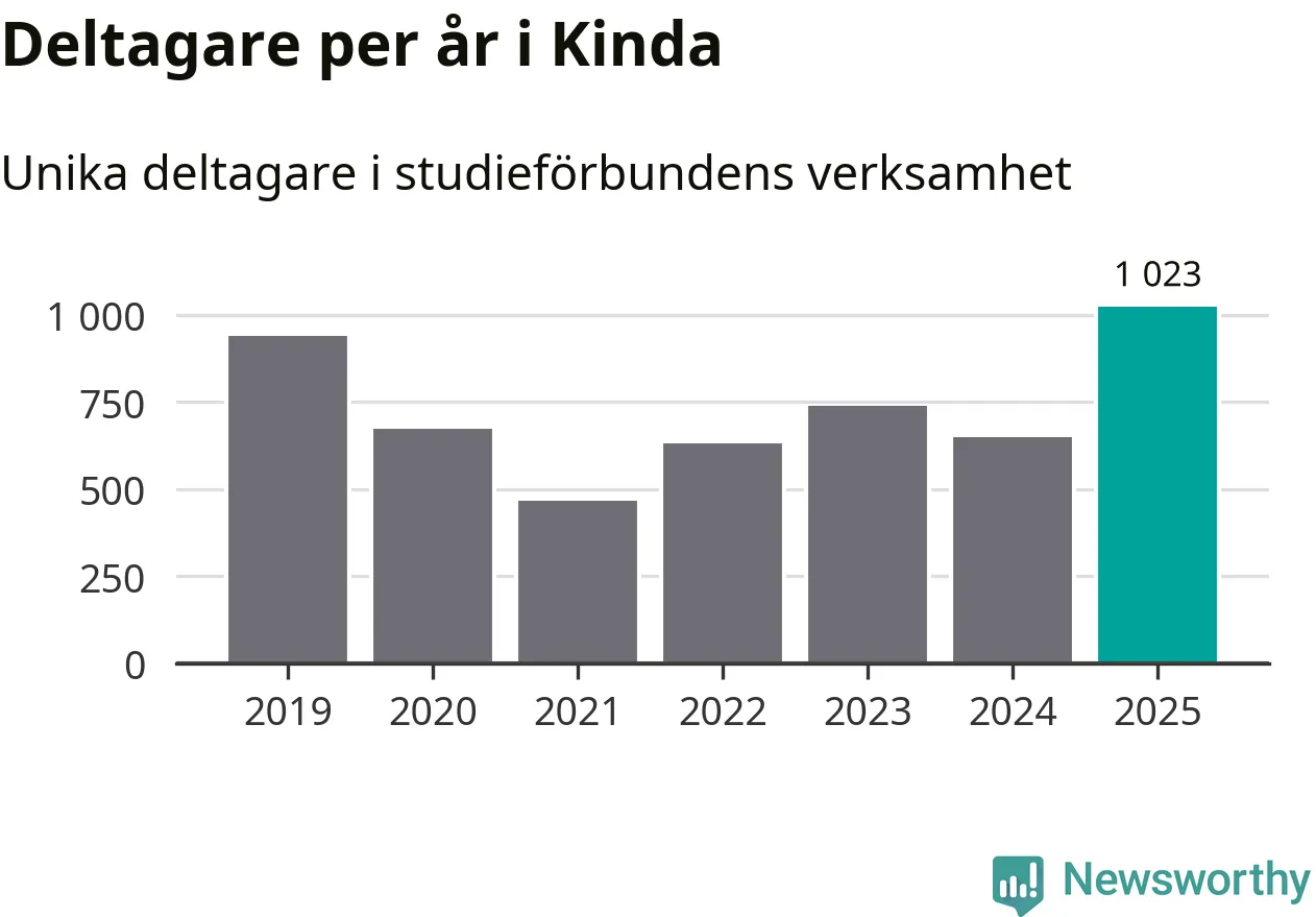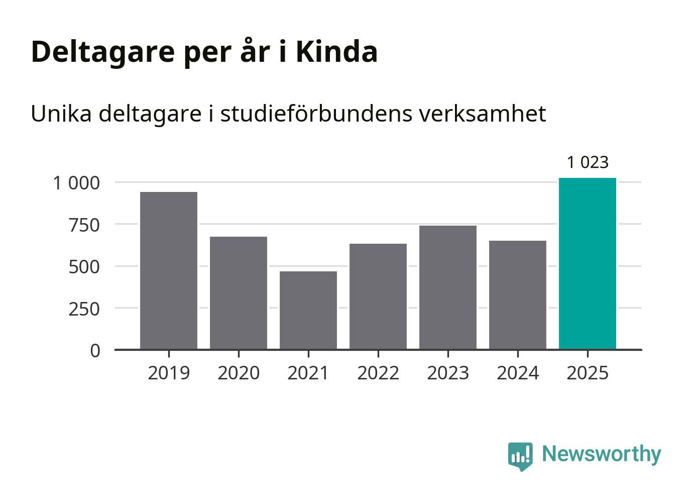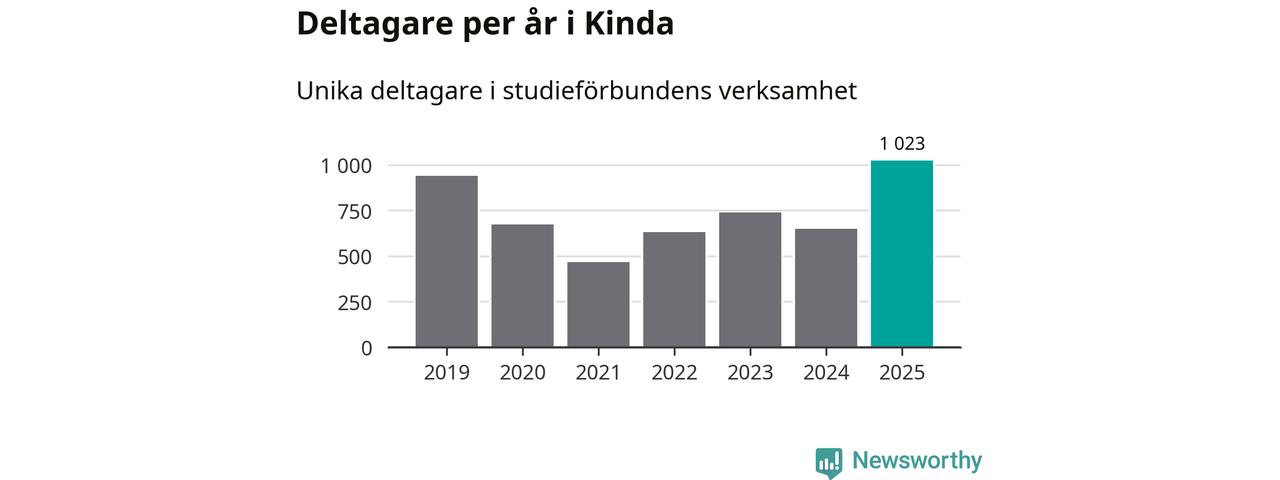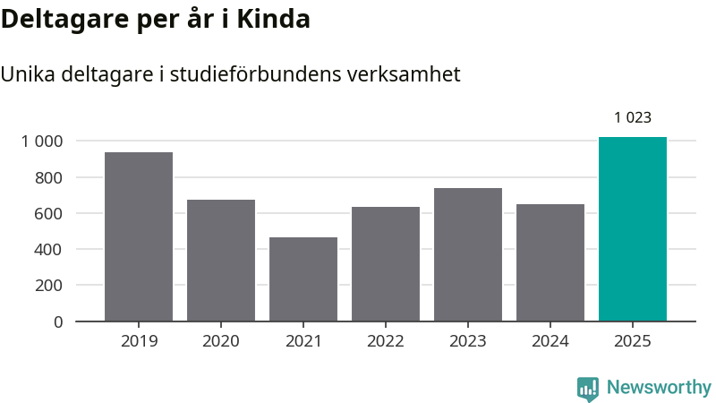 Antalet unika deltagare ökade i Kinda i fjol: från 650 till 1 023 personer. Det innebär att var tionde invånare i kommunen deltog i studieförbundens verksamhet under 2025. Det är den näst högsta andelen i Östergötland.