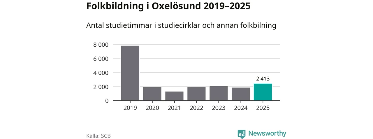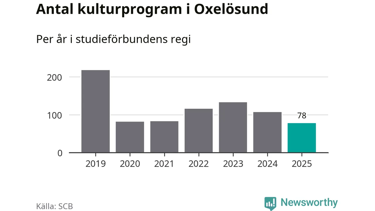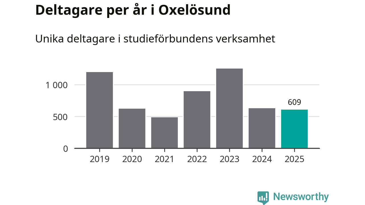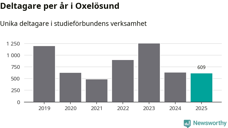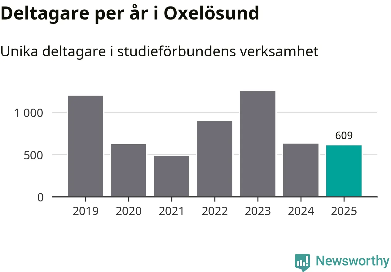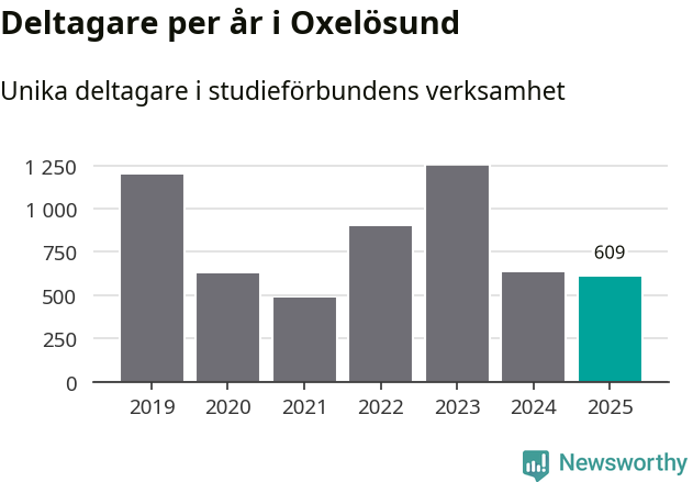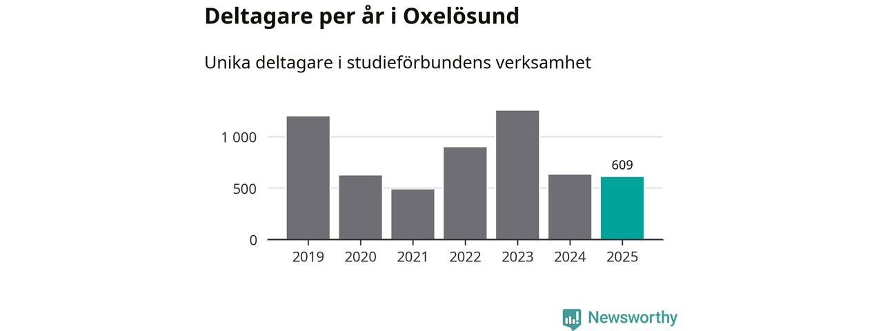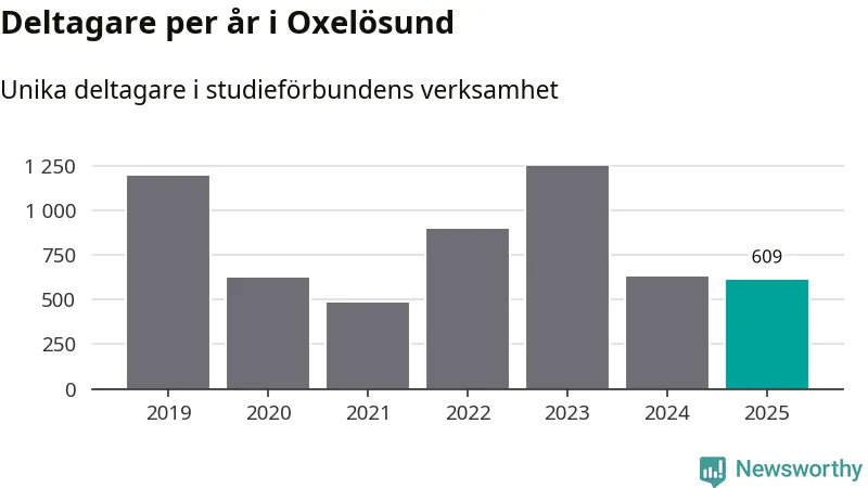 Sett till unika deltagare är folkbildningen på tillbakagång i Oxelösund. 2025 deltog 609 personer i studieförbundens verksamhet, vilket är en minskning med tre procent jämfört med året innan. Det innebär att fem procent av befolkningen i kommunen deltog i studieförbundens verksamhet under 2025, vilket är ungefär som rikssnittet.