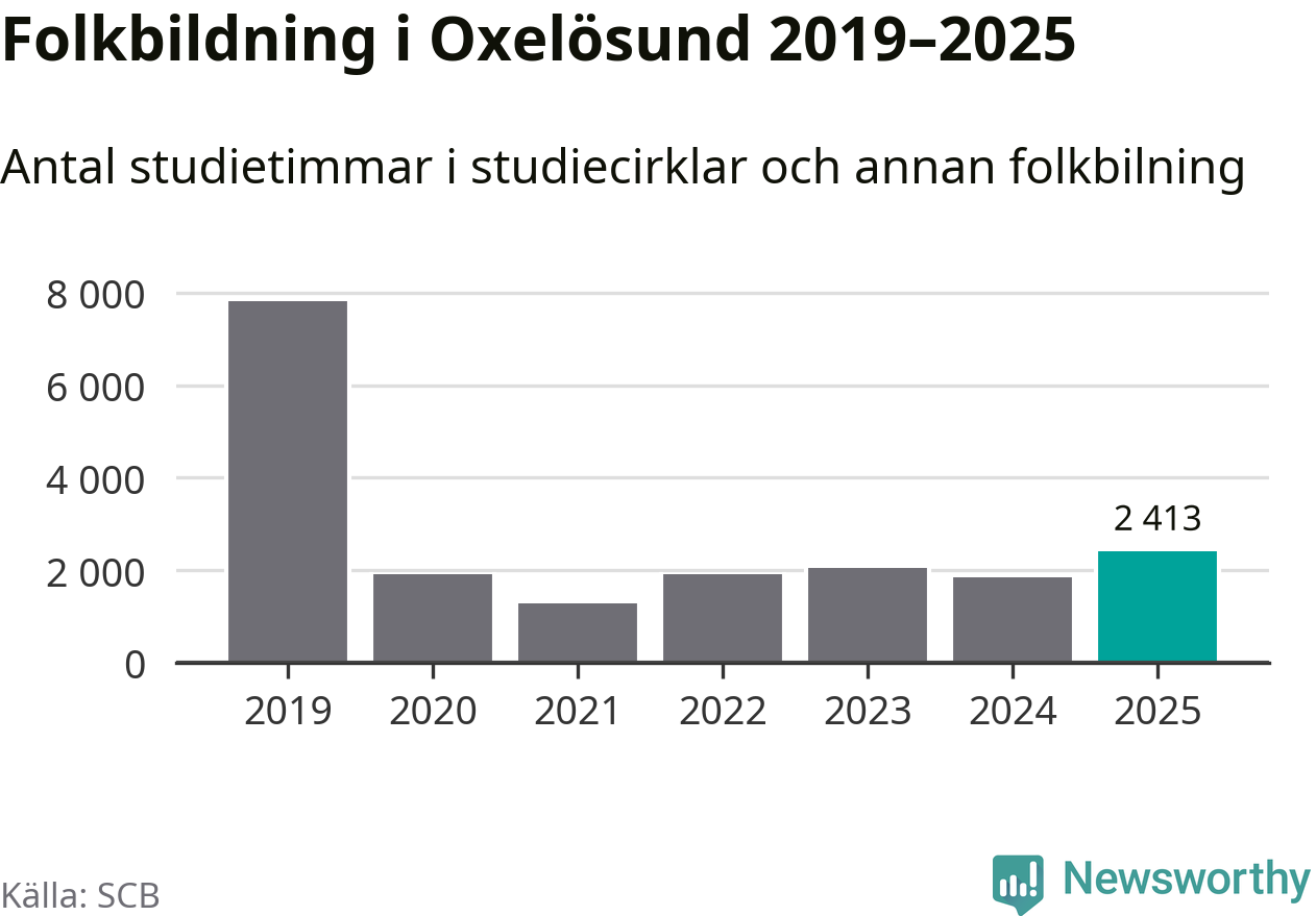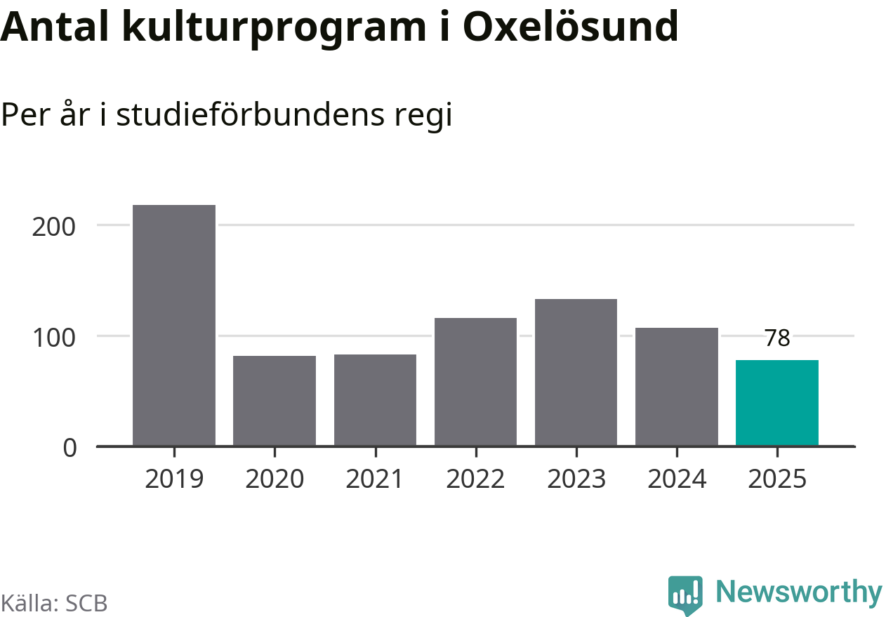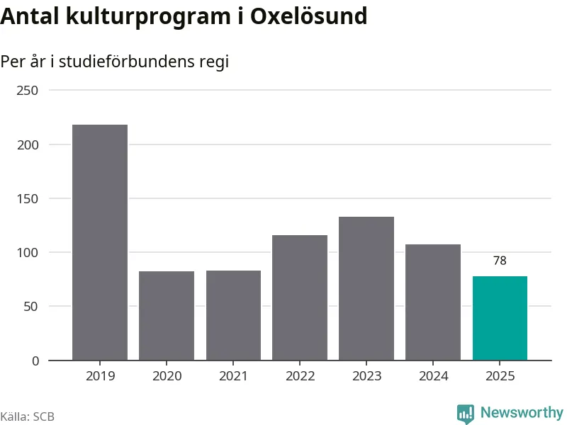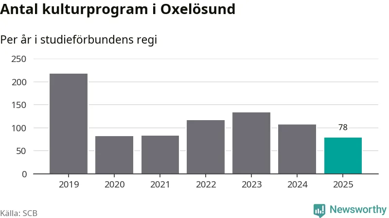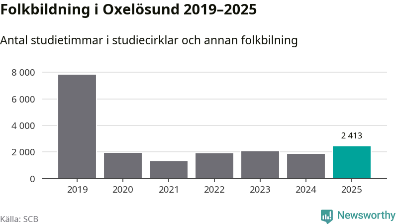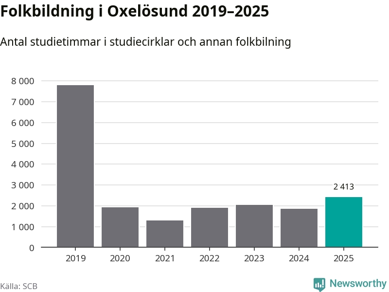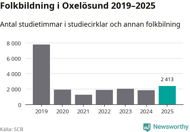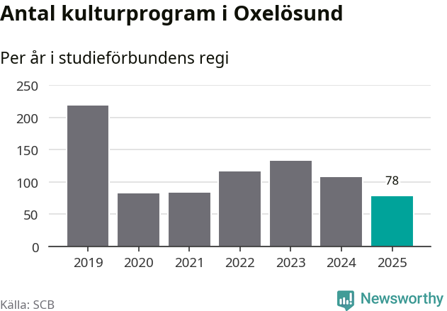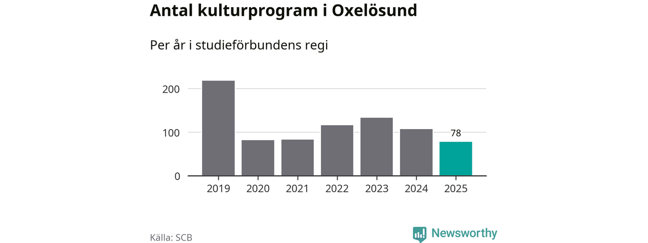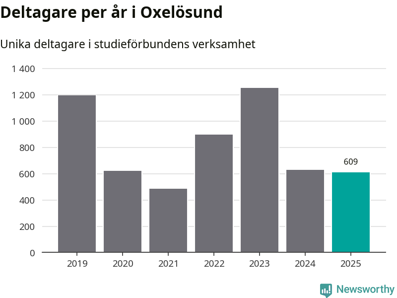 Sett till unika deltagare är folkbildningen på tillbakagång i Oxelösund. 2025 deltog 609 personer i studieförbundens verksamhet, vilket är en minskning med tre procent jämfört med året innan. Det innebär att fem procent av befolkningen i kommunen deltog i studieförbundens verksamhet under 2025, vilket är ungefär som rikssnittet.
