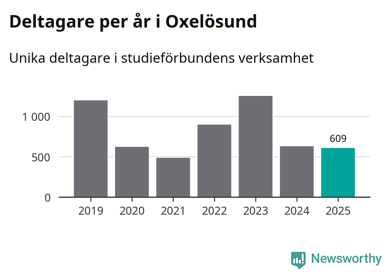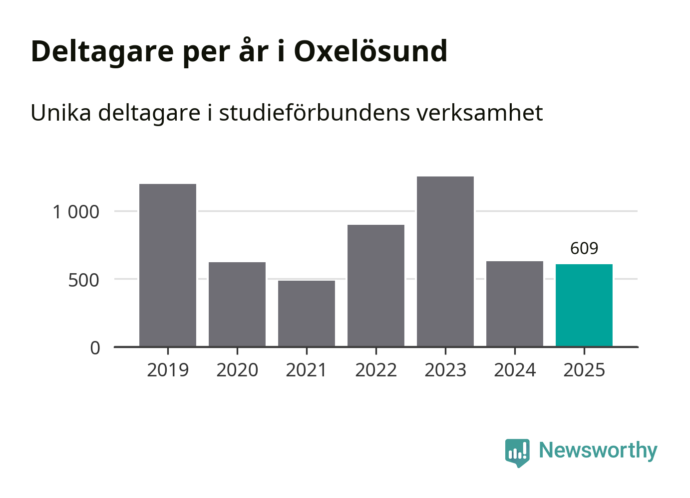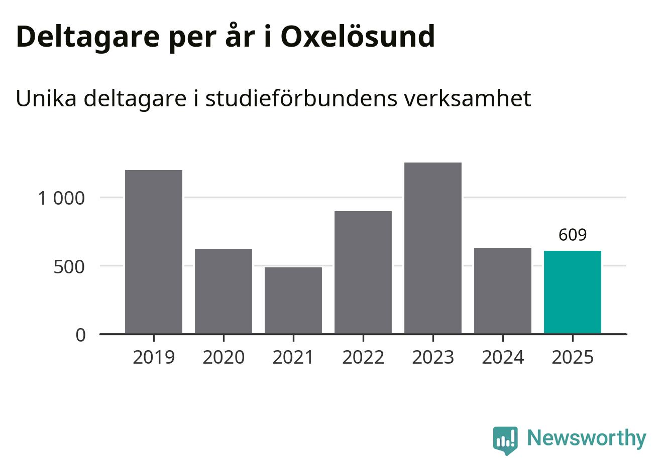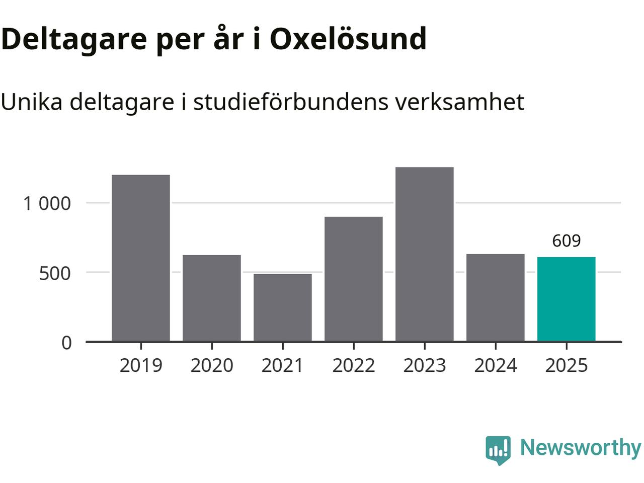 Sett till unika deltagare är folkbildningen på tillbakagång i Oxelösund. 2025 deltog 609 personer i studieförbundens verksamhet, vilket är en minskning med tre procent jämfört med året innan. Det innebär att fem procent av befolkningen i kommunen deltog i studieförbundens verksamhet under 2025, vilket är ungefär som rikssnittet.