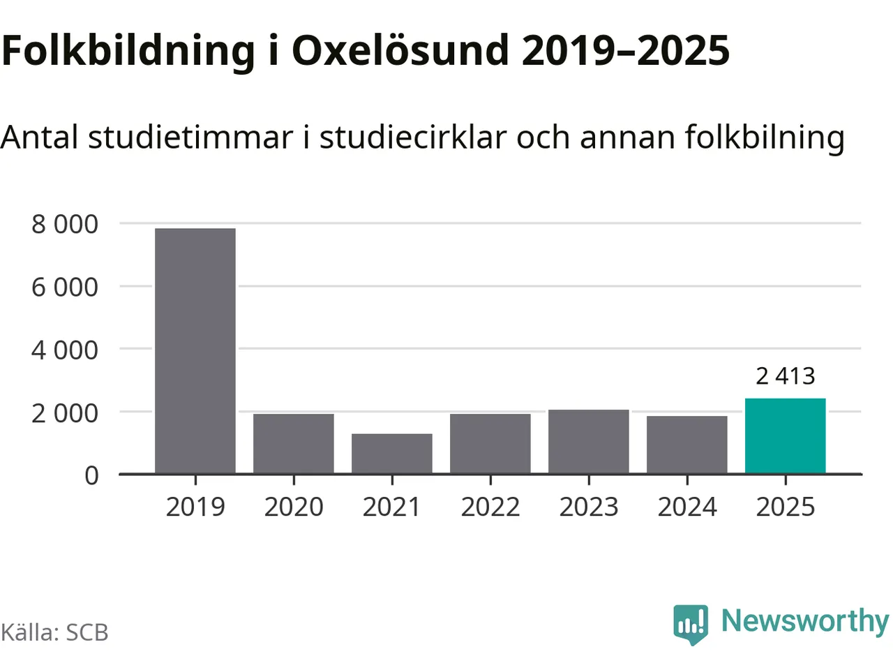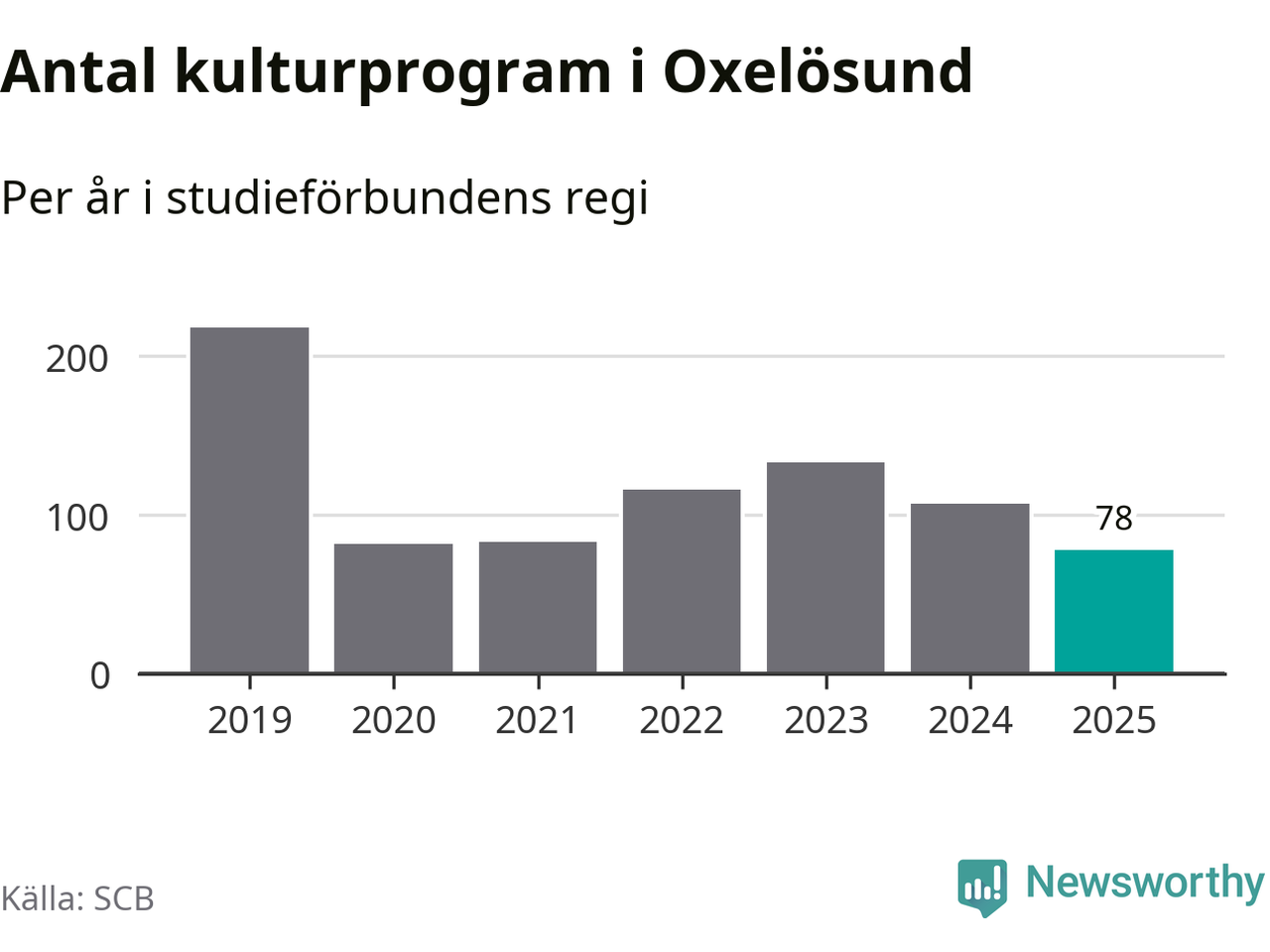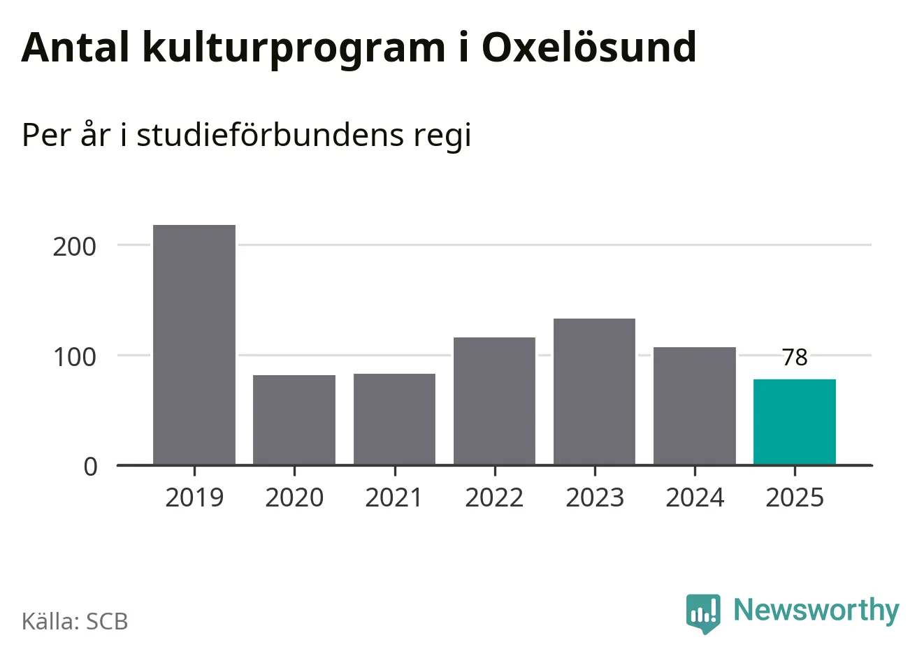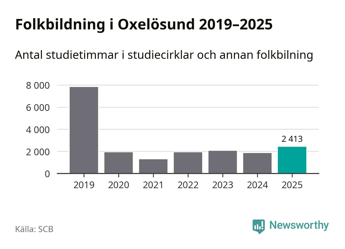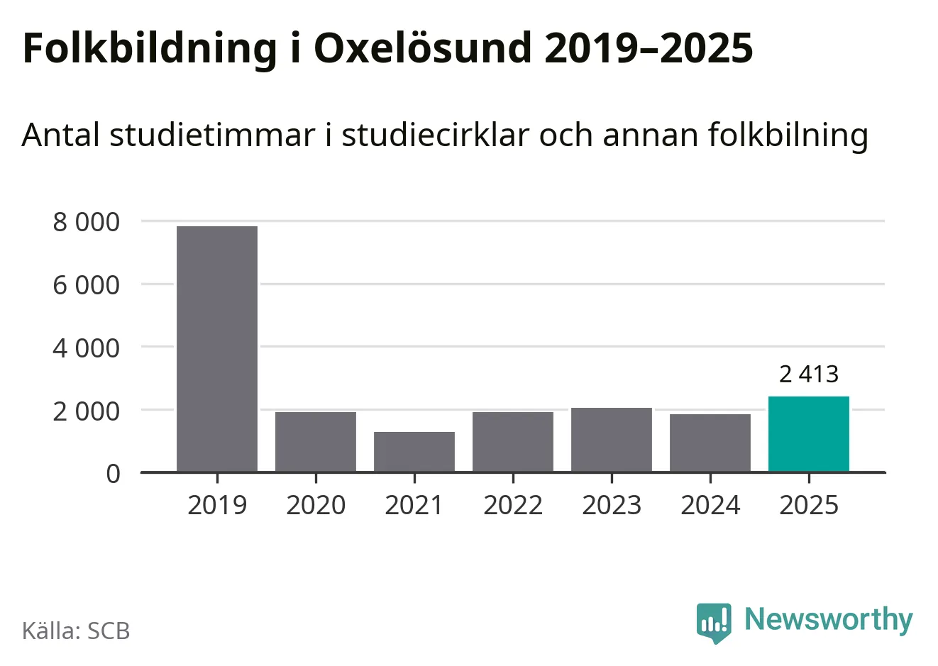 Sett till unika deltagare är folkbildningen på tillbakagång i Oxelösund. 2025 deltog 609 personer i studieförbundens verksamhet, vilket är en minskning med tre procent jämfört med året innan. Det innebär att fem procent av befolkningen i kommunen deltog i studieförbundens verksamhet under 2025, vilket är ungefär som rikssnittet.