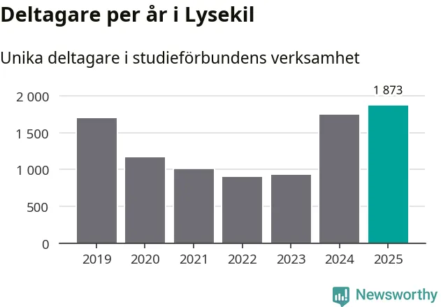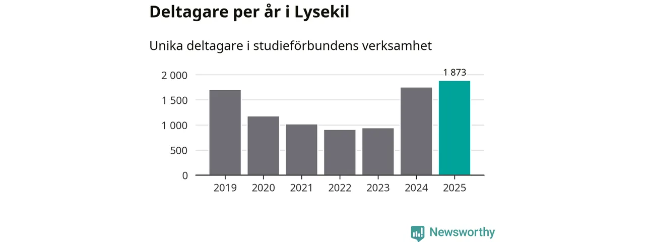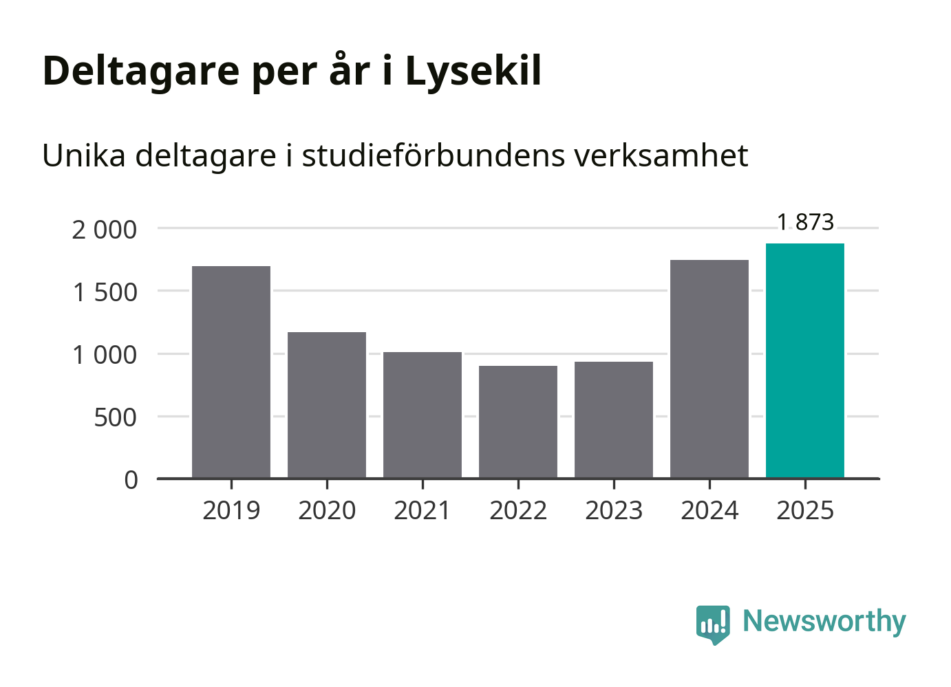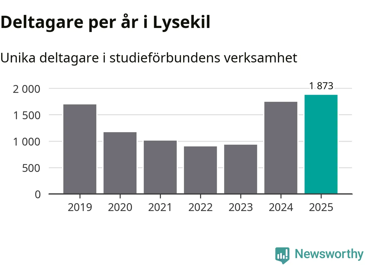 Antalet unika deltagare ökade i Lysekil i fjol: från 1 744 till 1 873 personer. Det innebär att 13 procent av befolkningen i kommunen deltog i studieförbundens verksamhet under 2025. Det är den näst högsta andelen i Västra Götaland.