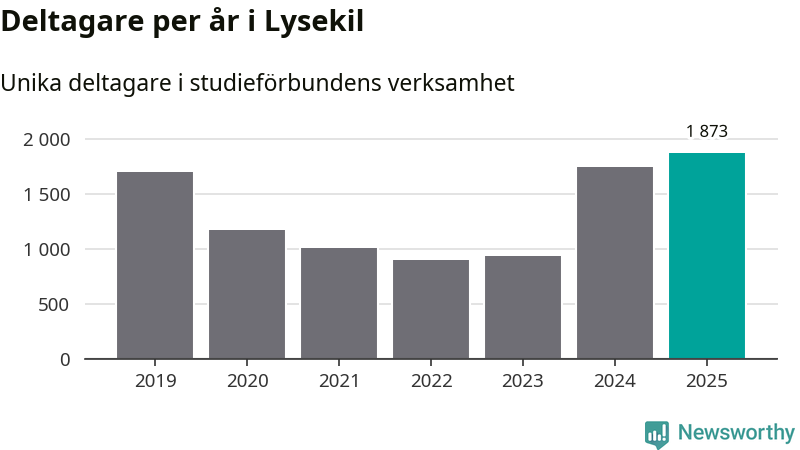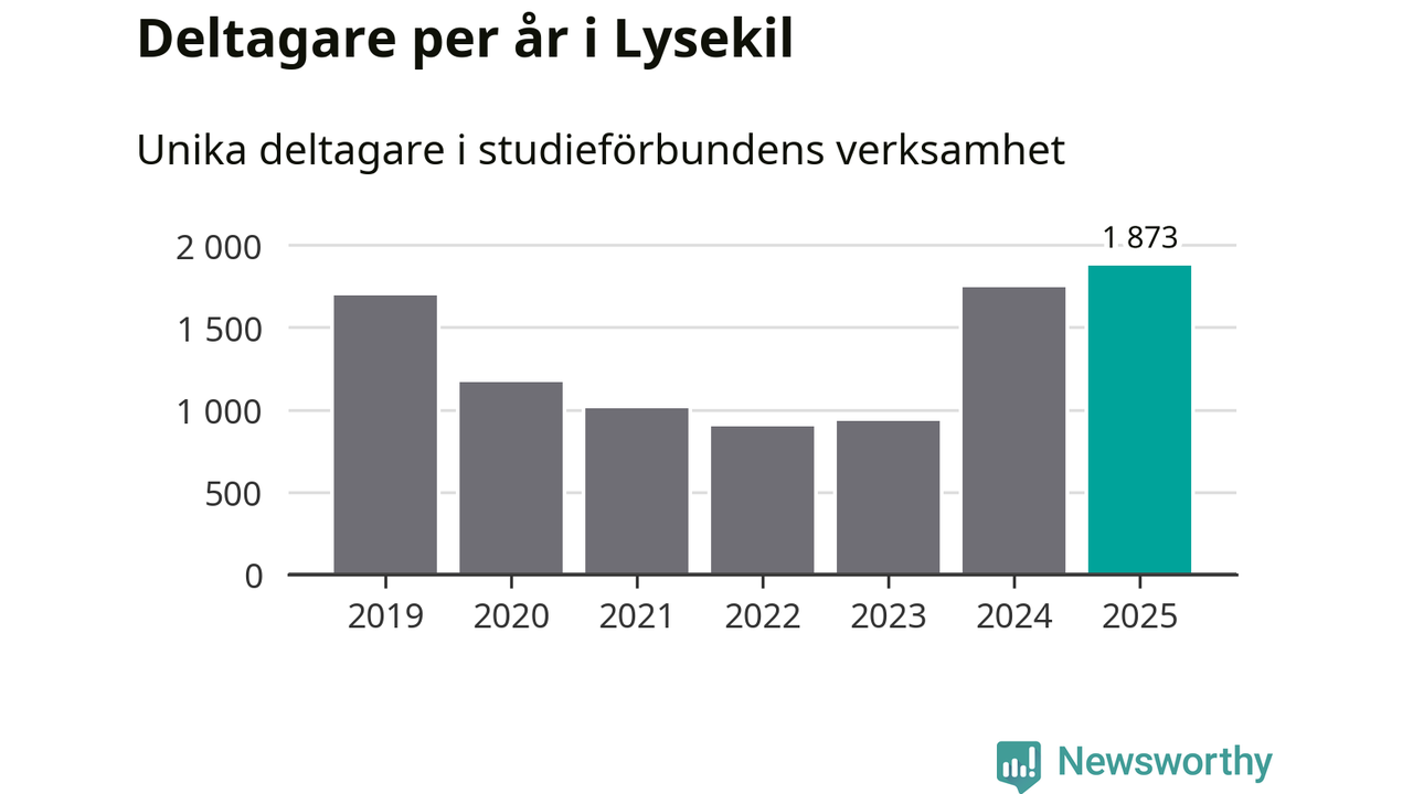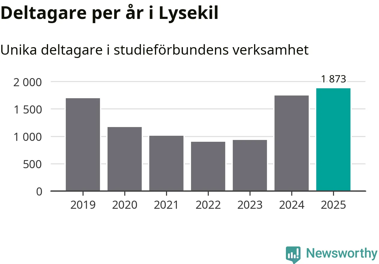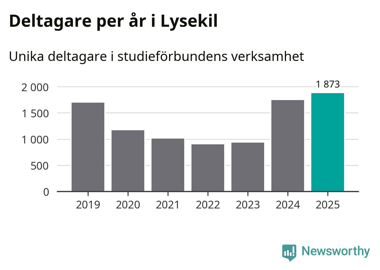 Antalet unika deltagare ökade i Lysekil i fjol: från 1 744 till 1 873 personer. Det innebär att 13 procent av befolkningen i kommunen deltog i studieförbundens verksamhet under 2025. Det är den näst högsta andelen i Västra Götaland.
