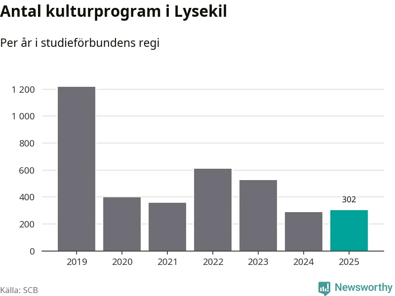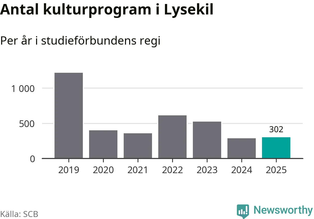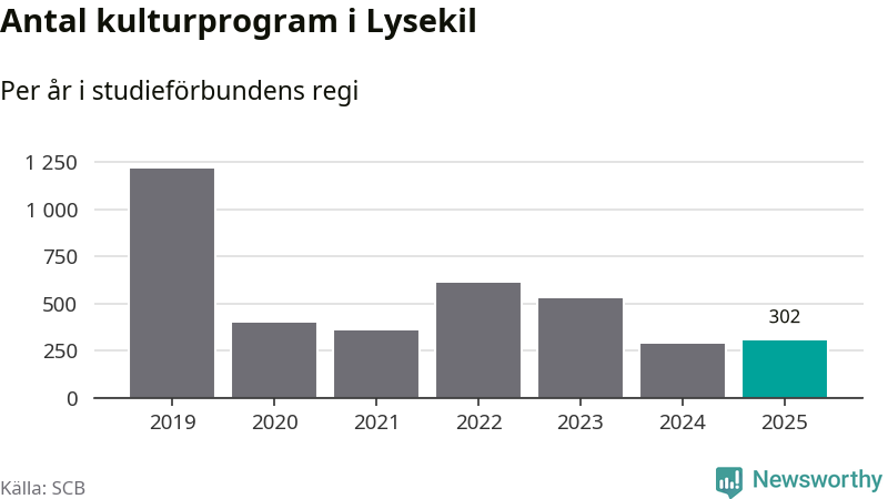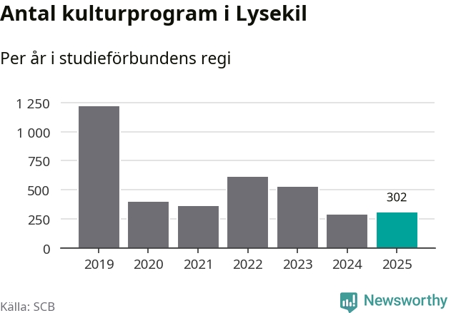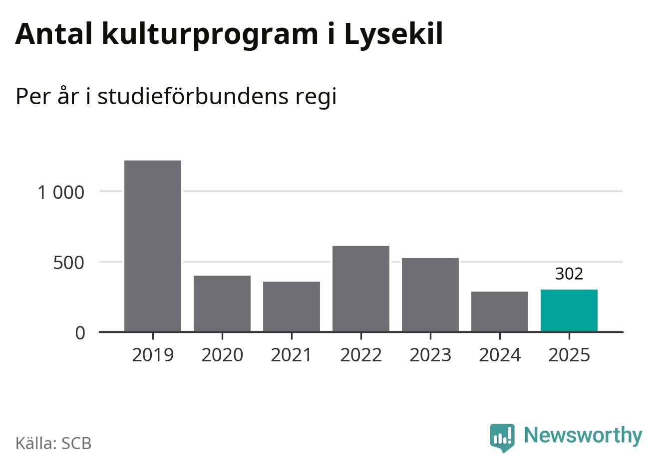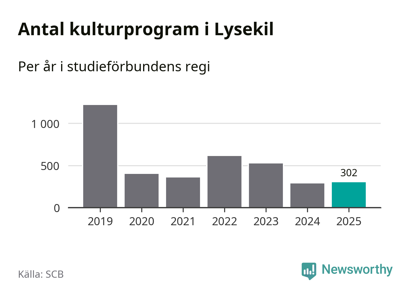 I Lysekil är antalet studietimmar nästan lika många som året innan och antalet kulturarrangemang i studieförbundens regi blev fler.