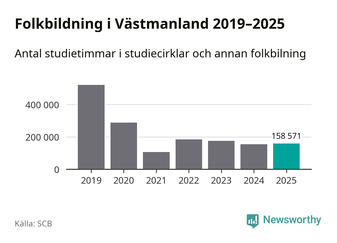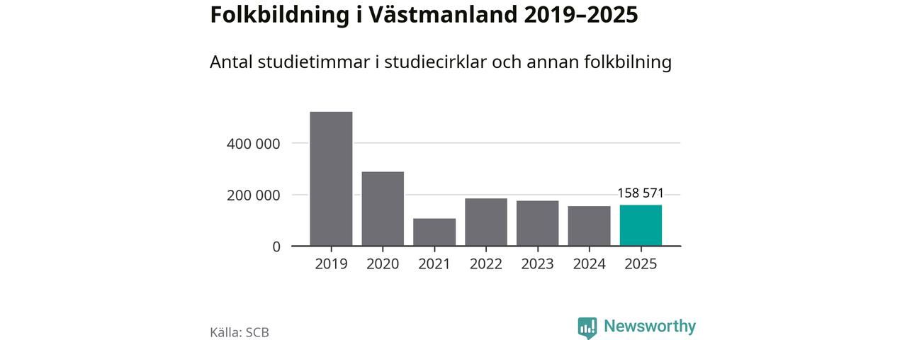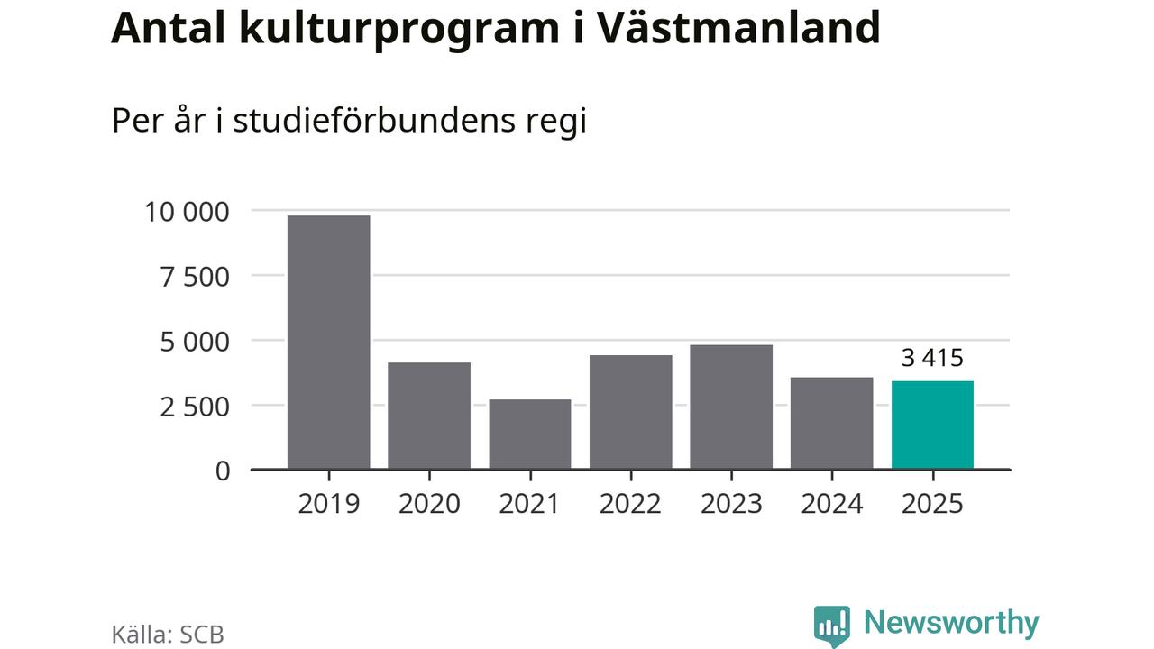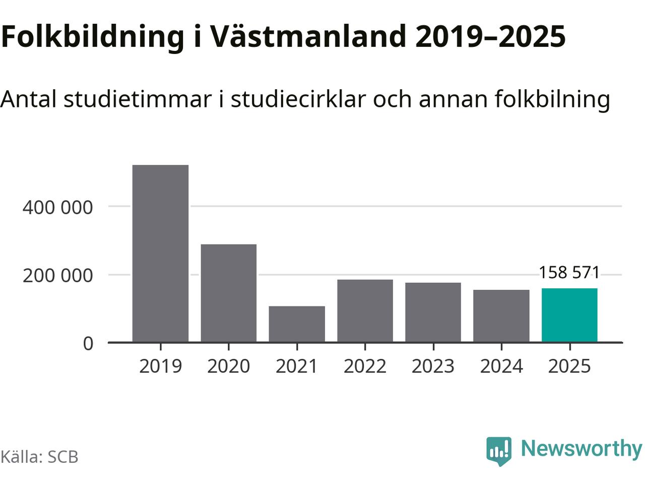 Men i Västmanland har faktiskt antalet studietimmar ökat med två procent under fjolåret. Däremot minskade antalet kulturarrangemang i studieförbundens regi i länet jämfört med året innan.