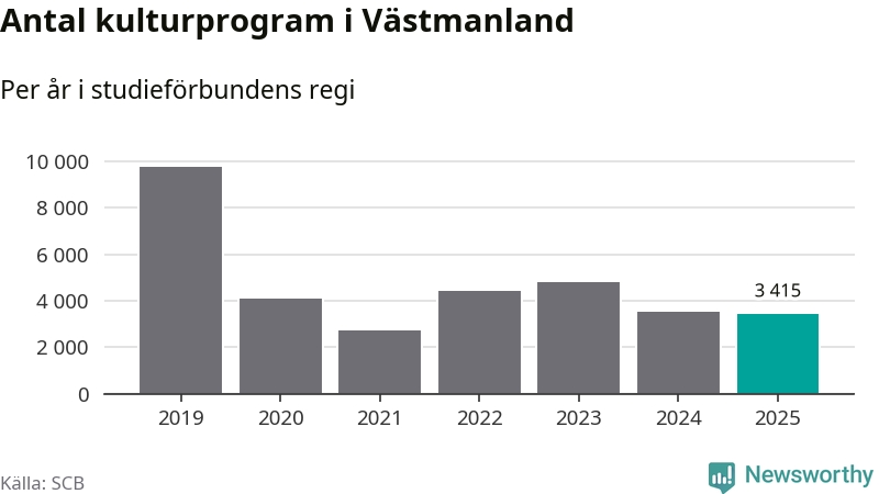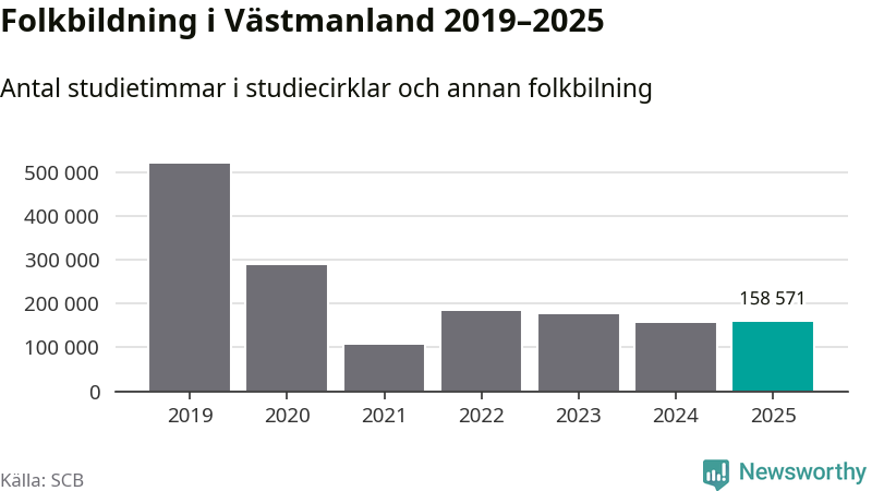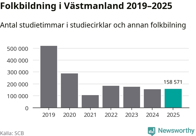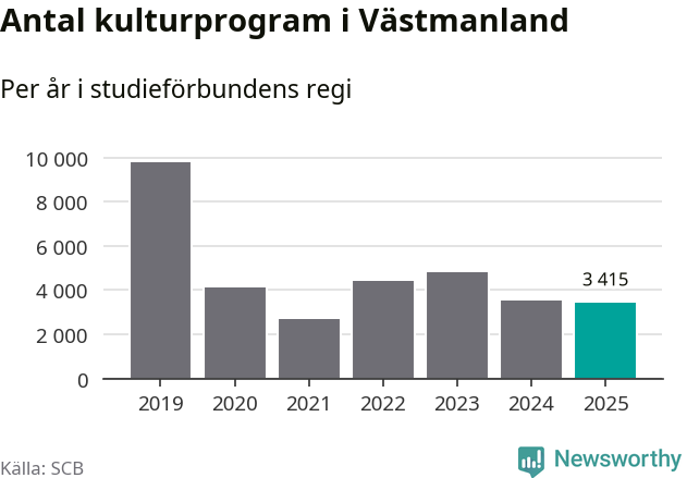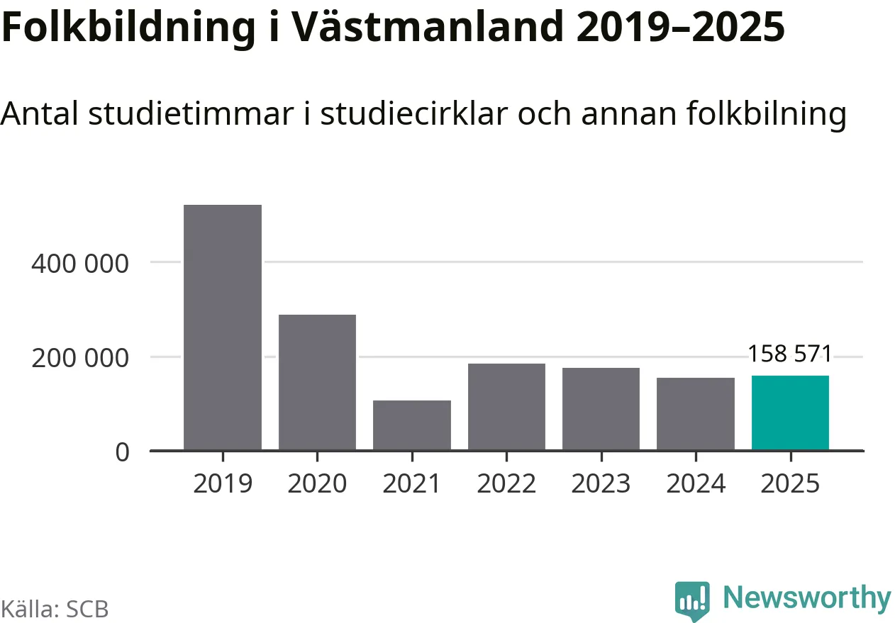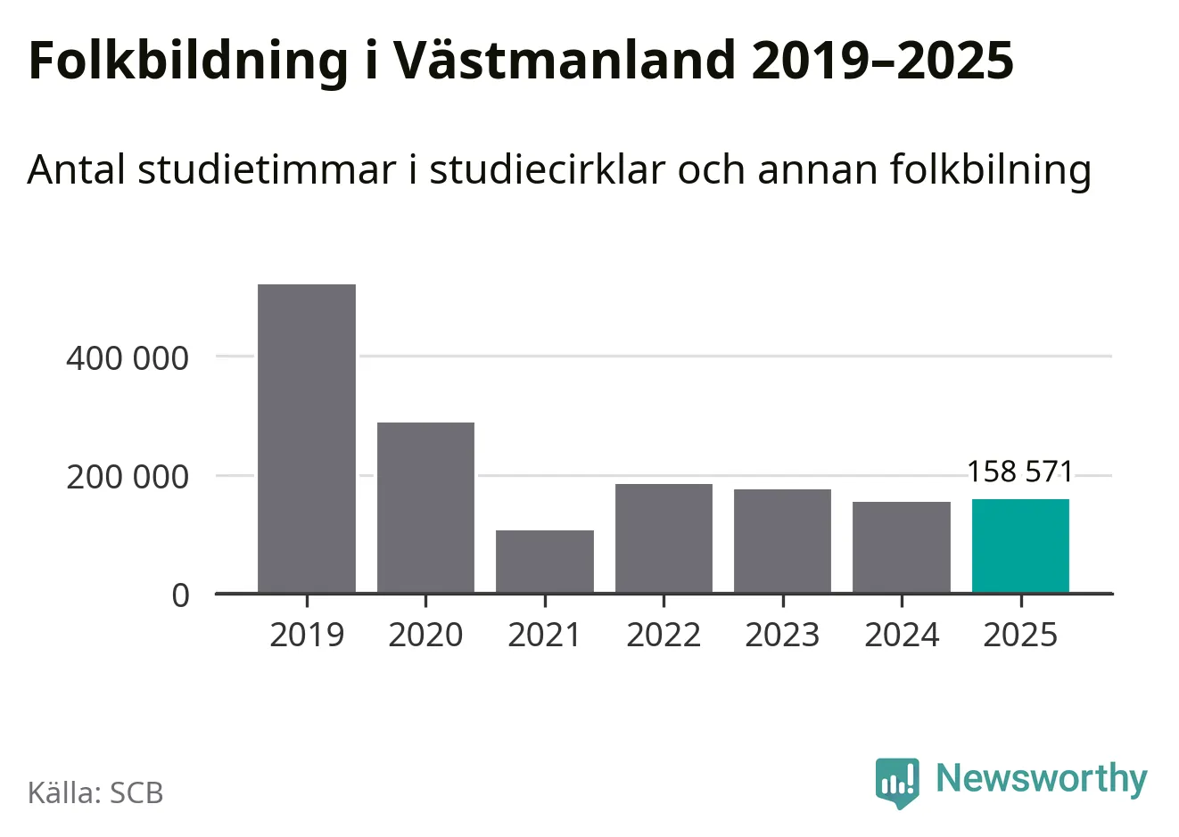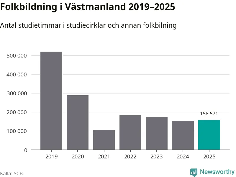 Men i Västmanland har faktiskt antalet studietimmar ökat med två procent under fjolåret. Däremot minskade antalet kulturarrangemang i studieförbundens regi i länet jämfört med året innan.