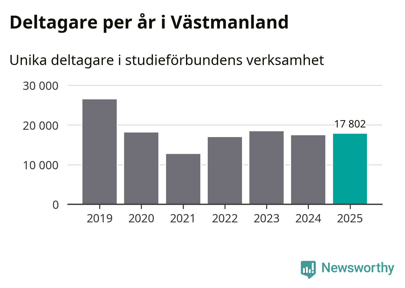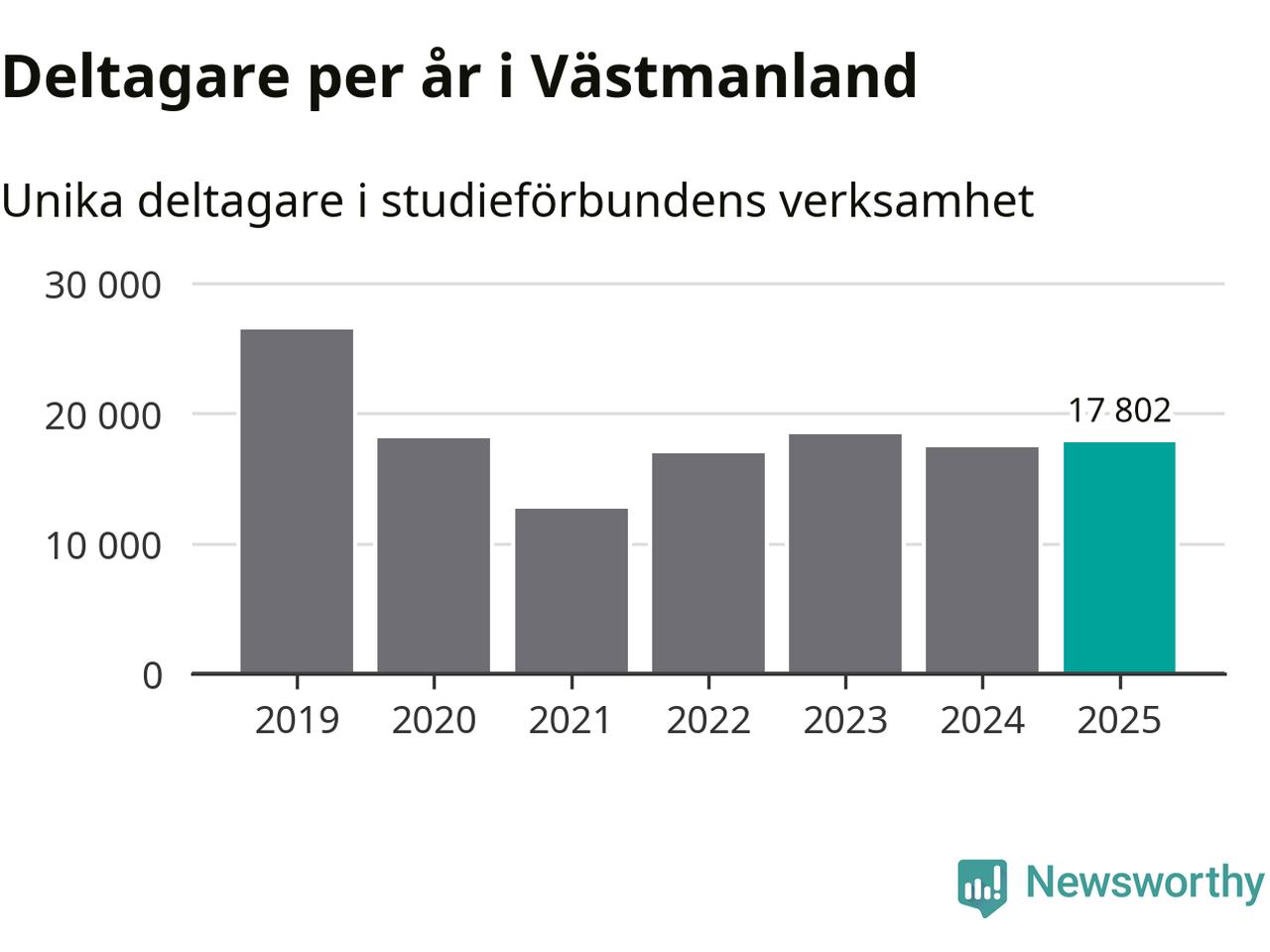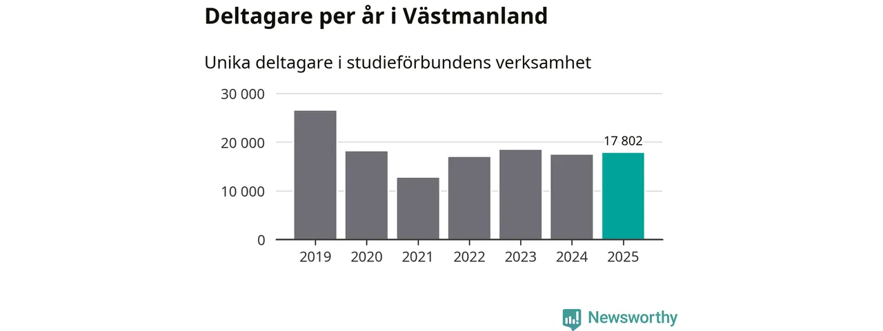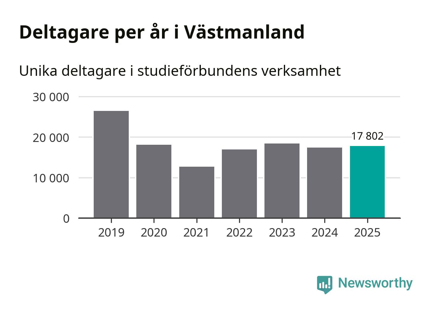 Även antalet unika deltagare ökade i Västmanland i fjol: från 17 371 till 17 802 personer. Det innebär att sex procent av befolkningen i länet deltog i studieförbundens verksamhet under 2025, vilket är ungefär som rikssnittet.