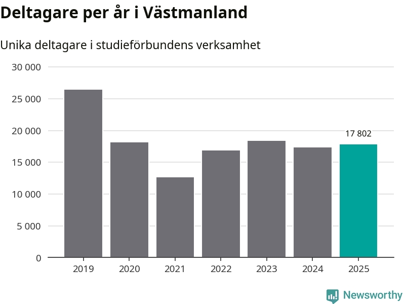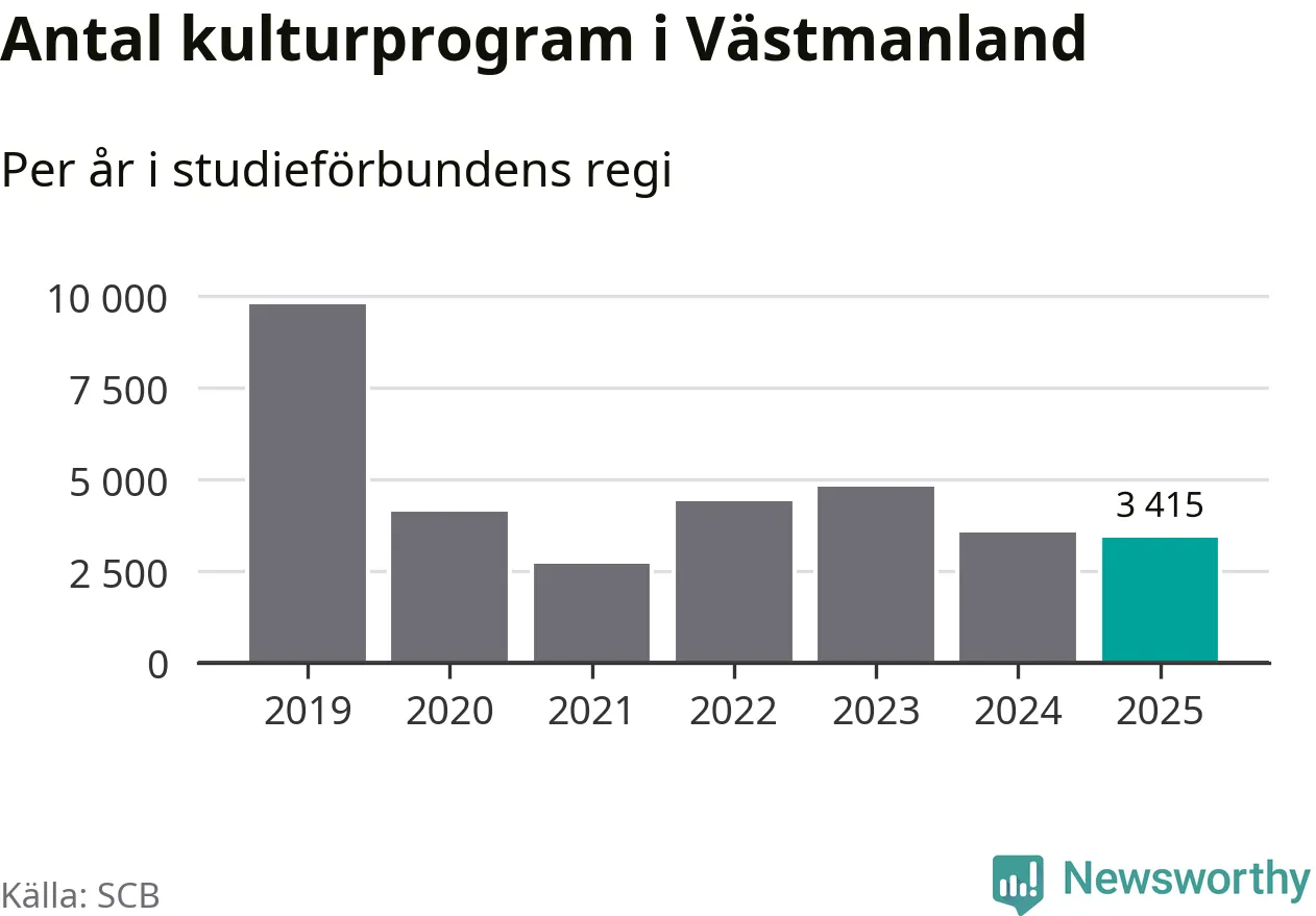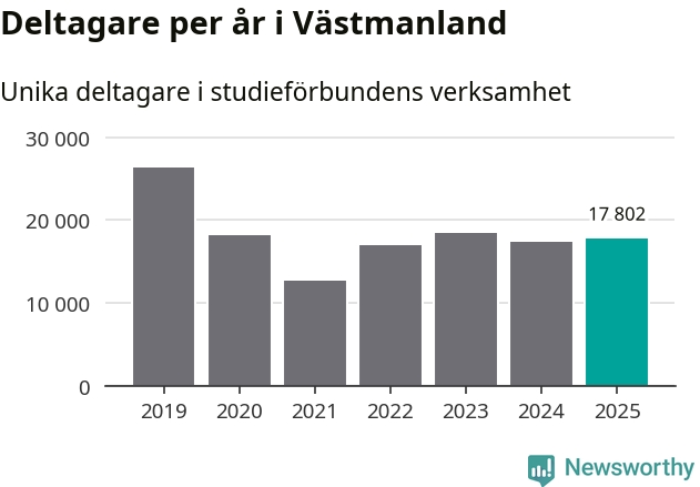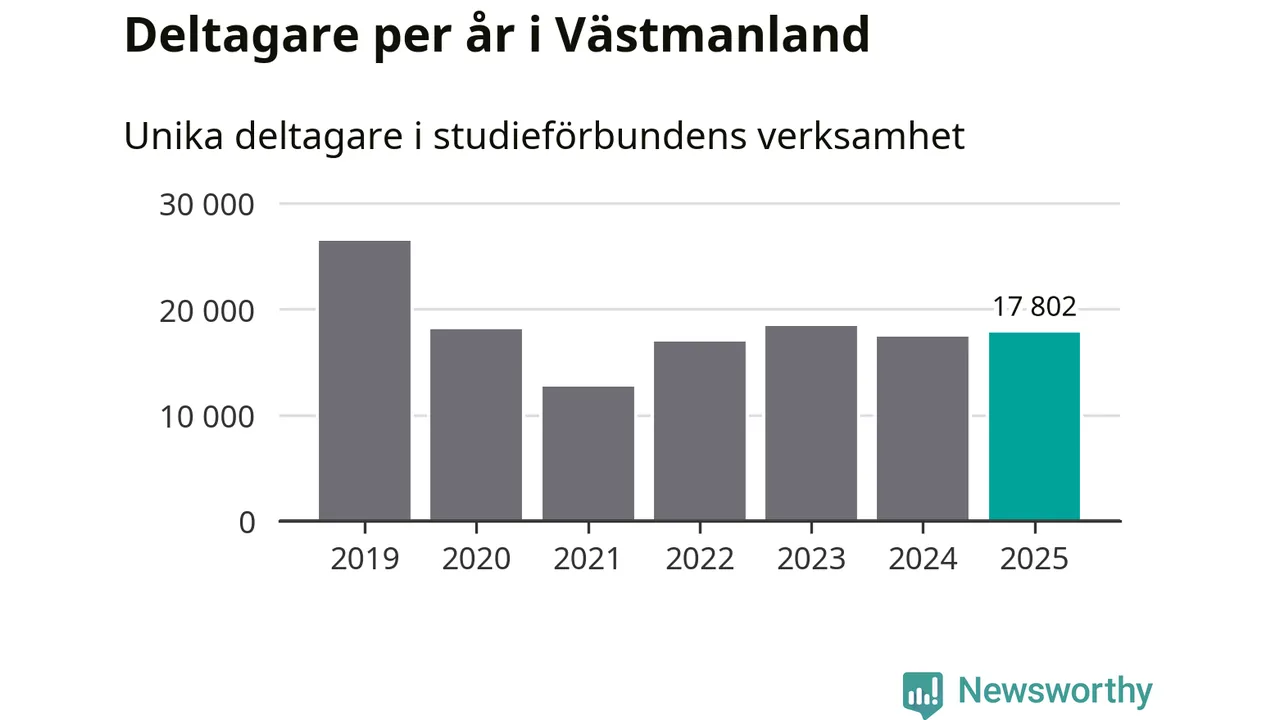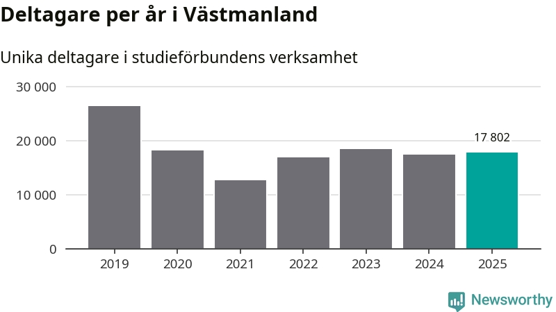 Även antalet unika deltagare ökade i Västmanland i fjol: från 17 371 till 17 802 personer. Det innebär att sex procent av befolkningen i länet deltog i studieförbundens verksamhet under 2025, vilket är ungefär som rikssnittet.