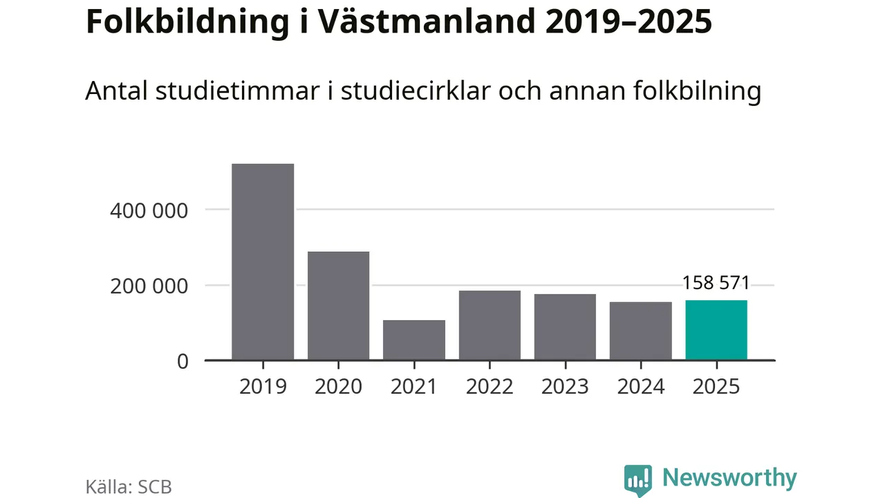 De svåra tiderna fortsätter för studieförbunden. Under 2024 och 2025 skars statsbidragen ner med totalt 350 miljoner kronor och under 2026 kapas de med ytterligare 150 miljoner kronor. Det har lett till uppsägning av personal, uppsagda lokaler och arbetsställen i allt färre kommuner. Och det märks i de färska siffrorna från SCB och Folkbildningsrådet: Under 2025 föll antalet studietimmar i studiecirklar och liknande verksamhet med sex procent jämfört med året innan. Det är tredje året i rad med färre studietimmar. Samtidigt minskade antalet kulturprogram som studieförbunden arrangerade med nio procent.