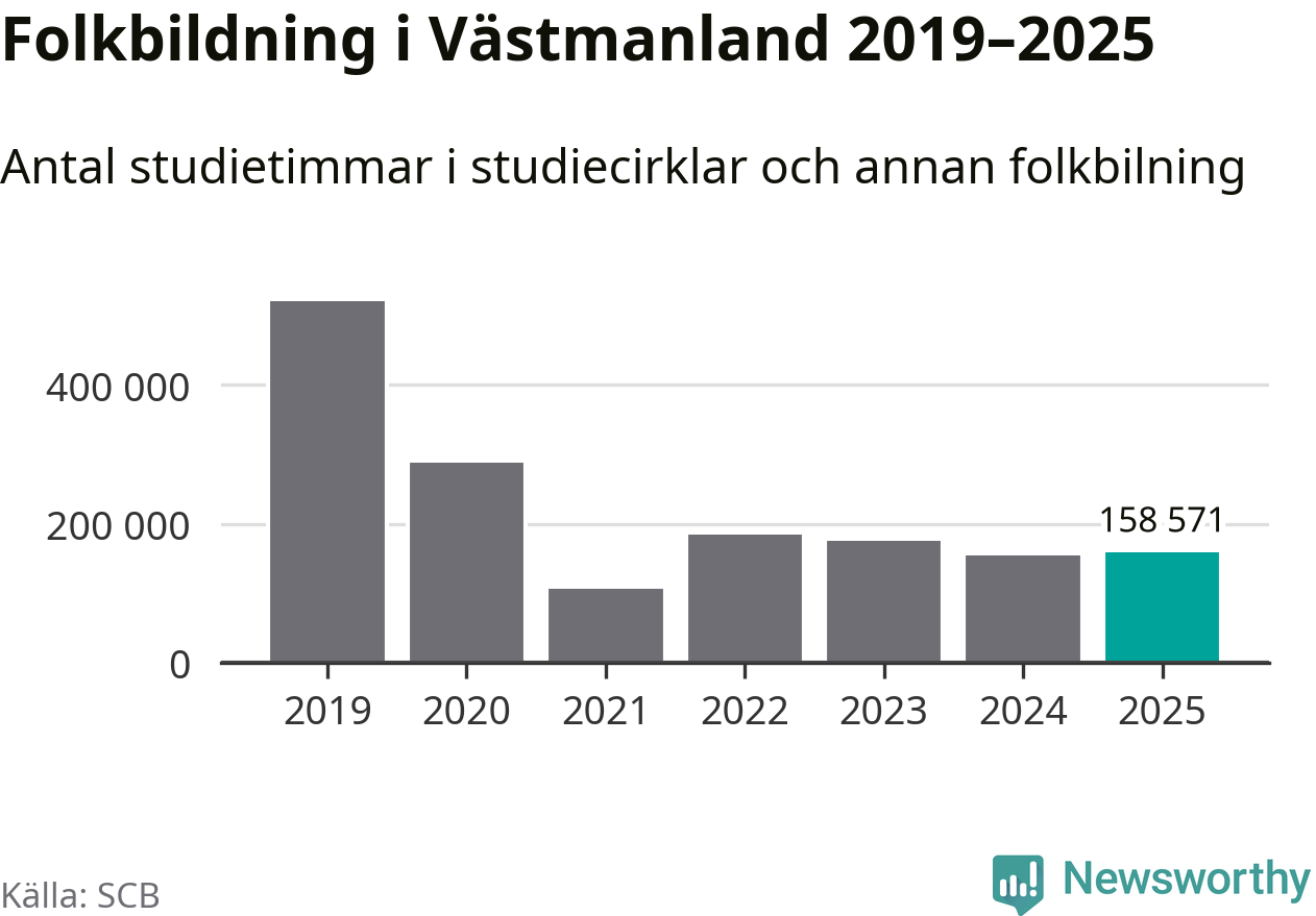 Alla studieförbund som 2025 sorterade under Folkbildningsrådet har haft någon form av verksamhet i Västmanland under de två senaste åren (antingen studiecirkel, annan folkbildning eller kulturprogram). Under 2025 ökade NBV, Medborgarskolan och ABF antalet studietimmar i länet jämfört med året innan, medan fyra andra förbund i länet noterade färre timmar.